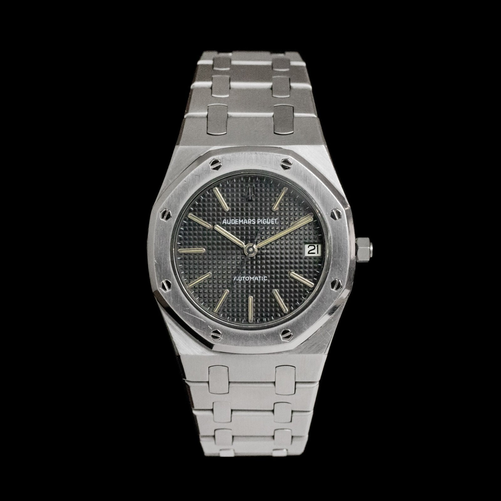 Audemars Piguet's reference 4100 is for the 5402 what Patek Philippe's reference 3800 is for the 3700: a more-wearable version of an iconic watch.During the '70s, alongside AP's production of the iconic Royal Oak, a reduced-sized version of this watch was launched. While it just measures 36 mm it doesn't compromise anything and maintains a very good wrist presence: it's exactly the same watch with the same robust and bold, yet elegant and sophisticated design in a 3 mm smaller version. This 4100 has the 'petite tapisserie' dial with an applied logo and 18k white-gold applied markers. The stainless-steel case and recognizable, octagonal bezel with white-gold screws. Furthermore, the watch still has its original, unmarked, hexagonal winding crown. Thanks to the thin calibre 2123 the thickness of the case is just 8 mm, which makes it paired with the integrated bracelet a very elegant watch that fits neatly on the wrist. This piece belongs to one of the last serials as it dates to 1980. Not long thereafter, the reference 4100 was succeeded by the 14790.