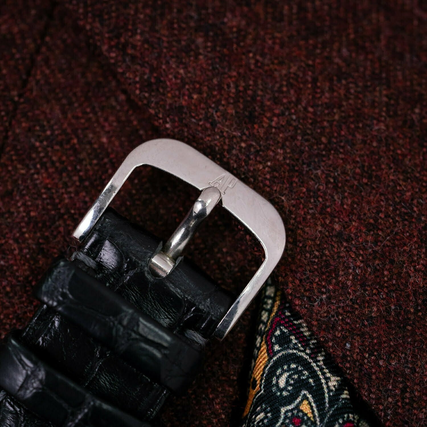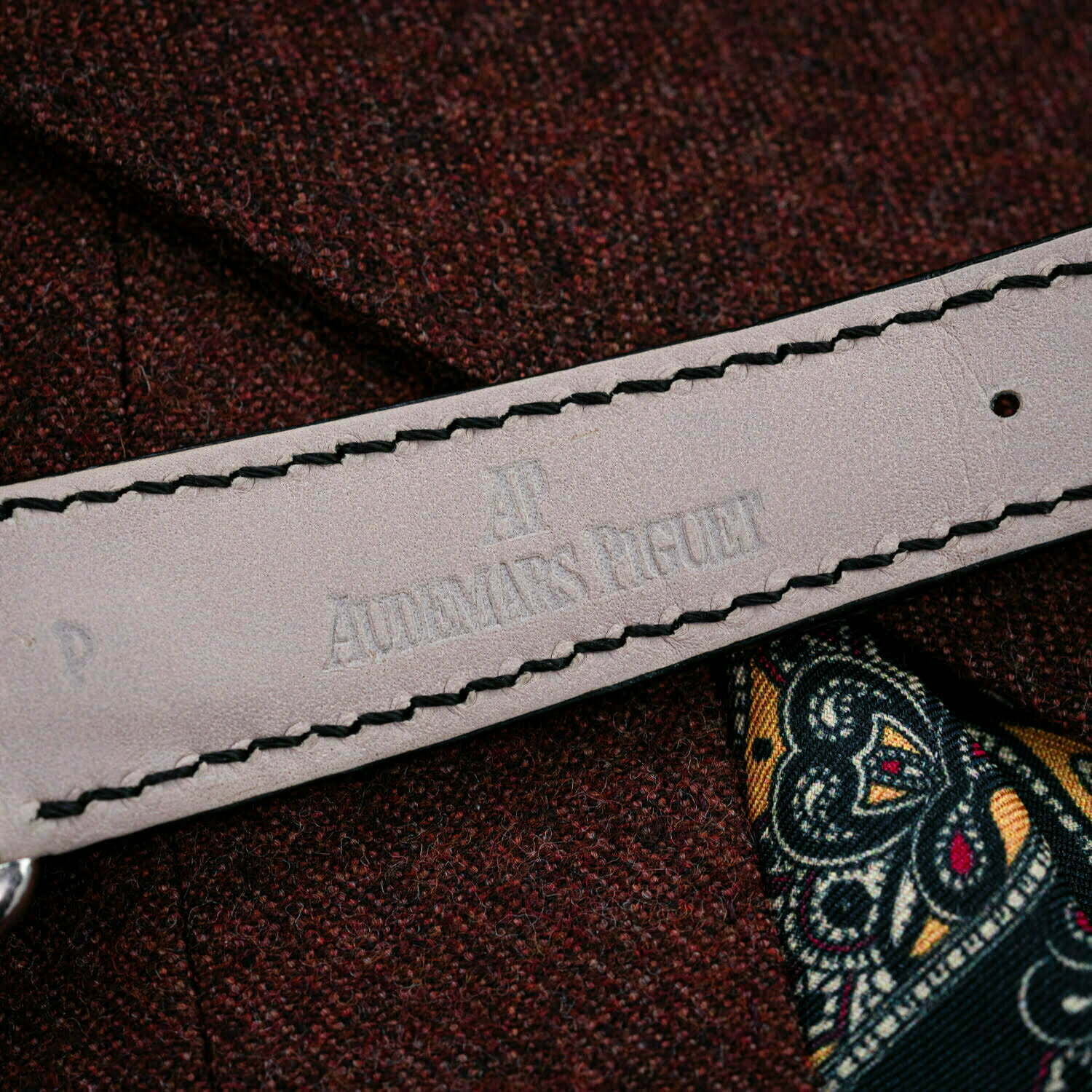 The 25718 was produced in very small numbers and this piece is number 14 from that production run. The watch is in excellent condition and comes on a black alligator leather Audemars Piguet strap with a platinum AP-signed ardillon buckle.