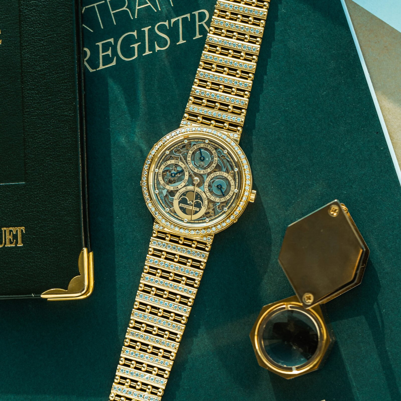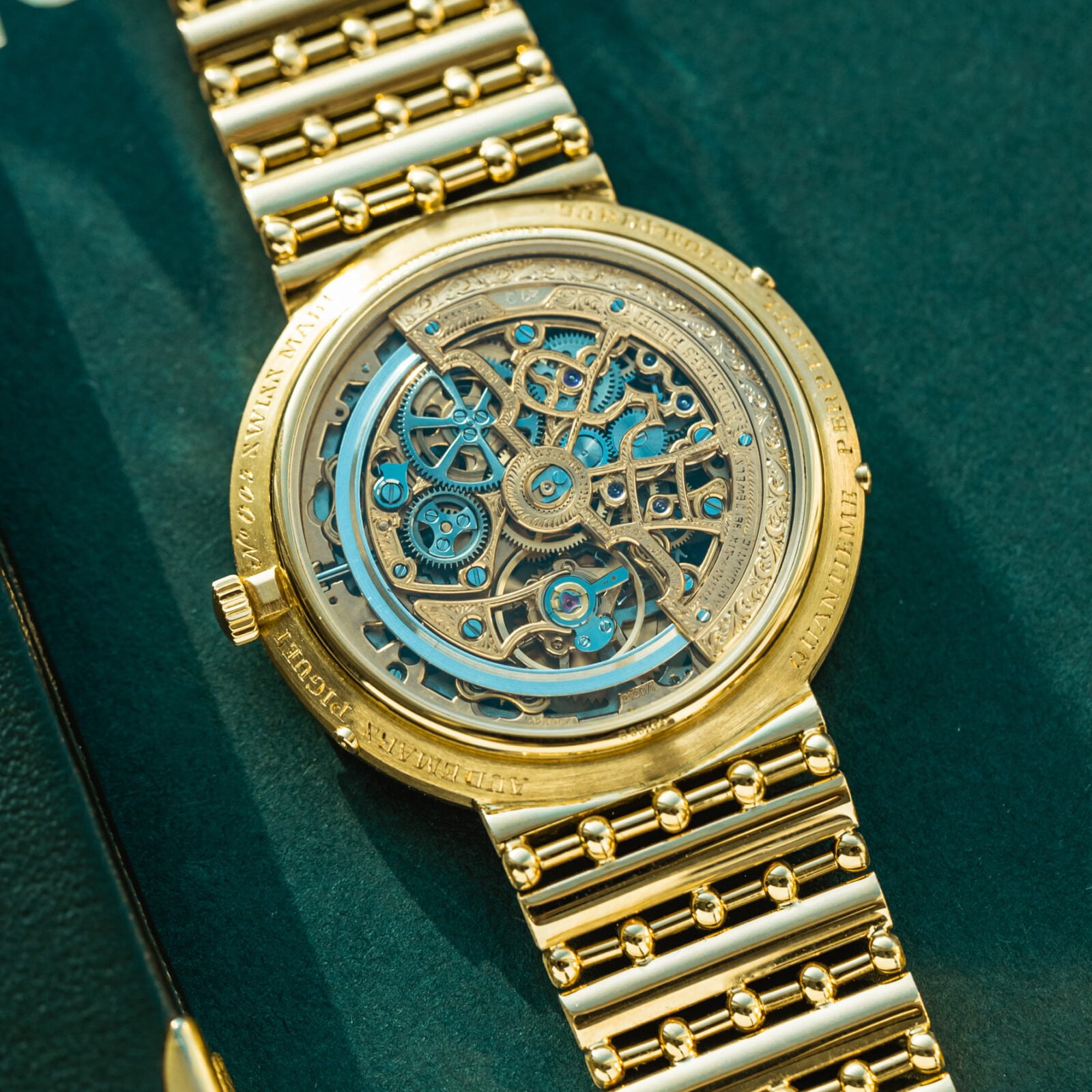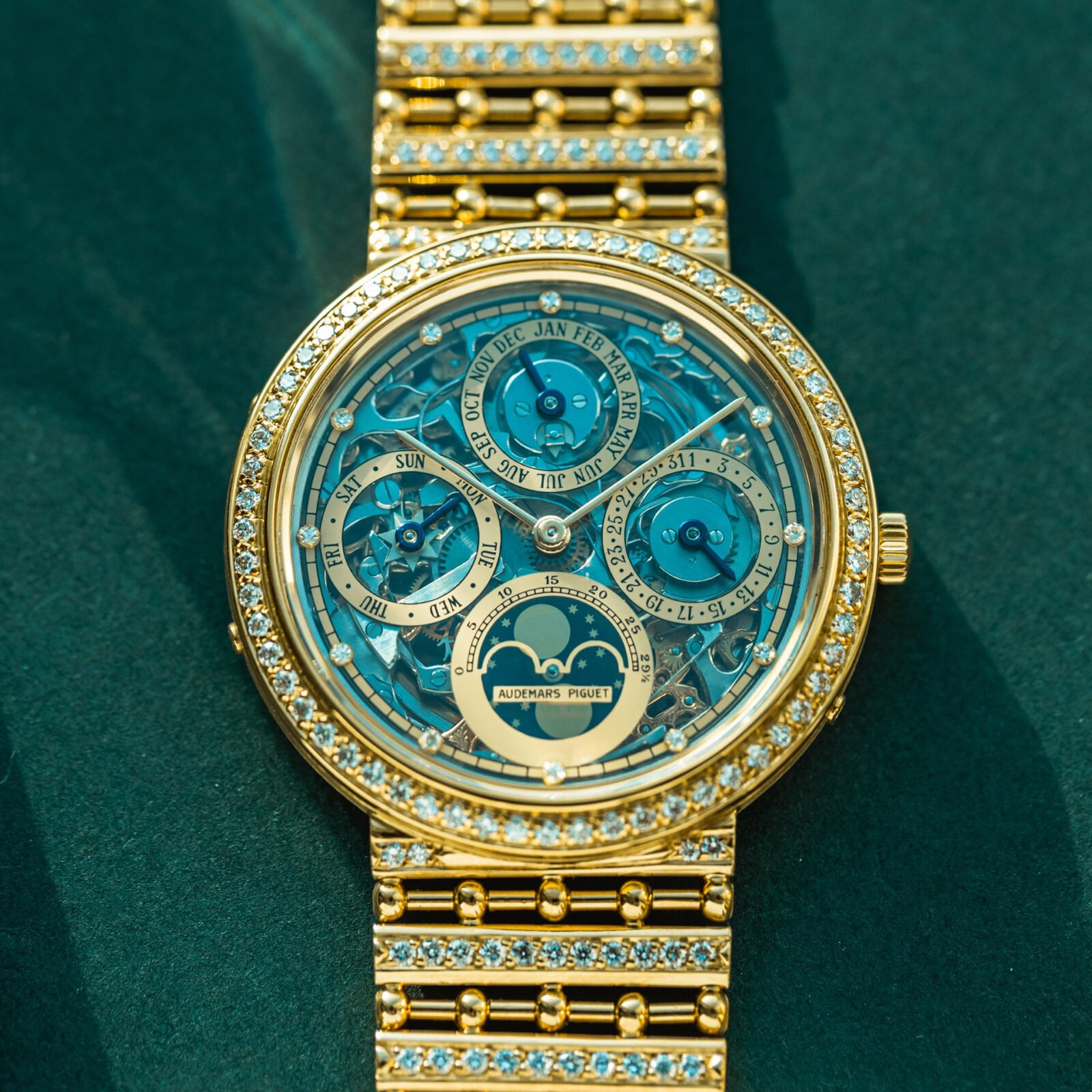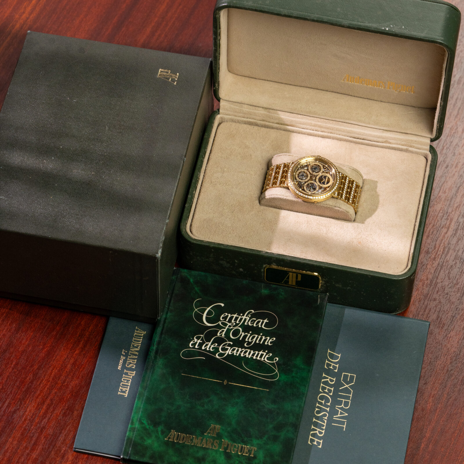 As the watch industry was buckling under the weight of the quartz crisis, Audemars Piguet introduced the world’s thinnest automatic movement with a perpetual calendar complication. The resulting line of precious metal dress watches was in production from 1978 until the 1990s, and contained timepieces in different metals and with various dial options, often produced in small numbers.