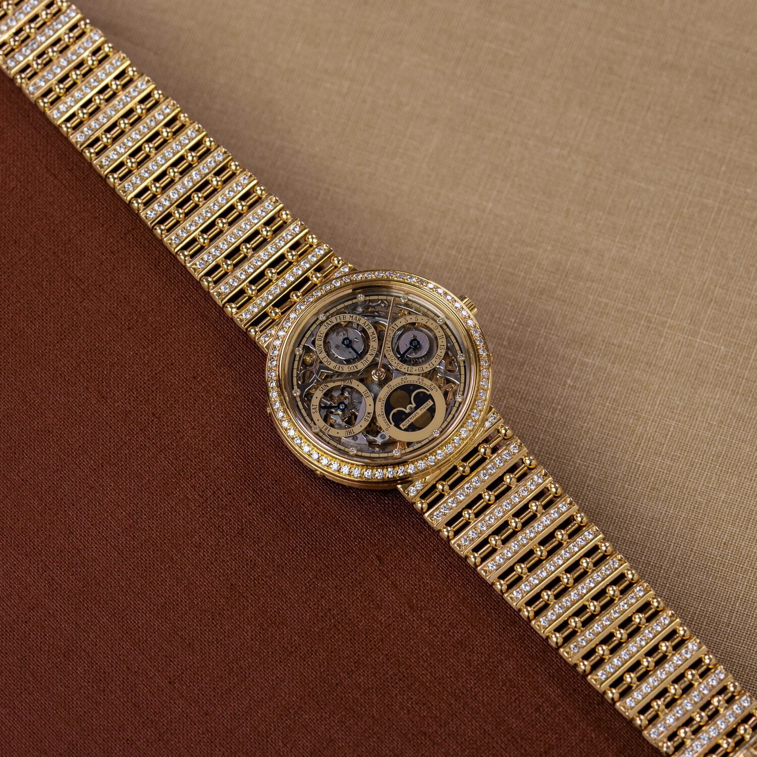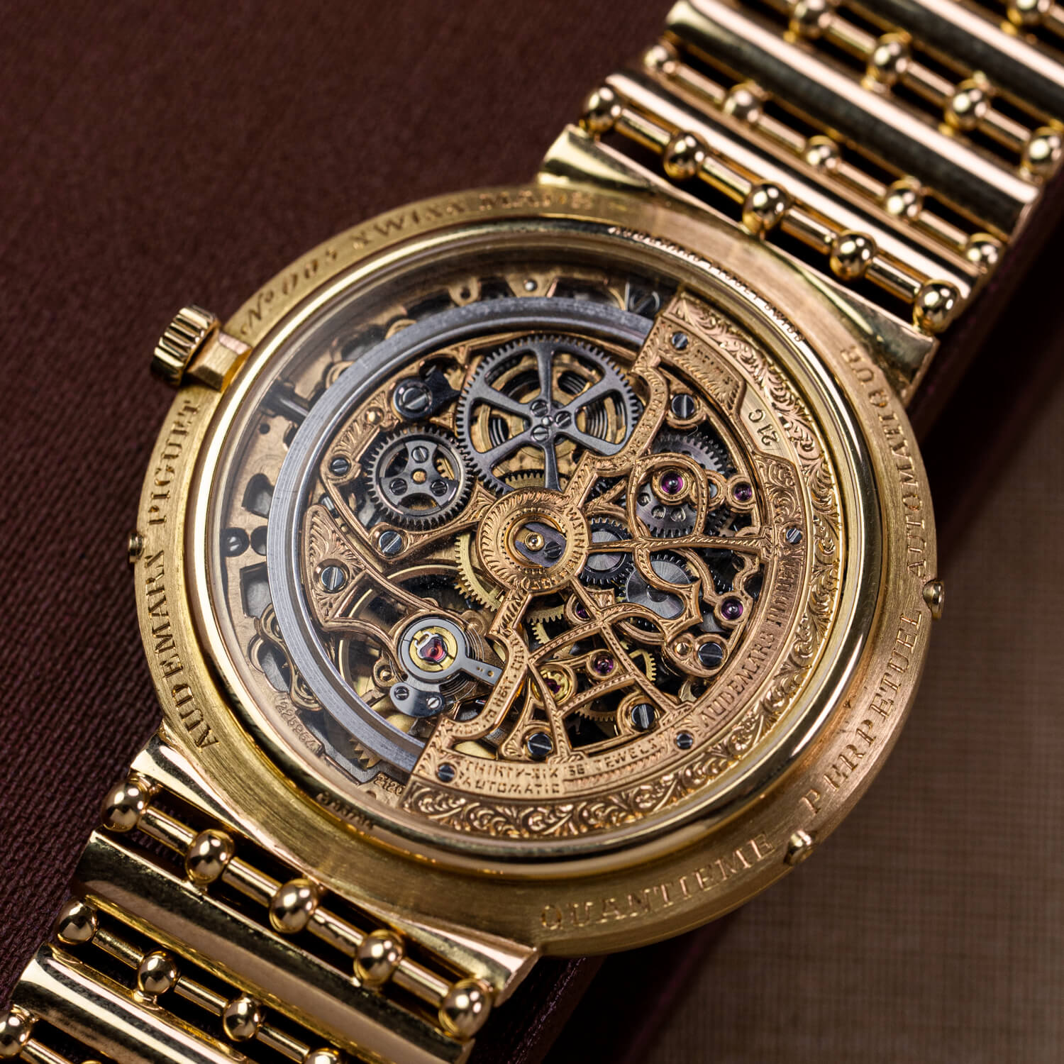 As the watch industry was buckling under the weight of the quartz crisis, Audemars Piguet introduced the world’s thinnest automatic movement with a perpetual calendar complication. The resulting line of precious metal dress watches was in production from 1978 until the 1990s, and contained timepieces in different metals and with various dial options, often produced in small numbers.