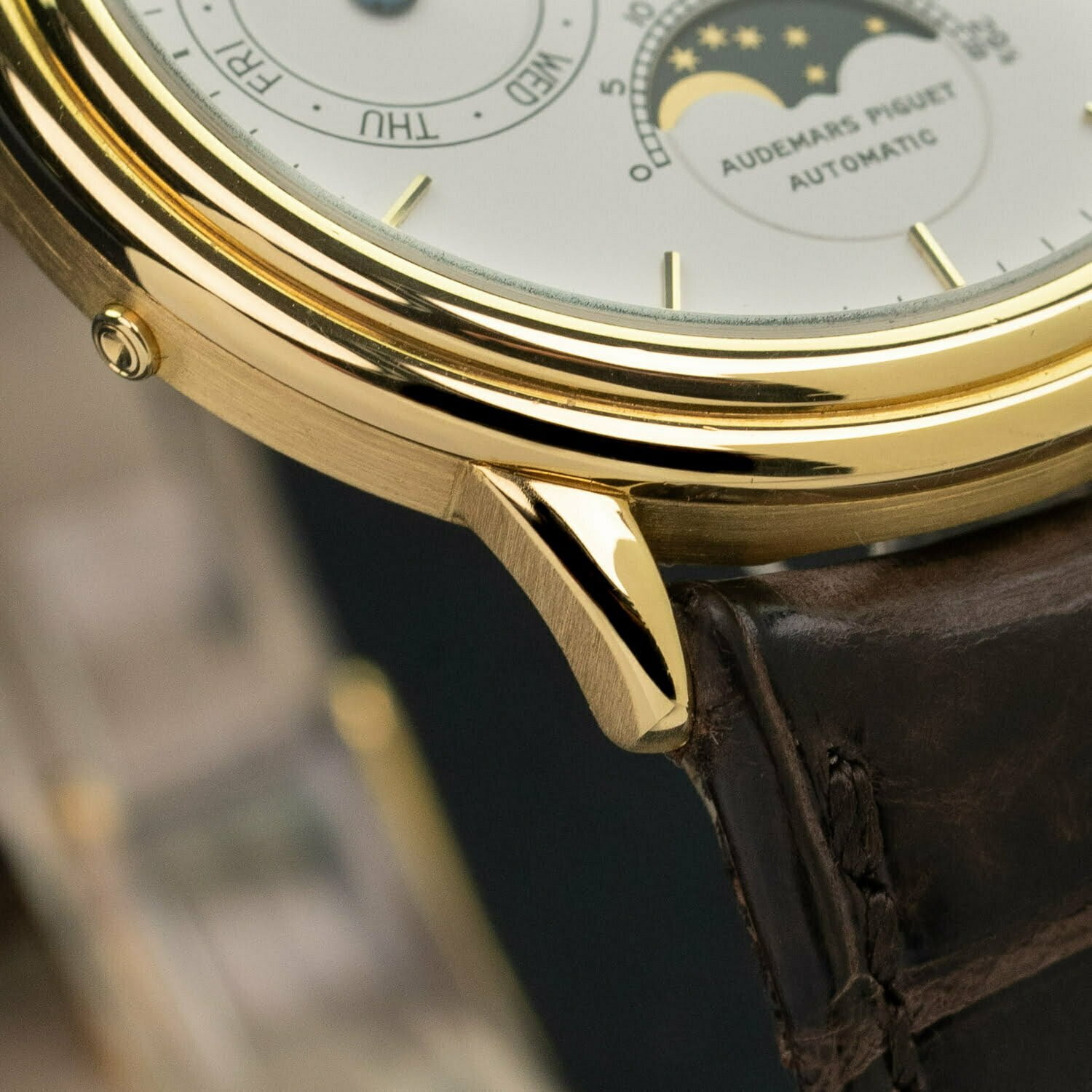 As the watch industry was buckling under the weight of the quartz crisis, Audemars Piguet introduced the world’s thinnest automatic movement with a perpetual calendar complication. The resulting line of precious metal dress watches was in production from 1978 until the early 1990s and contained watches in different precious metals and with various dial options, often produced in small numbers.