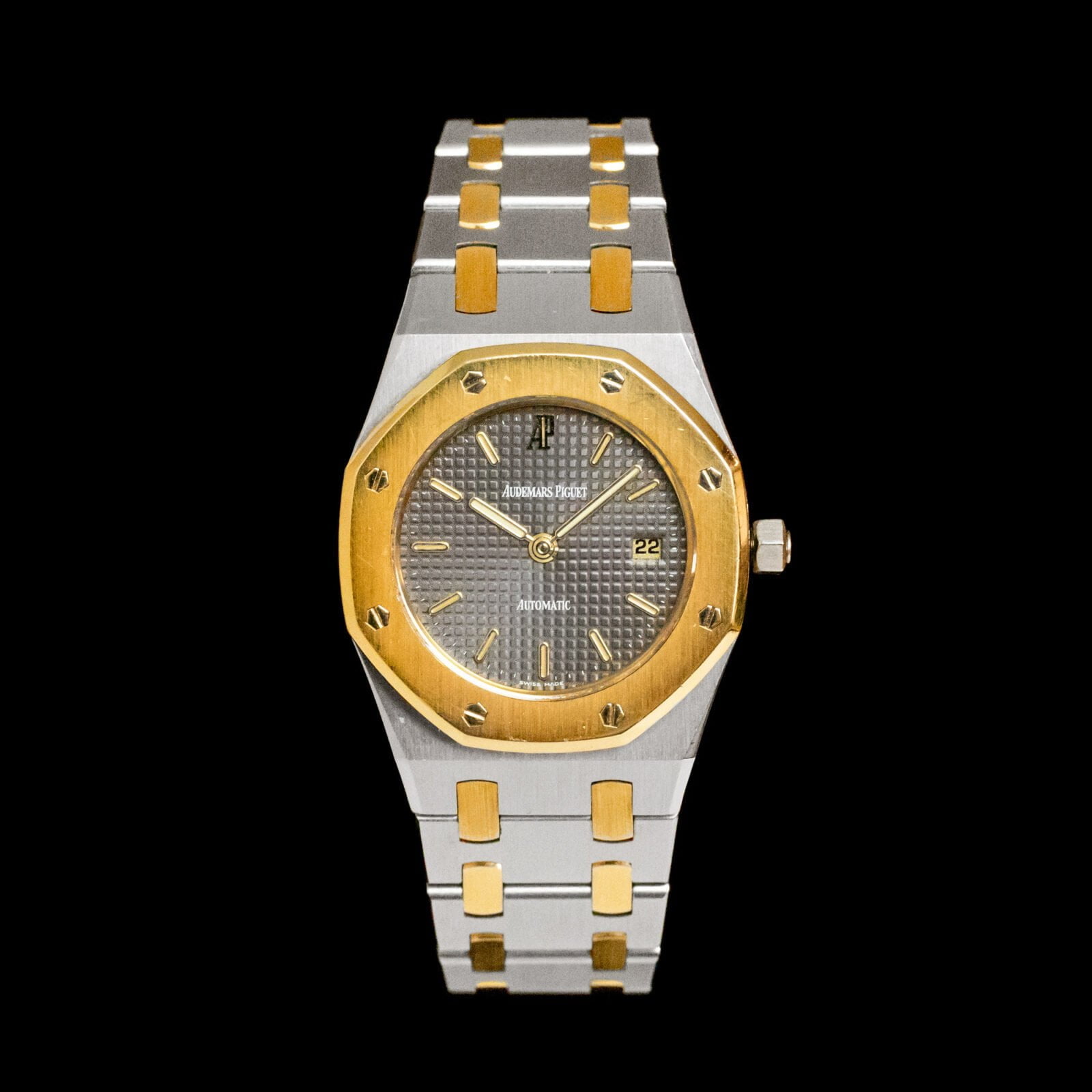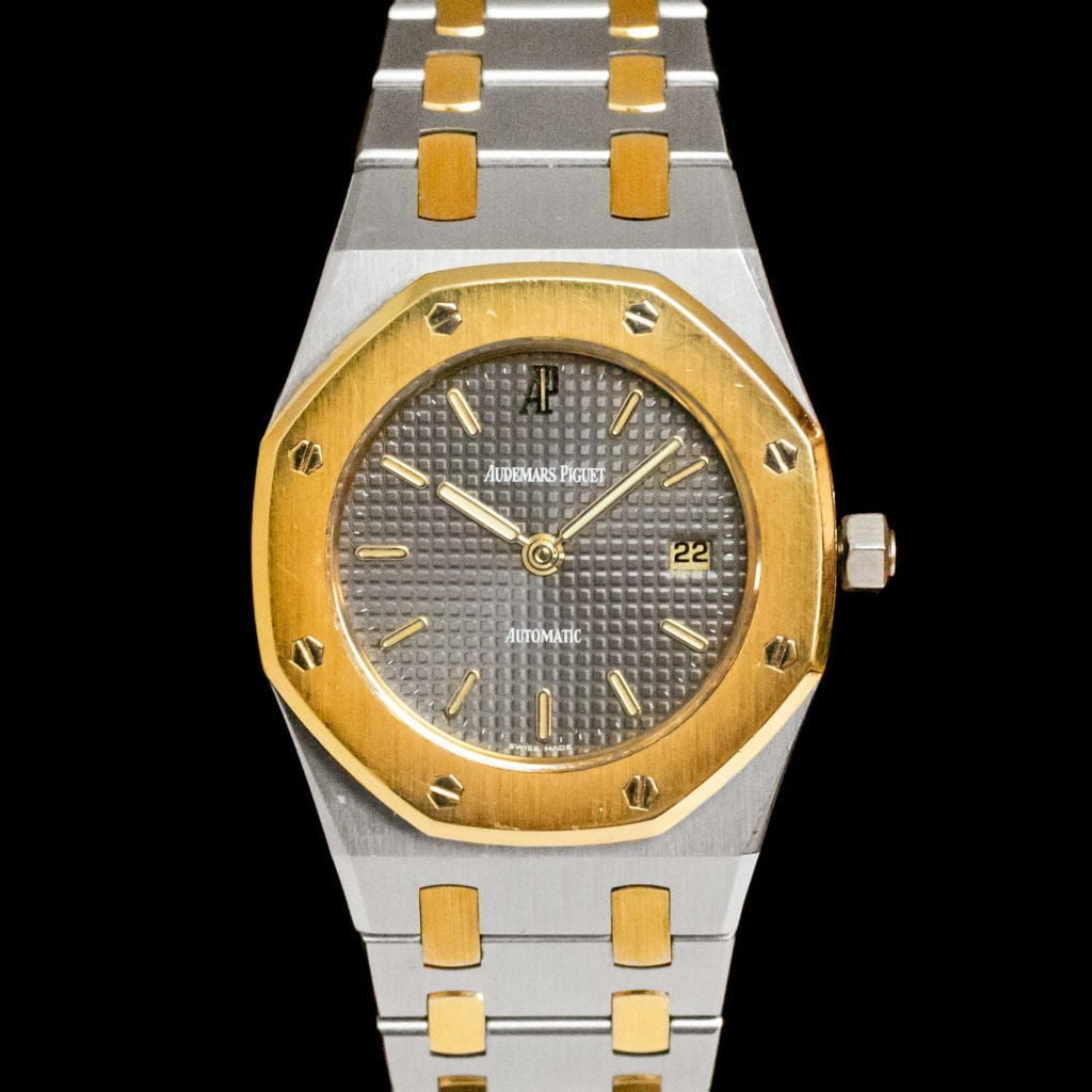We can not forget about the ladies. For all women out there that want something special, something that makes a statement and tells who you are, the Royal Oak is your way to go. We can only imagine how cool this timepiece would look on the wrist of a stylish woman who is successful in her area of expertise. This lady-sized Royal Oak has a stainless steel case and an 18k yellow-gold bezel. The case measures 33 mm and thanks to its integrated bicolor bracelet, it is a very elegant watch that fits neatly on the wrist. The watch has a typical Royal Oak dial: grey with the tapisserie pattern, a date aperture at the 3-hour position and a gold applied logo, hour markers and hands. The watch runs on the automatic caliber 2150 and comes with the inner and outer box and certificate of origin.