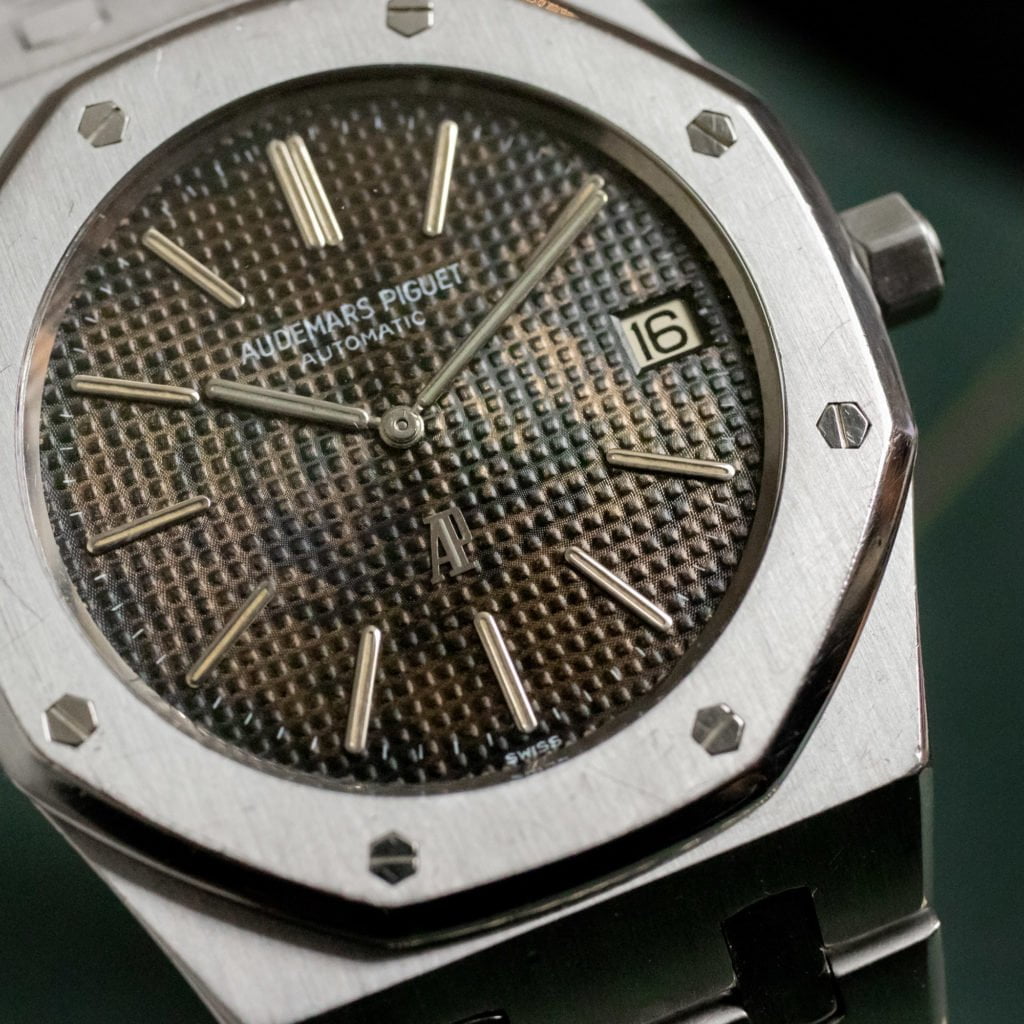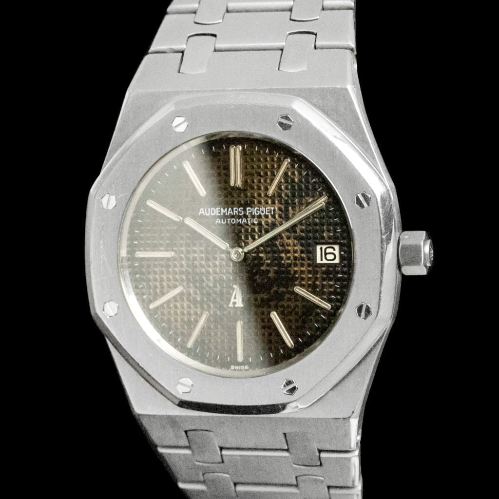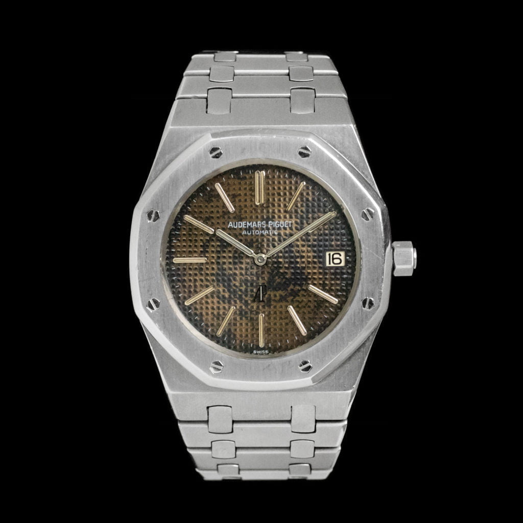 In the early 1970s, quartz watches - primarily, from Japanese brands as Seiko and Casio - conquered the Swiss watchmaking industry. This period is also referred to as the Quartz crisis. These new electronic watches were more accurate than mechanical watches and more important, they were cheaper. Therefore, they caused a decline of the traditional, mechanical watch industry. One of the brands that suffered from these developments was Audemars Piguet. Sales plummeted year after year.Finally, they turned to a man that we, at Amsterdam Vintage Watches, hold dear: Gerald Genta. What did he do? He designed a large, mechanical, steel sports watch with a futuristic design that was outrageously expensive. Exactly this watch, the Audemars Piguet Royal Oak, created a disruptive change and established the desirability for a new type of mechanical watches. We are always glad to add pieces to our collection that have such a rich history.The Royal Oak we can offer you is slightly more special as it is the reference 5402, which is the first reference and it even belongs to the first series. Namely, the A-series. A distinctive feature of the A-series is the placement of the AP-logo above the 6-hour position, which is referred to by collectors as 'AP Down Dial'. The series that came after, have the AP-logo placed below the 12-hour position. However, the one thing that truely makes this watch unique, is the discolouration of the tapisserie dial: at certain spots the black layer has faded away exposing the golden-brown base colour of the dial. This has only happened to the very first batches of A-series. According to the Extract of the Archives, the watch dates back to 1974. The watch has the original case size of 39 mm and runs on the famous calibre 2121, which was based on Jaeger-LeCoultre’s ultrathin calibre 920. Considering the fact that this is watch belongs to the first series, is completely original and has been worn by its previous owner, it still is in fair condition.