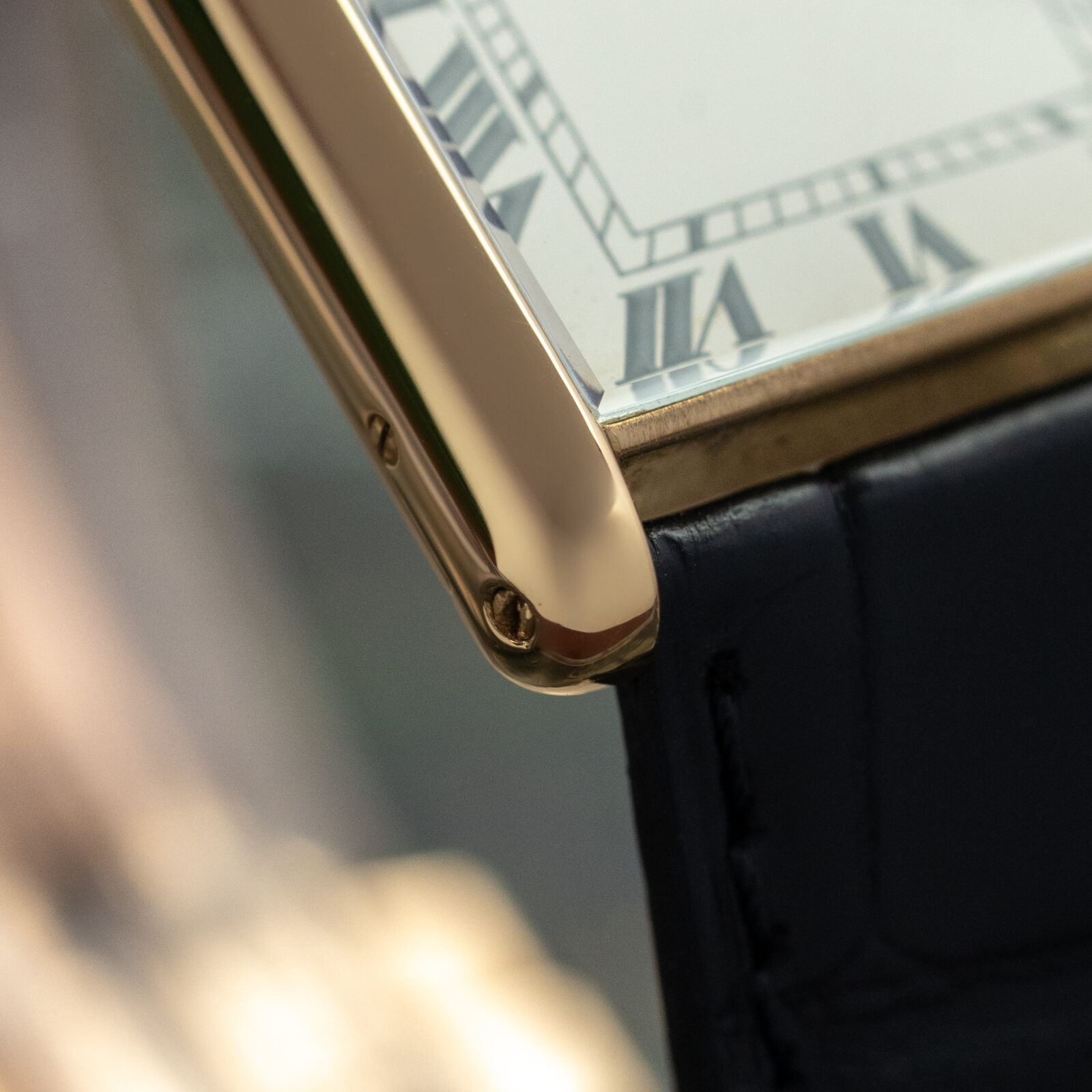 Most vintage Tanks were small, elegant, handwinders, while Tanks produced since the 1980s often appear with a quartz movement. For a few years in the 1970s, however, Cartier produced a large Tank with an automatic movement. This rare Jumbo model measures 28 mm x 35 mm, which is significantly larger than the classic Tank Louis. To accommodate the automatic movement, the case back has a round protrusion. This may look odd at first, but on the wrist it isn’t noticeable at all. The Jumbo just wears as a more contemporary version of the classic Tank.