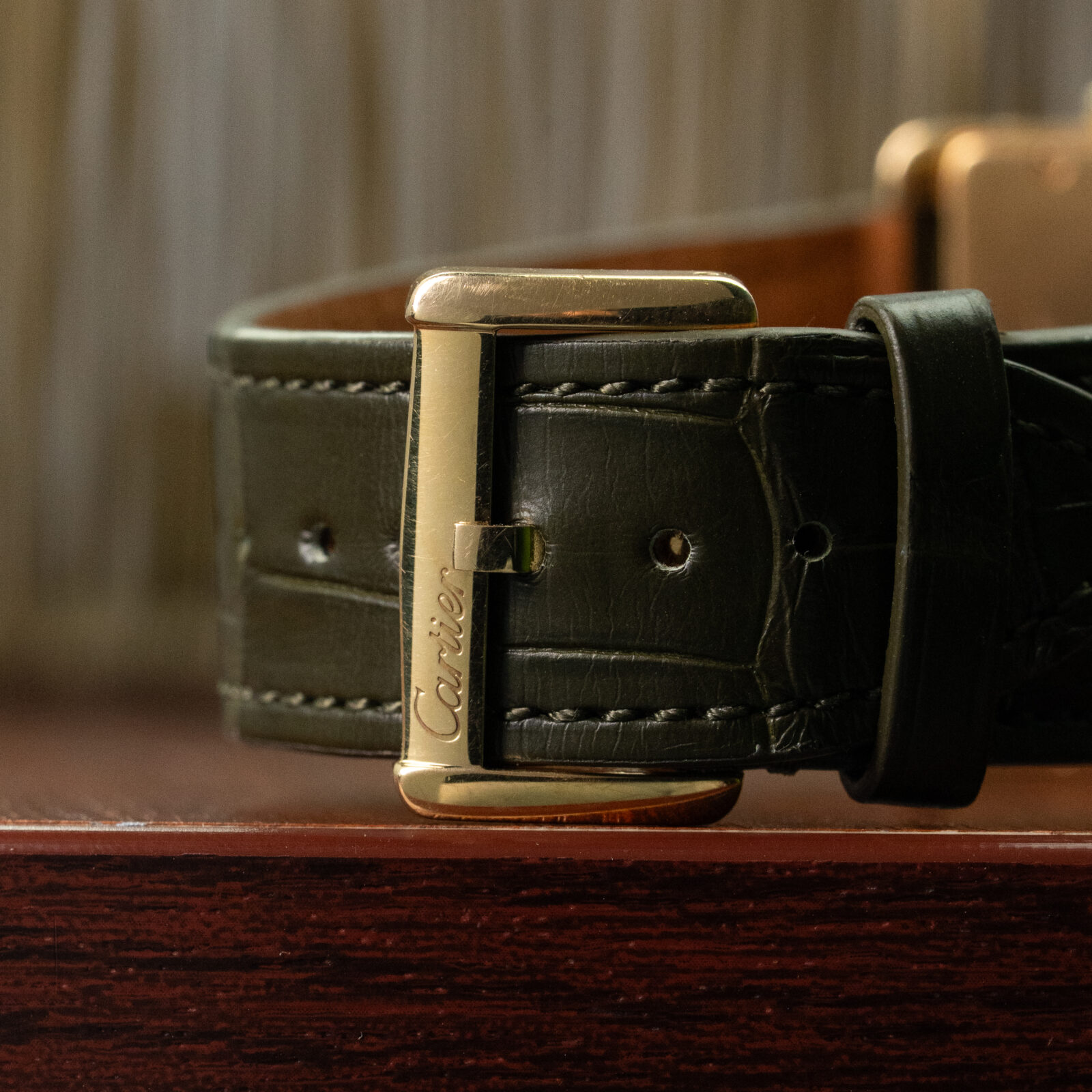The watch’s substantial gold architecture frames the enamel with quiet confidence, its sculpted lines echoing the fluidity of the artwork while maintaining the unmistakable presence of the Tank lineage. Paired with an elegant alligator strap, it strikes a balance between opulence and restraint, a work of art meant not only to be worn, but contemplated.