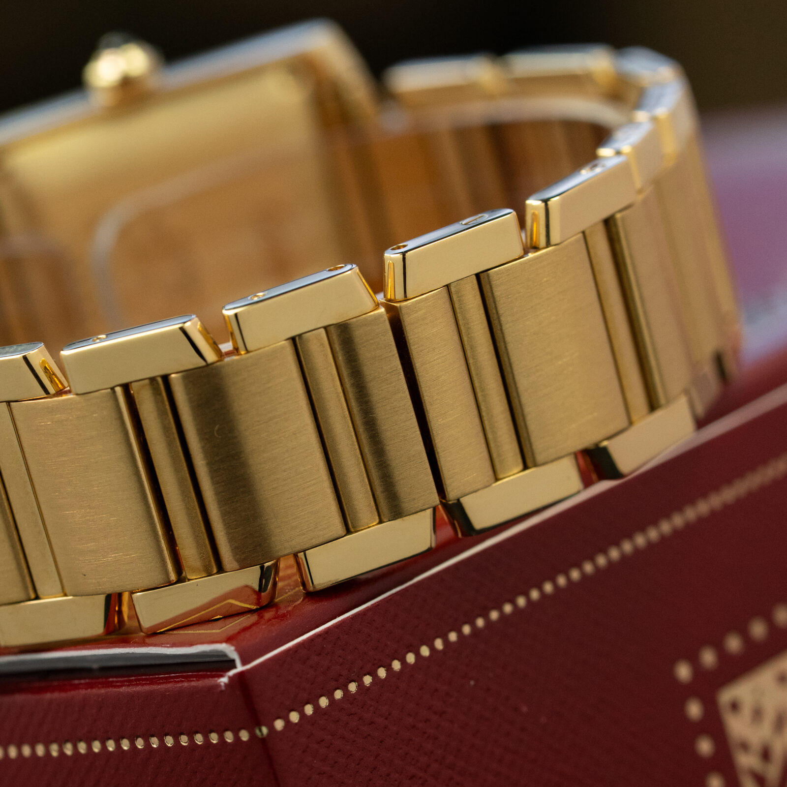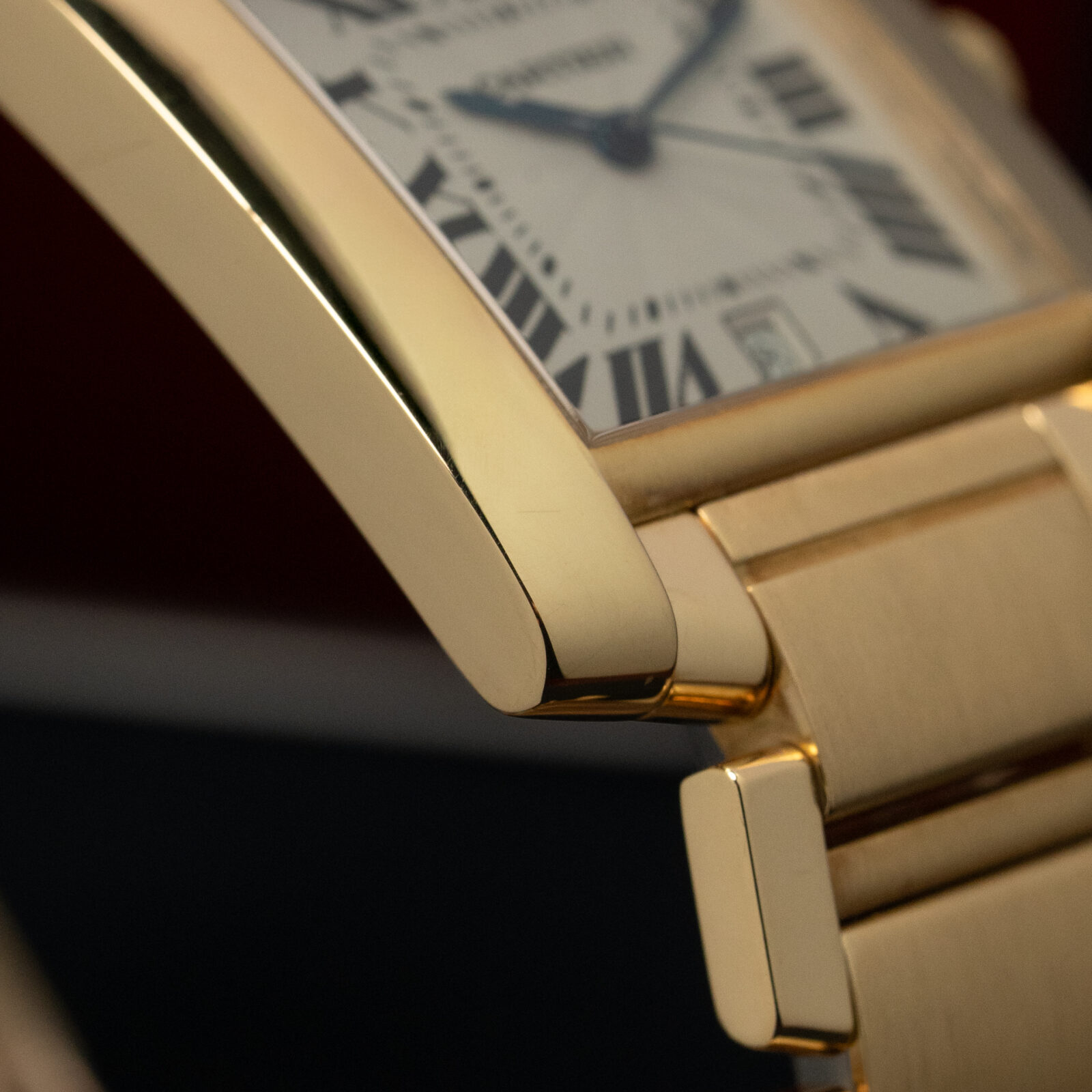 Introduced in the mid-1990s, the Tank Française marked a natural evolution of the original Tank concept; one that began with Cartier in 1917 and has since become one of the most enduring shapes in watchmaking. The Française softened the strict geometry of earlier Tanks, integrating the bracelet seamlessly into the case and introducing a more architectural, almost sculptural presence on the wrist.