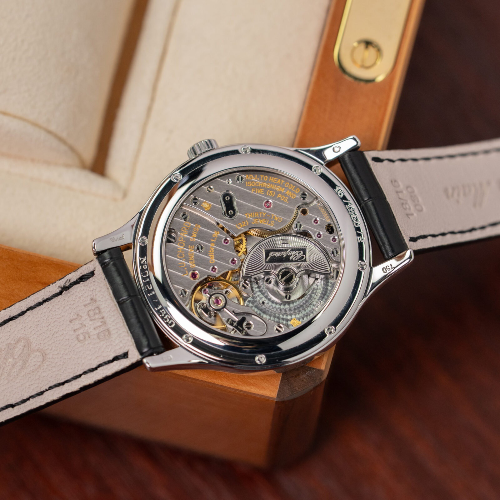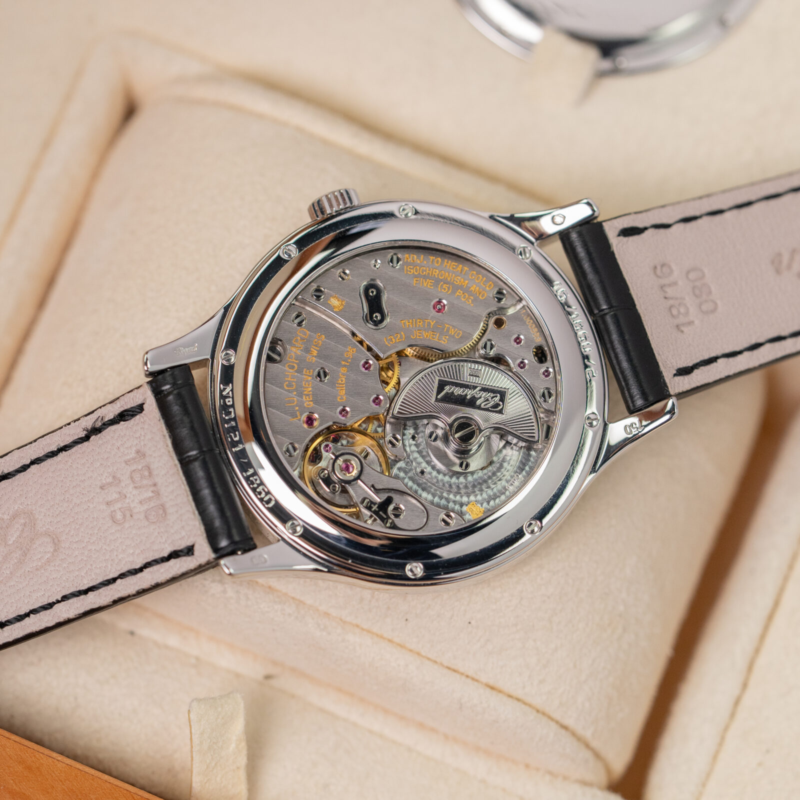 The watch comes complete with its box, hang tag, and both casebacks; an elegant reminder of the moment Chopard went from jewelry maker to full-fledged haute horlogerie manufacture. In hindsight, it wasn’t just a great first attempt. It was a masterpiece straight out of the gate.