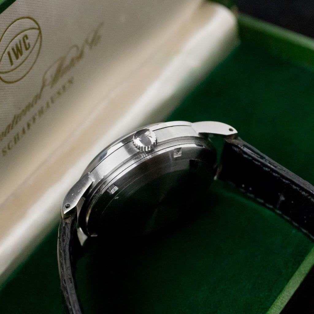 Historically significant model, the best from Schaffhausen!Any IWC collector is well aware of the rarity. The black dialed Ingenieurs don’t come around often, and when they do show up; 9 out of 10 times the dial is either re-finished or replaced with a service dial. This 666 still sports its original dial with glossy surface and white printing. This dial colours enhances the sporty side of this elegant tool watch. The watch has been fully overhauled by IWC's Heritage department in Switzerland, who unfortunately relumed the watch. Whilst clearly reflected in the price, a lot of effort went in to restore it with original tritium.The large case is in immaculate condition with the serial clearly visible. The watch comes with its original crown, hands and replaced IWC strap in black croc with matching buckle in steel. Added extra is the original box presented with this collectors item.