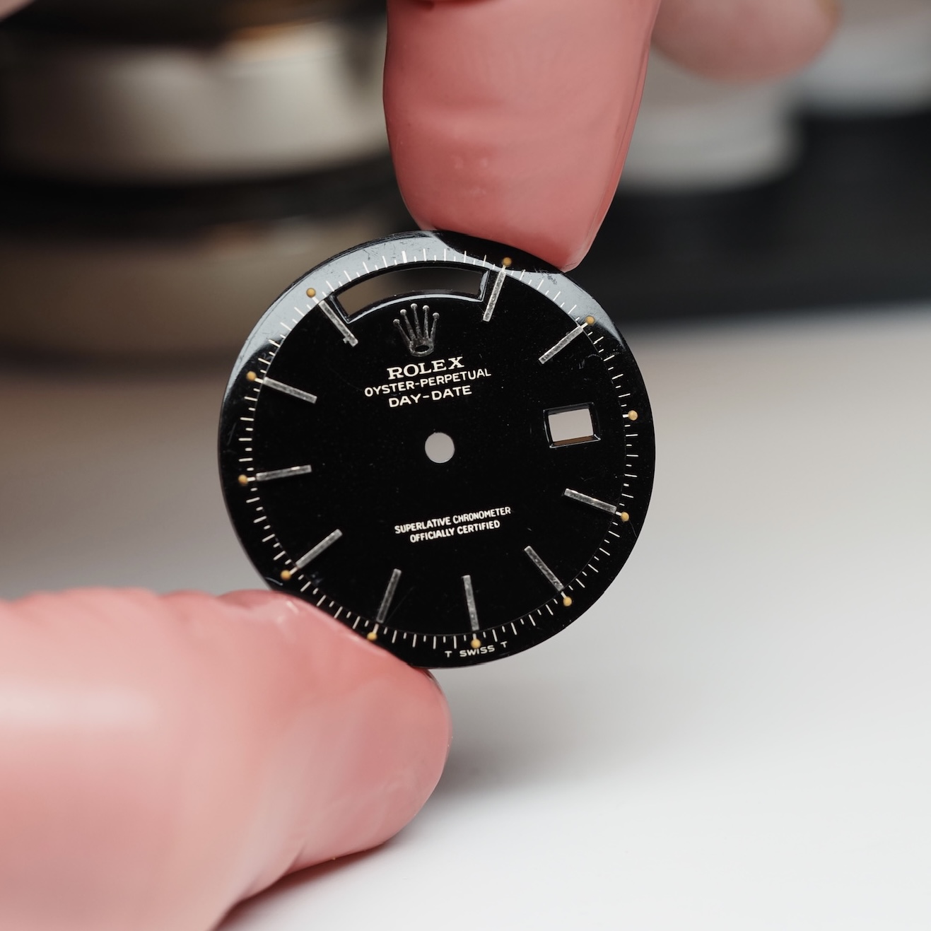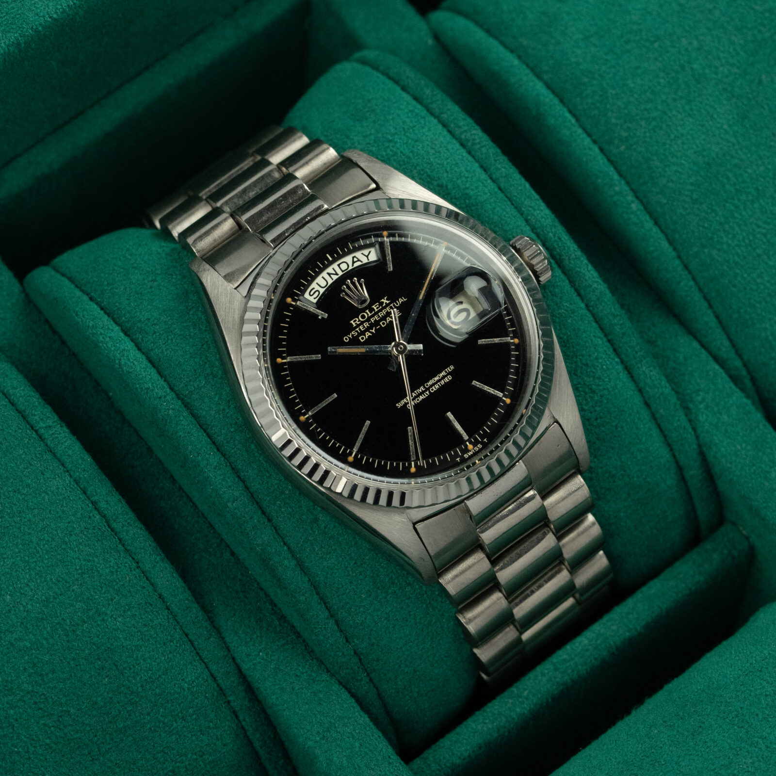 For “outstanding service to the world of sport” Omega was awarded the Olympic Cross of Merit in the year 1952.To celebrate this, Omega presented the Omega Seamaster XVI, four years later at the 16th Olympic games in Melbourne, Australia. The watch was never retailed in this configuration but given away to athletes, celebrities and executives at the games. The story tells that Omega only created about 100 pieces of this very special Seamaster execution due to the fact that they haven’t had any rights to use the Olympic Cross of Merit on their dial.So this specific piece dates back to the year 1956 and carries reference 2850SC. The watch is made out of 18k pink gold, has a case size of 34 millimeter and runs on the automatic caliber 471. The watch’s case features an hexagonal crown and beautifully shaped sloped lugs.Of course all the attentions is pointed at the distinguishing and mesmerizing Chinese lacquered dial including the lacquer and email Olympic Cross of Merit above the six o’clock-position. The dial lay-out is perfected with a beautiful ‘Dauphine’ handset an the 18k pink gold ‘coffin’ hour-markers.The watch comes with its original papers and original corduroy inlayed, leather box that also features the applied Olympic Cross of Merit on top.