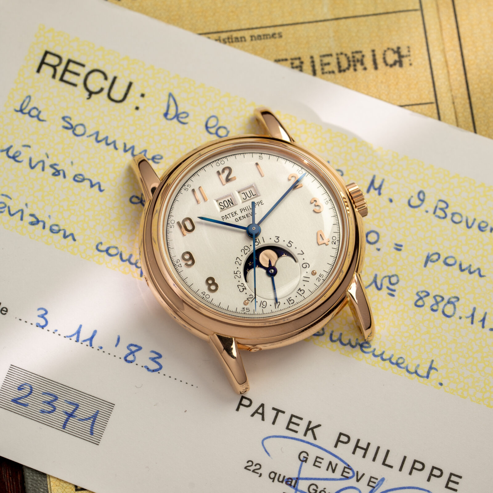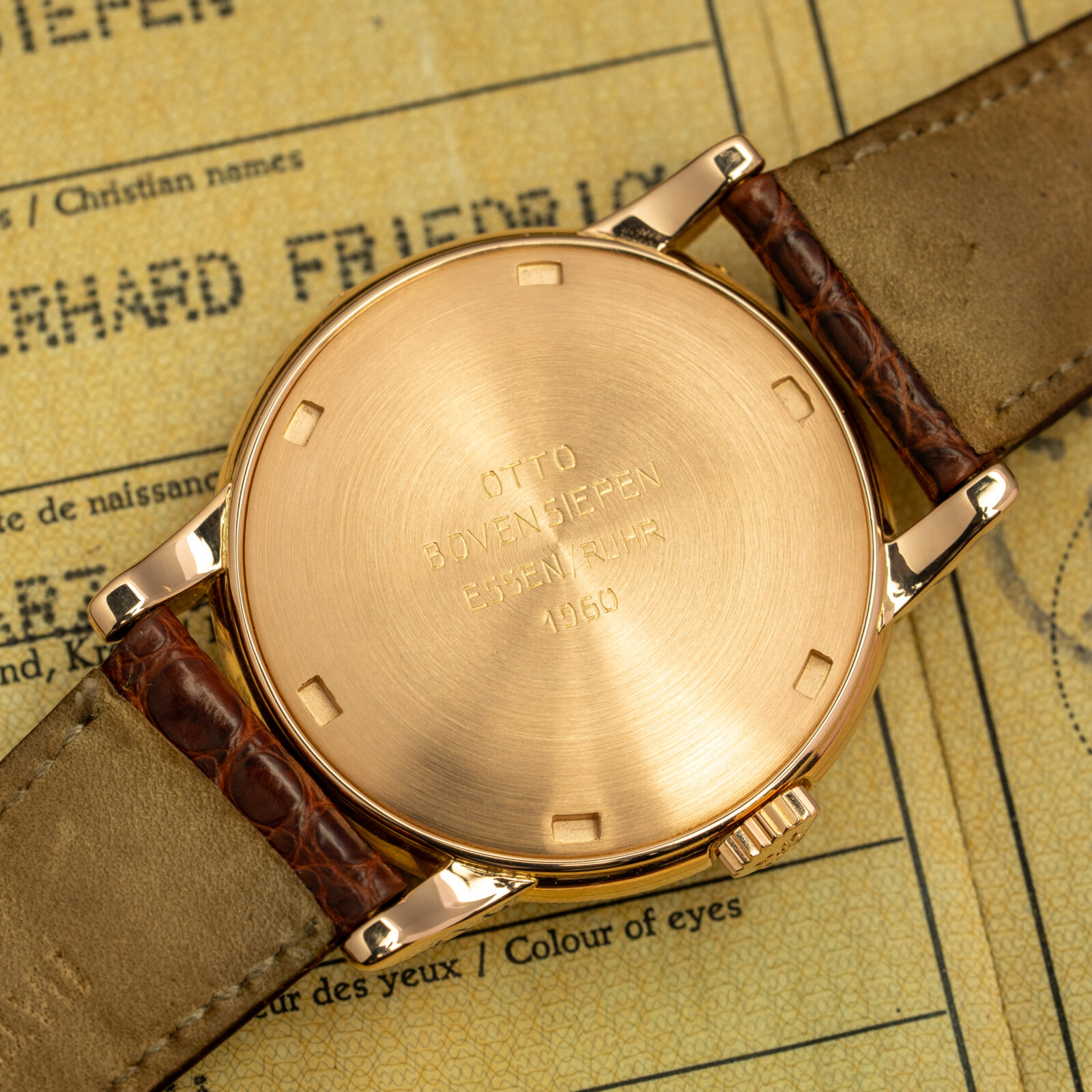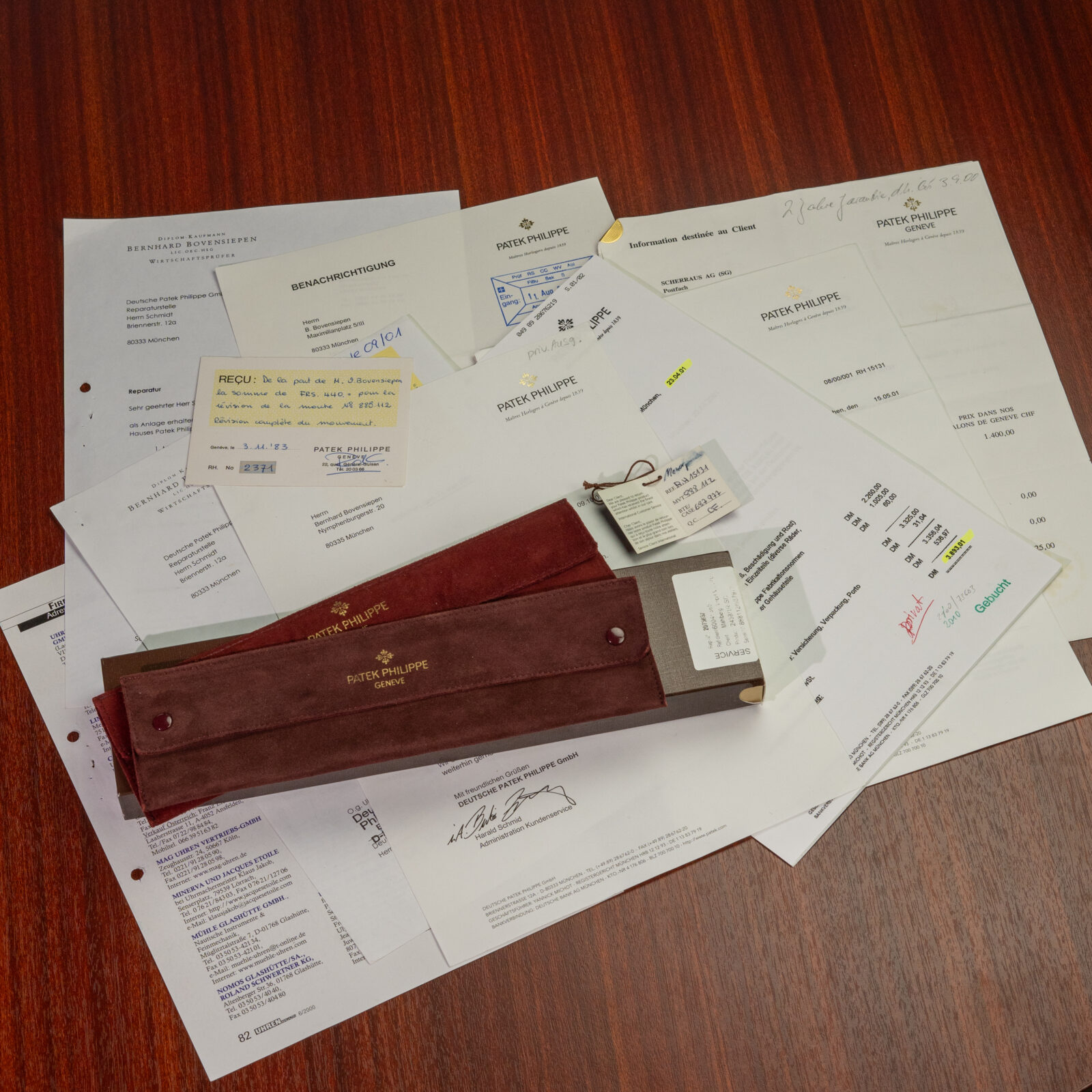 That client was Otto Gerhard Friedrich Bovensiepen, a German businessman, whose name remains delicately engraved on the caseback. The watch comes not as an isolated artifact, but as a complete chapter in horological history: its life documented through receipts, identification, and decades of service records. From the full revision carried out in 1983 to the archival requests lodged as recently as 2021, its journey has been one of careful preservation, guided always by respect for what it represents.