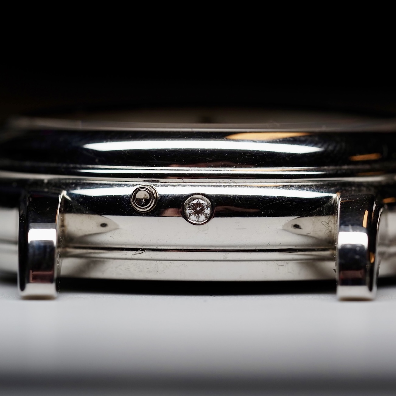 The ref. 5004P is one of the crowning glories of Patek Philippe’s storied history and, therefore, an essential part of any serious Patek collection. This watch is accompanied by the original box and papers and comes on a black alligator leather Patek strap with a 950 platinum Patek Philippe folding clasp. The condition is close to new.