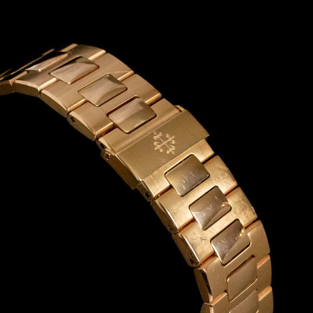 Patek Philippe NautilusPatek Philippe has always been a watch brand for the lucky few as they are the creator of the most exclusive timepieces in the world. They made mechanical masterpieces to fit the exquisite gentleman or elegant lady, mainly out of precious metal. But after the success of the Royal Oak from Audemars Piguet, designed by the famous Gerald Genta, Patek had to go overboard and create a steel sports watch of their own. The Nautilus, named after a Submariner, first saw light in 1976 and it was being advertised as a watch that worked equally well with a wet suit as with a dinner suit. Being the most expensive steel sports watch when it was launched, it was interesting to see how it would pan out. Another great success was added to Mr. Genta and Patek Philippe’s history. Eversince they made a whole bunch of variations in different materials, dial colour and layouts. All having in common that the shape of the case looks like a porthole with protruding ‘ears’ on each side of the case and with an eight-sided, curved bezel. Another cool feature can be found on the dial as all of them are strongly characterized by horizontal embossed bars.