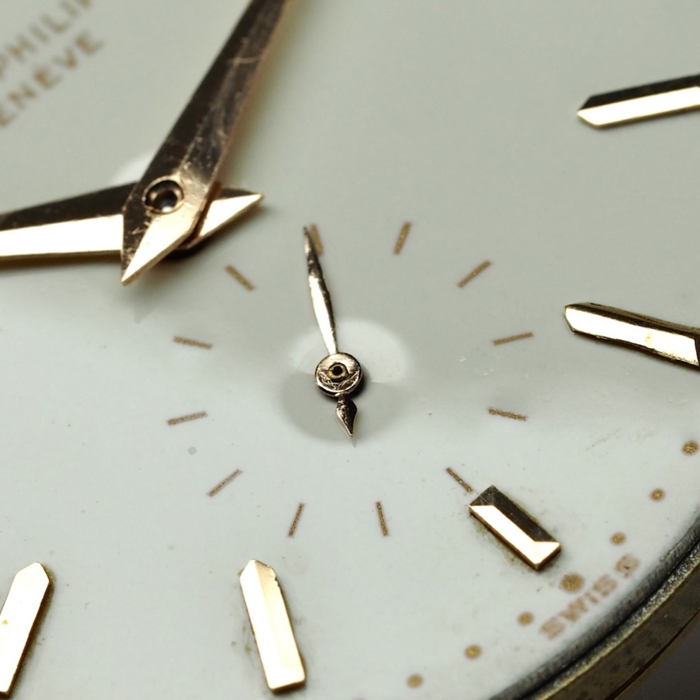 But what is so special about the decorative art that is enameling. First of all, aesthetically it adds so much charm to the watch. The way the light reflects on the surface is fascinating. The thick glaze creates dimples near to the batons and base of the hands. In combination with the deep brown text and second markers it gives it an unparalleled depth. Secondly, the durability. The Patek brochure read: “The dial, of baked enamel, is impervious to the action of outside agents, such as tarnishing produced by sunlight”. Whilst it was meant to last forever, the result turned out to be quite different. Enamel is hard and strong but has the tendency to break or shatter since it does not react well to the slightest bending, something that could happen when dropped for example. Unfortunately many have service replacement dials, later installed by Patek Philippe, and those are not enamelled. We are proud to say ours stills sports the original dial.
