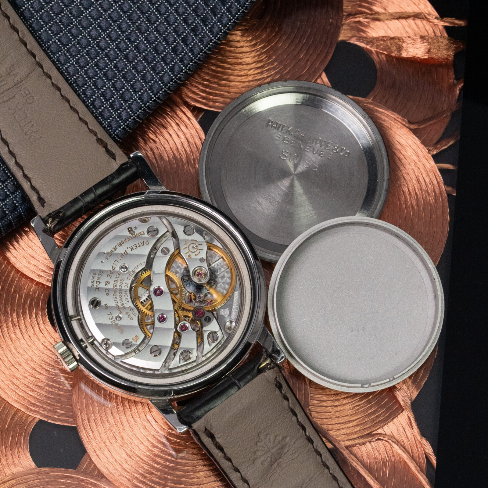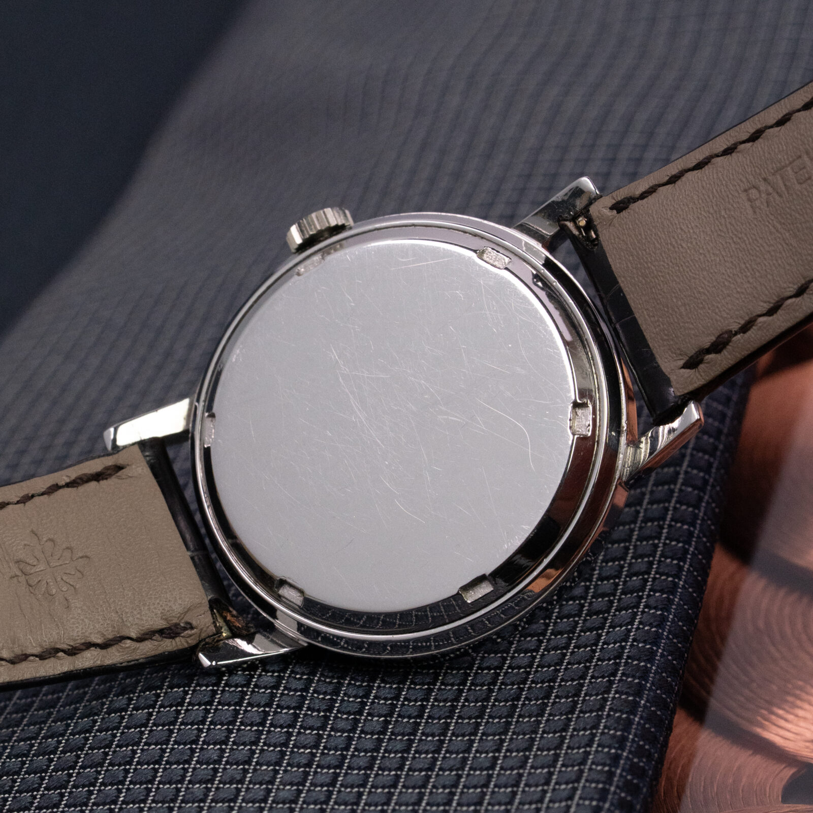Encased in 35mm of solid stainless steel — a rarity in Patek’s dress watch lineup — the 3417 houses the robust manual-wind caliber 27-AM 400 (earlier series are equipped with cal. 12”400), cloaked within a soft iron inner case to shield against magnetic fields. Its clean, almost architectural dial with applied markers and dauphine hands reflects quiet mid-century refinement, while the screw-down caseback hints at its utilitarian soul.