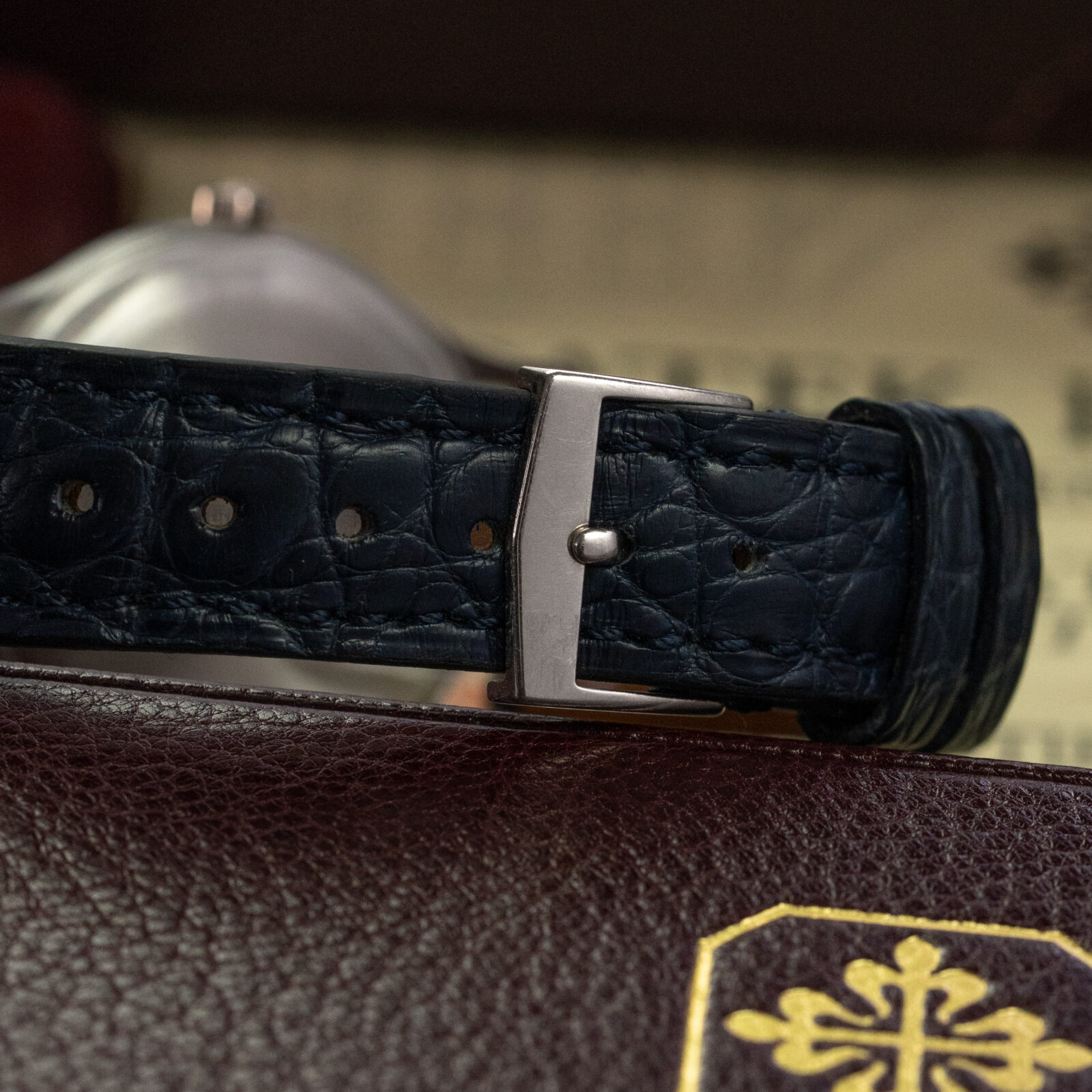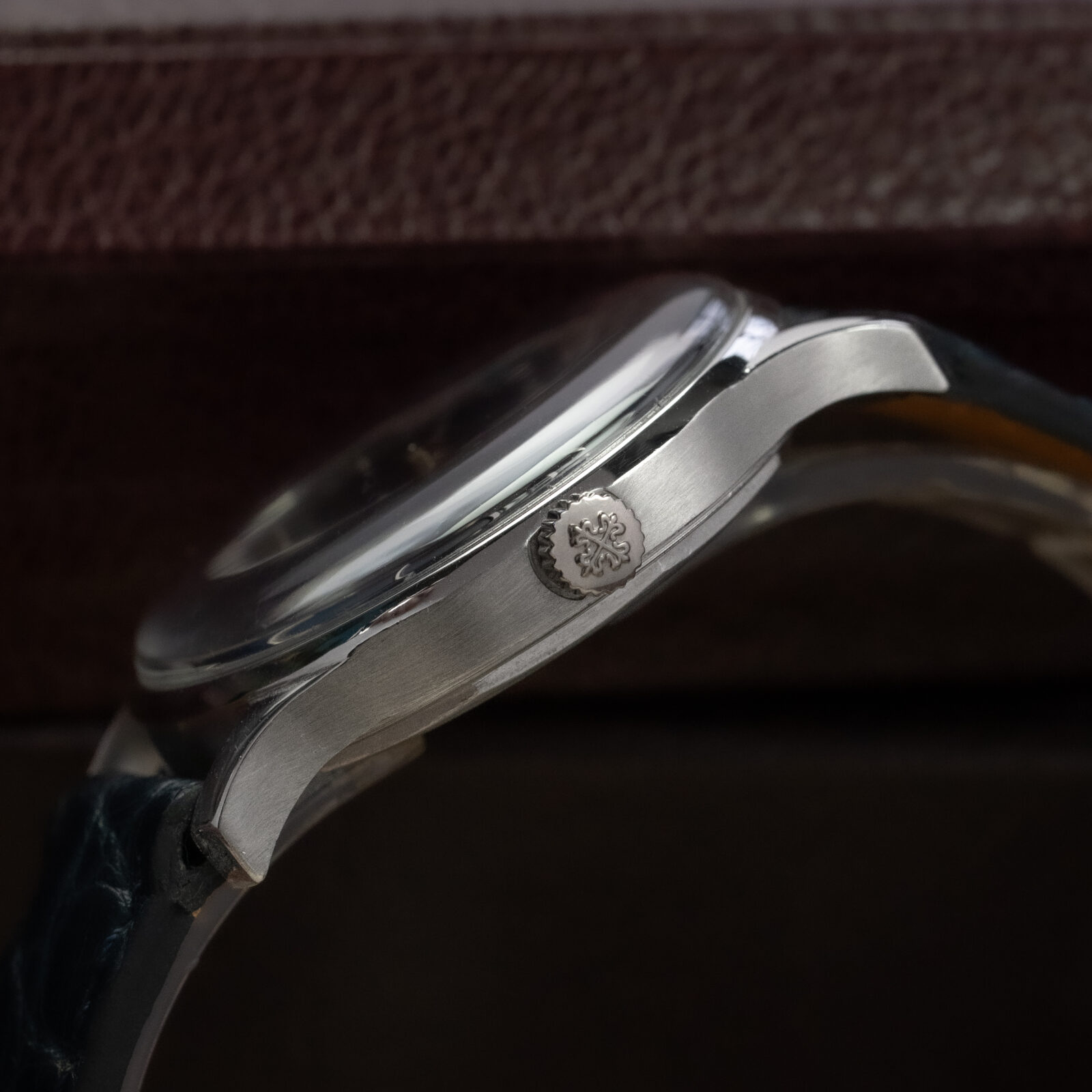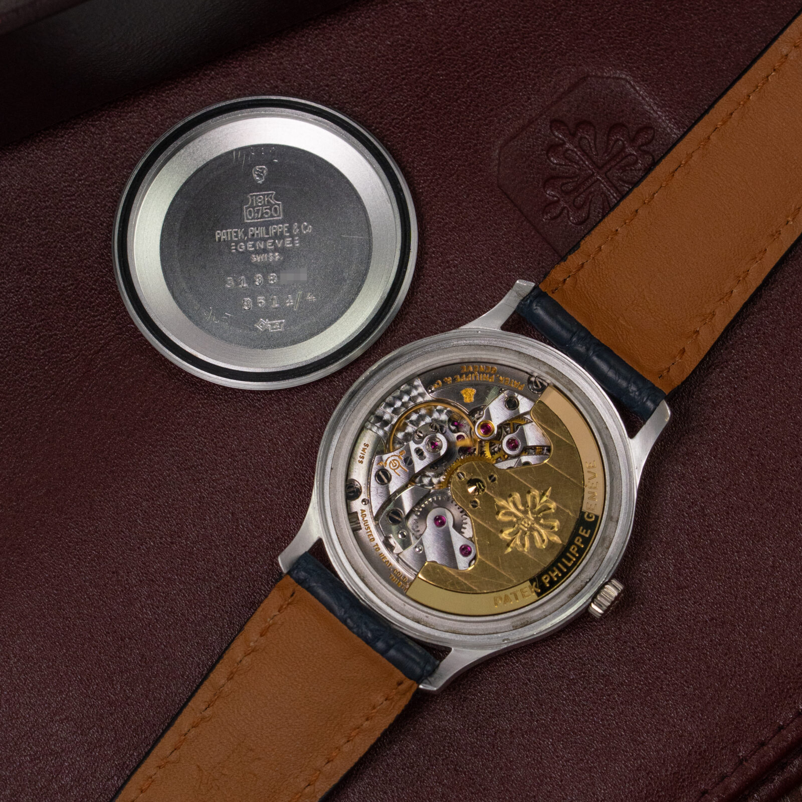 While most Calatravas are designed to impress in a purely formal sense, the Ref. 3514 manages to strike a rare balance: it is both elegant and effortlessly casual. Its appeal begins with the subtly sporty case, modestly sized, yet enhanced by a pronounced crown, beautifully contoured lugs, and the practicality of a screw-down caseback. The use of white gold, rather than traditional yellow, lends it a fresher, more contemporary character.