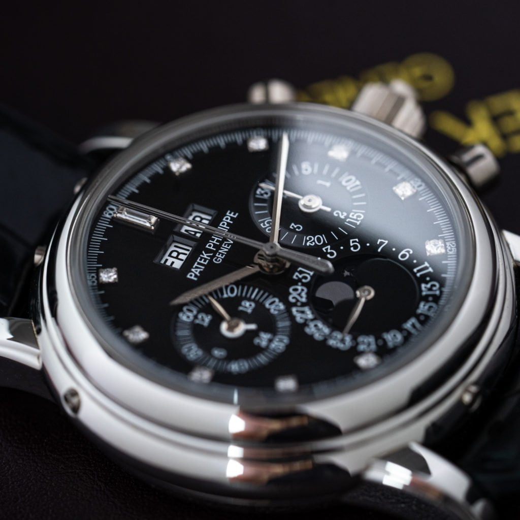 The 5004 takes an exceptional spot in Patek’s hall of fame, because it’s the maison’s first serially produced model to combine the perpetual calendar mechanism with a split seconds chronograph. Even though the watch was introduced in 1996, it is for many, the last truly vintage grand complications by Patek Philippe. With a case measuring in at 36.5 mm, the 5004 hits the sweet spot: not too small, not too large. Its successor, the 5204, in turn, would grow to a comparatively large 40 mm. However, the case of the 5004 is considerably thicker than the 3970 in order to house the extra chronograph module.