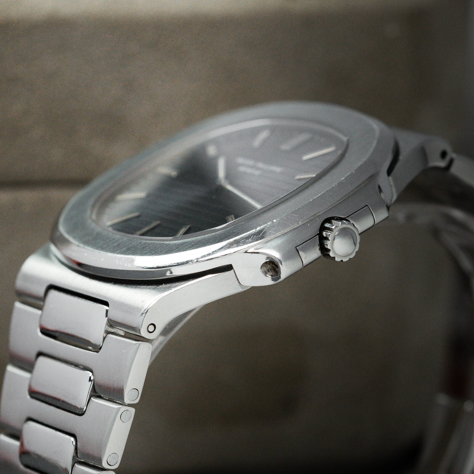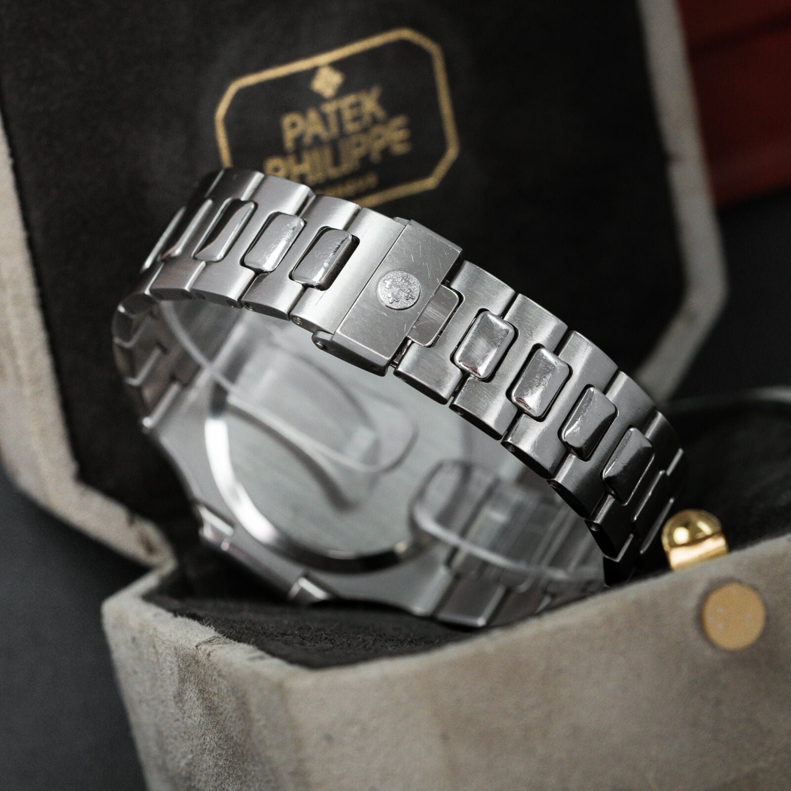 The 3700 is the original Nautilus, with this specimen dating back to the late 70's. The iconic octagonal case, designed by Gerald Genta, is executed in stainless steel and measures 42 mm (from the 10 to 4 o‘clock position). Attached to the case, we find the well-known integrated stainless steel Nautilus bracelet with sturdy folding clasp. Only until 1981 the case is made by Favre Perret and the bracelet by Gay Freres. Approximately 3500 of these "1st series" have been made in steel.