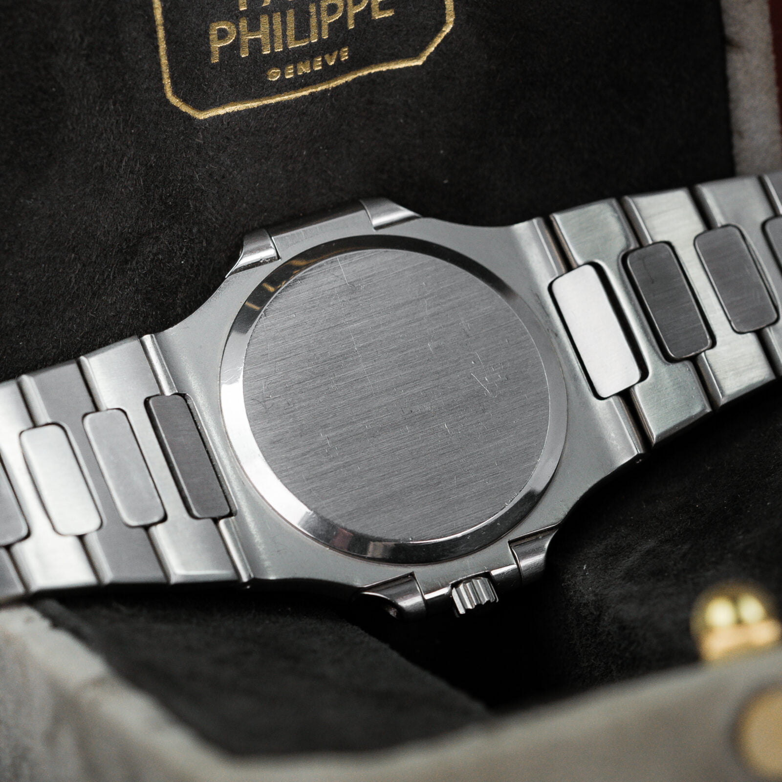 To emphasise once more the Nautilus isn't just a utility watch, Patek Philippe relied on one of the thinnest and finest automatic movements. Cal. 28-255C is based on the renowned 920 from Jaeger-LeCoultre. The watch is in excellent condition, with a sharp case and tight bracelet. Furthermore, it comes with the original box and papers; dating it to 1979.