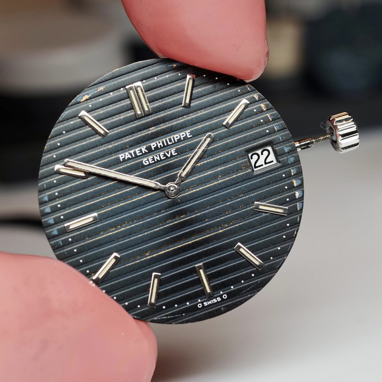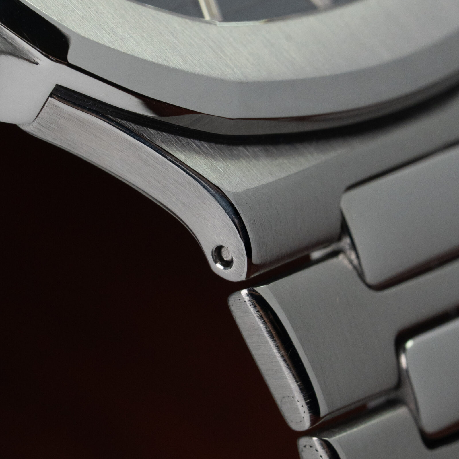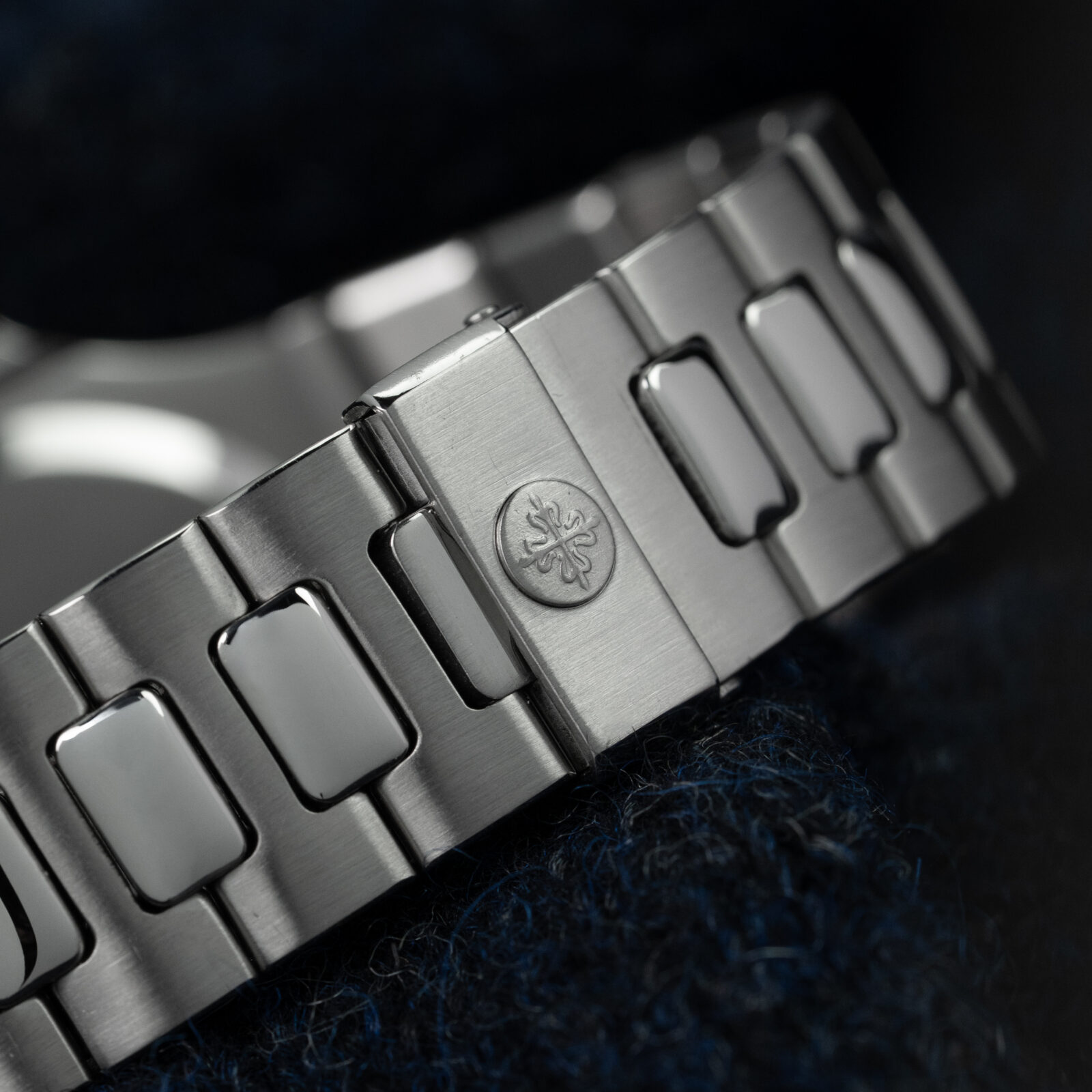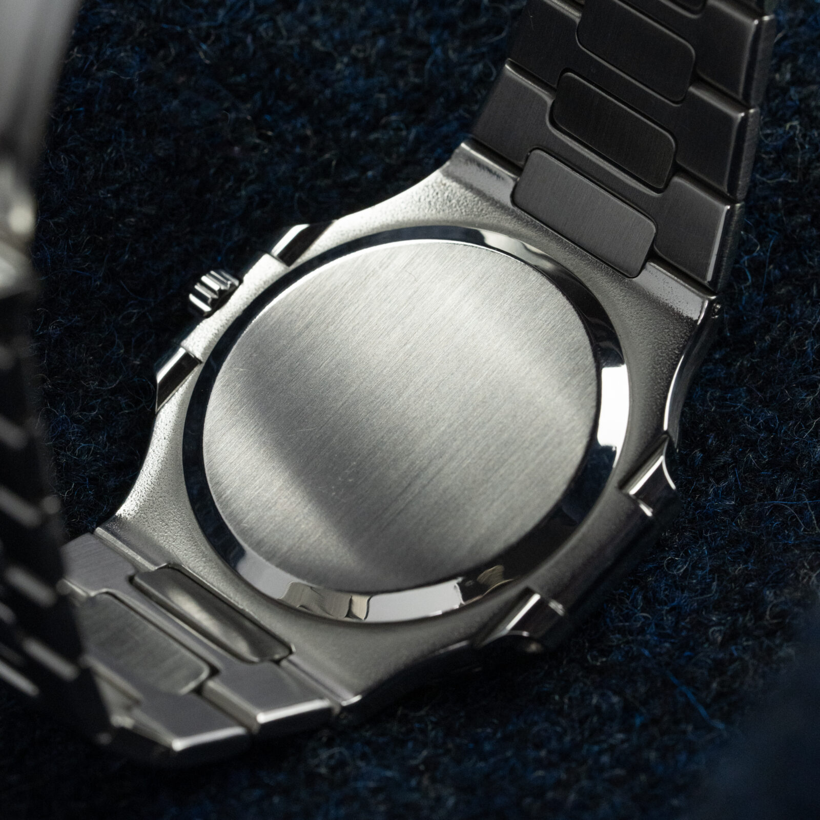 The stainless steel case retains its iconic proportions, with the porthole-inspired design and integrated construction that defined Gérald Genta’s original vision for the Nautilus. Gase geometry is consistent with careful use, preserving the integrity of this historically significant reference. The watch is paired with its integrated steel bracelet, which flows seamlessly from the case and remains a defining element of the 3700/1’s design. It has wider links than its successor, 3700/11, which was launched later. The bracelet shows appropriate wear for its age while retaining structural strength and visual coherence.