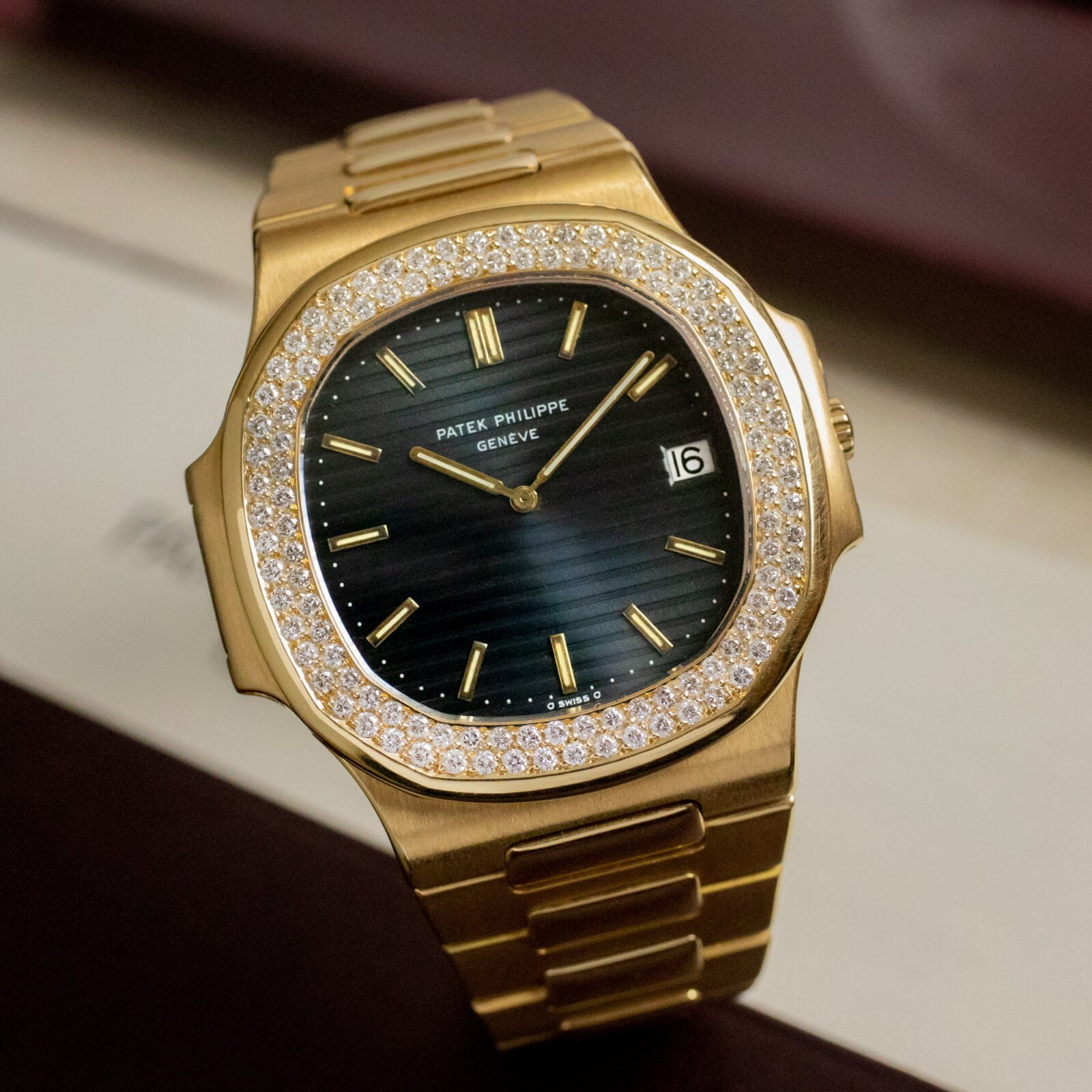 This watch is the holy grail of our colleague Ramon.In order to survive, Patek Philippe launched the Nautilus. It was a reaction to the massive decline in sales due to the introduction of quartz watches from Japan. Audemars Piguet released the Royal Oak in 1972 creating a new breed of watches: luxury sports watches. Patek Philippe turned to the same man, Gerald Genta, who had designed the Royal Oak to create a similar piece. Instead of a copycat, it turned out really well. So good that the Nautilus is more popular than the Royal Oak nowadays.Before the Royal Oak and Nautilus, the luxury watch market could be divided into two categories: dress watches (made from gold) and sports watches (made from steel). The Nautilus was Patek Philippe's venture into a new species of watches. Namely, a combination of both. Initially, it was launched in steel. However, as it quickly gained popularity, versions in gold, two-tone and platinum were introduced. The example we have on offer is executed in 18k yellow gold and the bezel and the index of the dial are decorated with brilliant-cut diamonds. Whereas, the steel variant is perfect to wear on a daily basis, the one we have is more likely to accompany your wrist while popping bottles of champagne on your yacht. The gold and diamonds add so much flair and suave to an already amazing watch. Needless to say, this important timepiece is in mint condition, showing the perfect edges and angles of this mesmerising design. Furthermore, it comes with a Patek Philippe box and the Extract of the Archives, which dates the watch back to 1981.