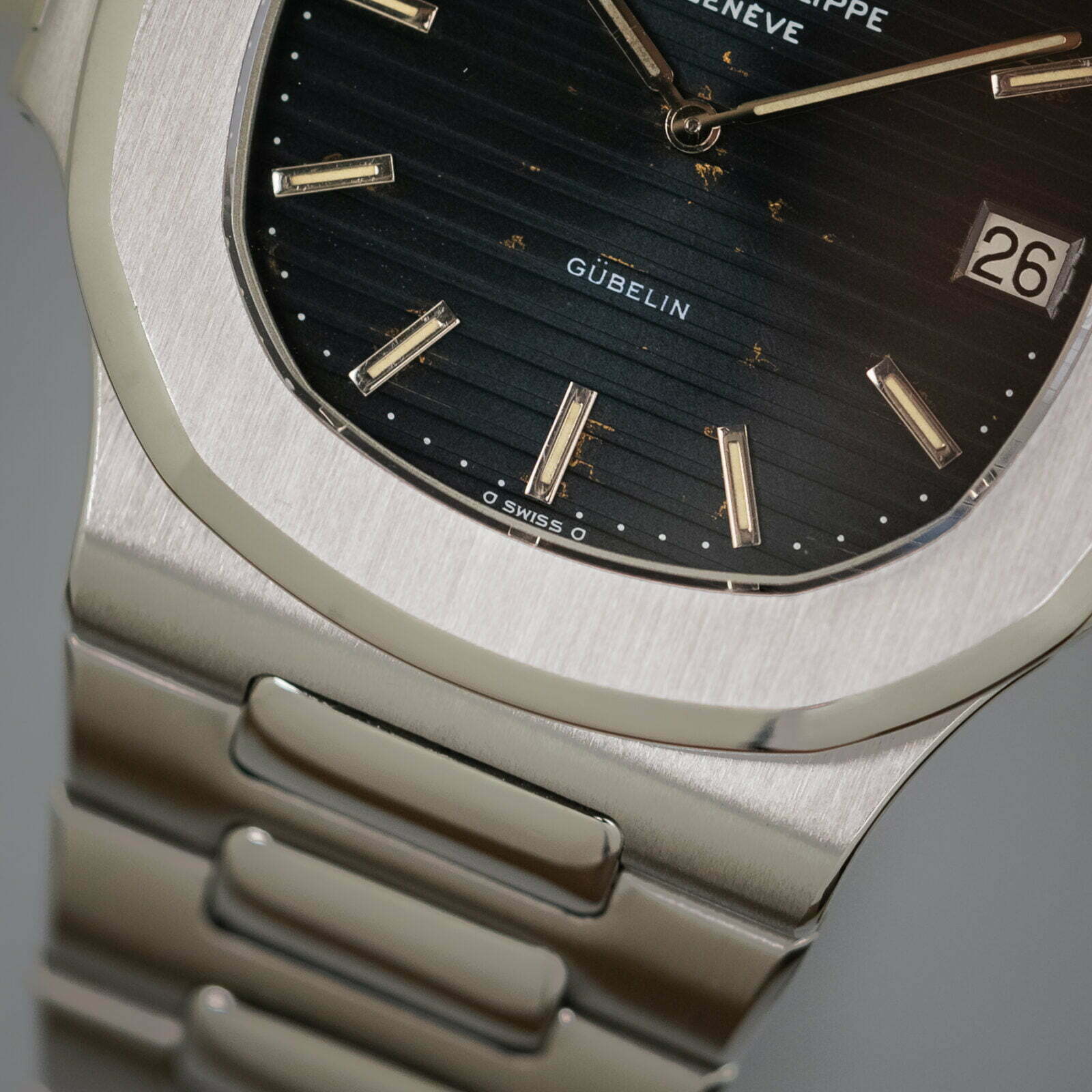 he 3700 is the original Nautilus, with this specimen dating back to the late 70's. The iconic octagonal case, designed by Gerald Genta, is executed in stainless steel and measures 42 mm (from the 10 to 4 o‘clock position). Attached to the case, we find the well-known integrated stainless steel Nautilus bracelet with sturdy folding clasp. Only until 1981 the case is made by Favre Perret and the bracelet by Gay Freres. Approximately 3500 of these "1st series" have been made in steel.