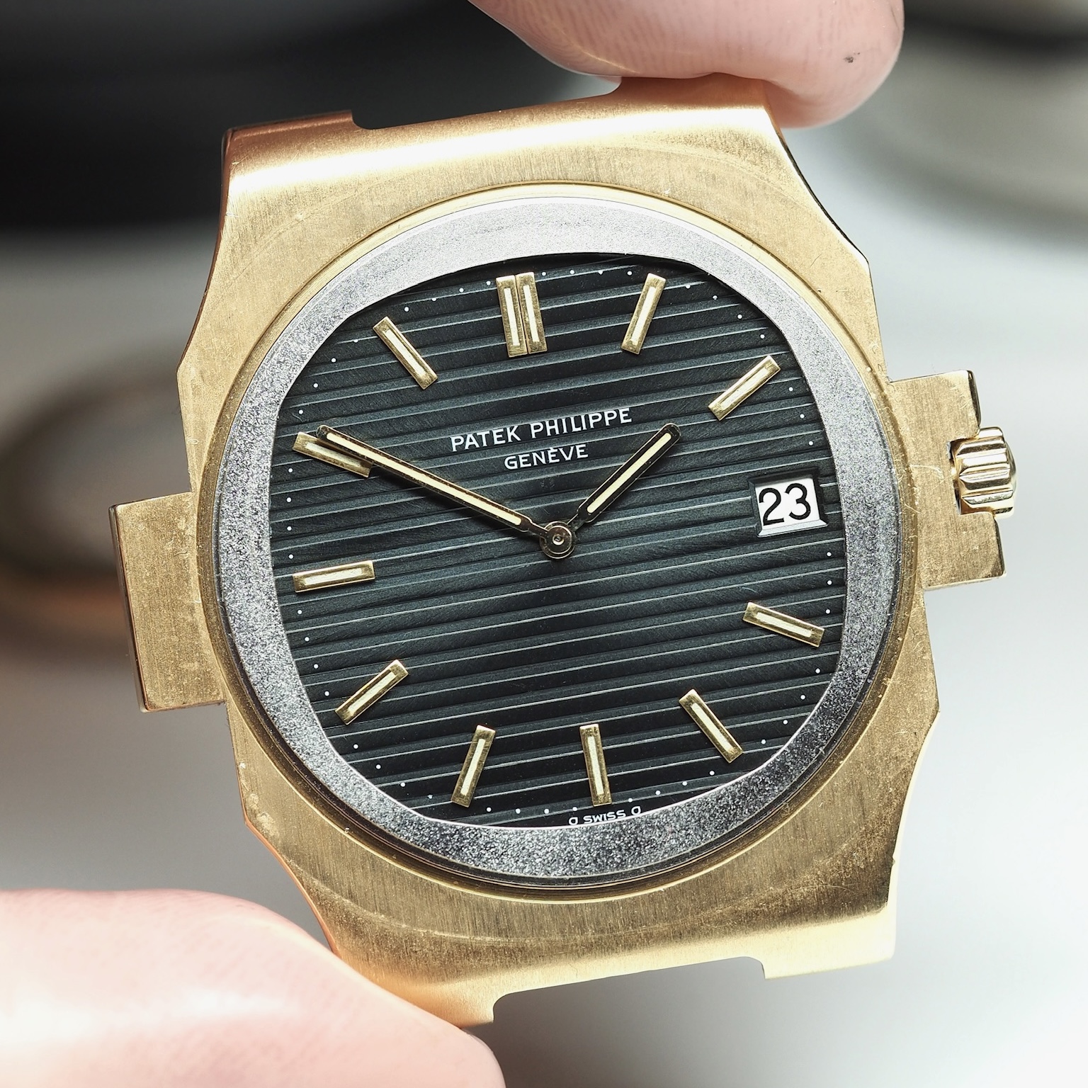 However, as it quickly gained popularity, more opulent versions were introduced. The example we have on offer is executed in 18k yellow gold from the "2nd series", meaning it is a 3700/11 rather than its more common 3700/1. The difference lies in the case and bracelet construction, with the former being produced by Atelier Reunis. Patek Philippe switched in the early 80's and created approximately five hundred /11J, they released twice as much /1. The biggest distinction in the way it wears lies in the bracelet. The links on the 2nd series are longer and the bracelet is more tapered; arguably making it slightly more elegant.