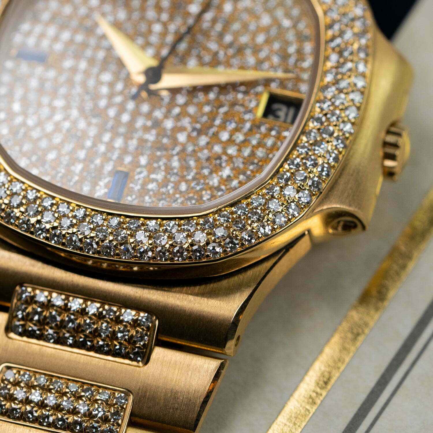 18k yellow-gold integrated bracelet with factory-set diamonds, original Patek Philippe