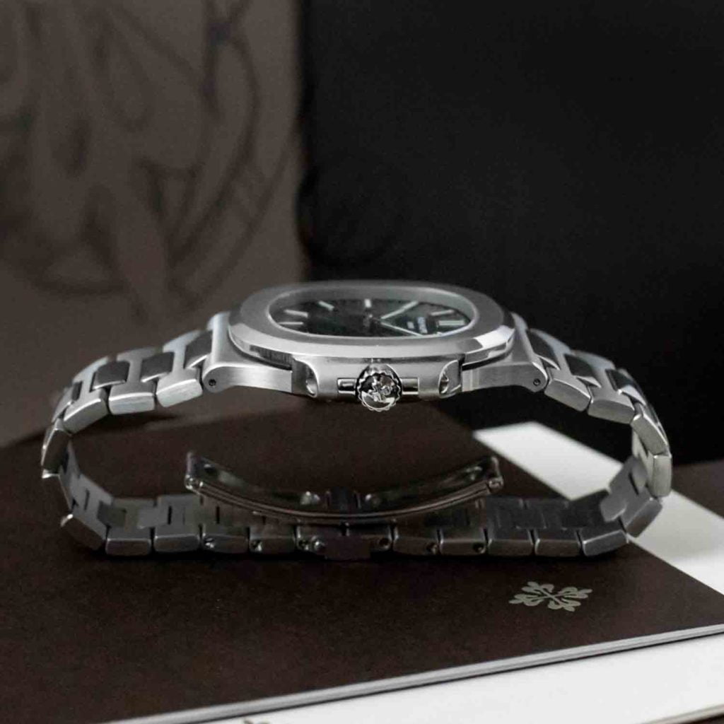 Patek Philippe NautilusPatek Philippe has always been a watch brand for the lucky few as they are the creator of the most exclusive timepieces in the world. They made mechanical masterpieces to fit the exquisite gentleman or elegant lady, mainly out of precious metal. But after the success of the Royal Oak from Audemars Piguet, designed by the famous Gerald Genta, Patek had to go overboard and create a steel sports watch of their own.The Nautilus, named after a Submariner, first saw light in 1976 and it was being advertised as a watch that worked equally well with a wet suit as with a dinner suit. Being the most expensive steel sports watch when it was launched; it was interesting to see how it would pan out. Another great success was added to Mr. Genta and Patek Philippe’s history. Eversince they made a whole bunch of variations in different materials, dial colour and layouts. All having in common that the shape of the case looks like a porthole with protruding ‘ears’ on each side of the case and with an eight-sided, curved bezel. Another cool feature can be found on the dial as all of them are strongly characterized by horizontal embossed bars.