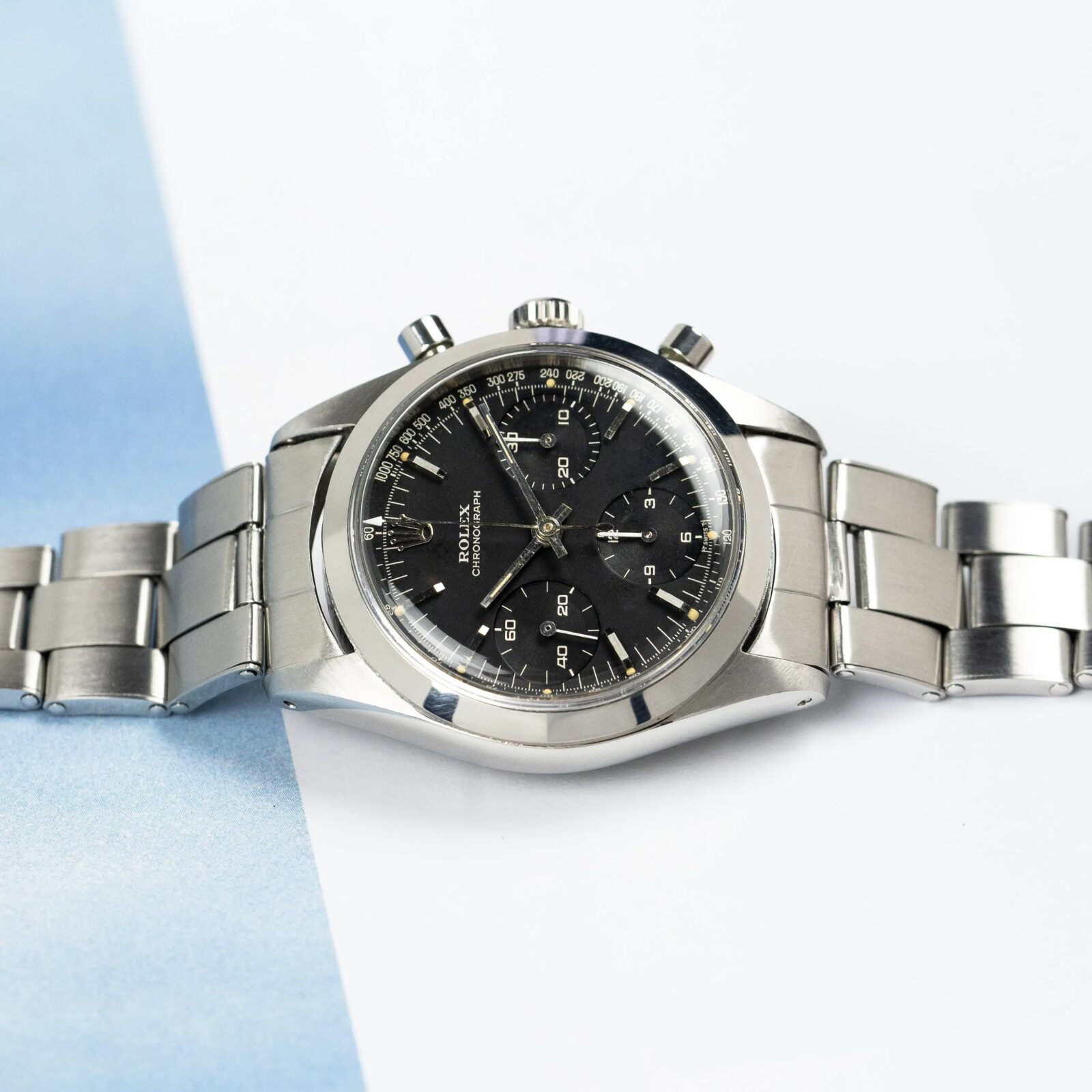 A rare, very sought-after and historically important model; being the father of the Rolex Cosmograph Daytona as we know it today. The reference 6238 belongs to the the last line of watches that didn’t bear a model name on the dial. However, it’s known among collectors and aficionados as the ‘Pre-Daytona’; albeit this reference being in production alongside the 6239.