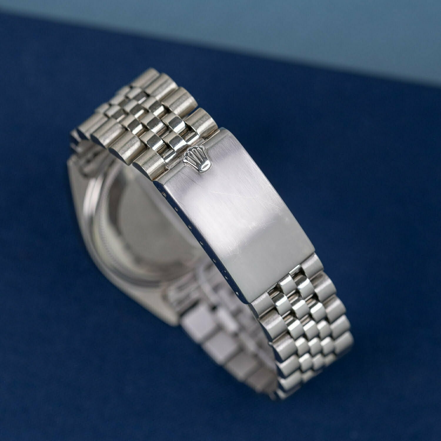 Nowadays, lapis is used primarily in jewelry and our favorites are lapis lazuli dial watches. Over the years, we’ve had a fair share of lapis lazuli Rolexes in yellow gold, but a white gold one is outright rare, even more so when executed as a Datejust rather than the more obvious Day-Date. In fact, this beauty from 1974 is only the second white gold Datejust with lapis dial we’ve ever acquired. The rare matching 18k white gold Jubilee bracelet further adds to the watch’s coolness factor.