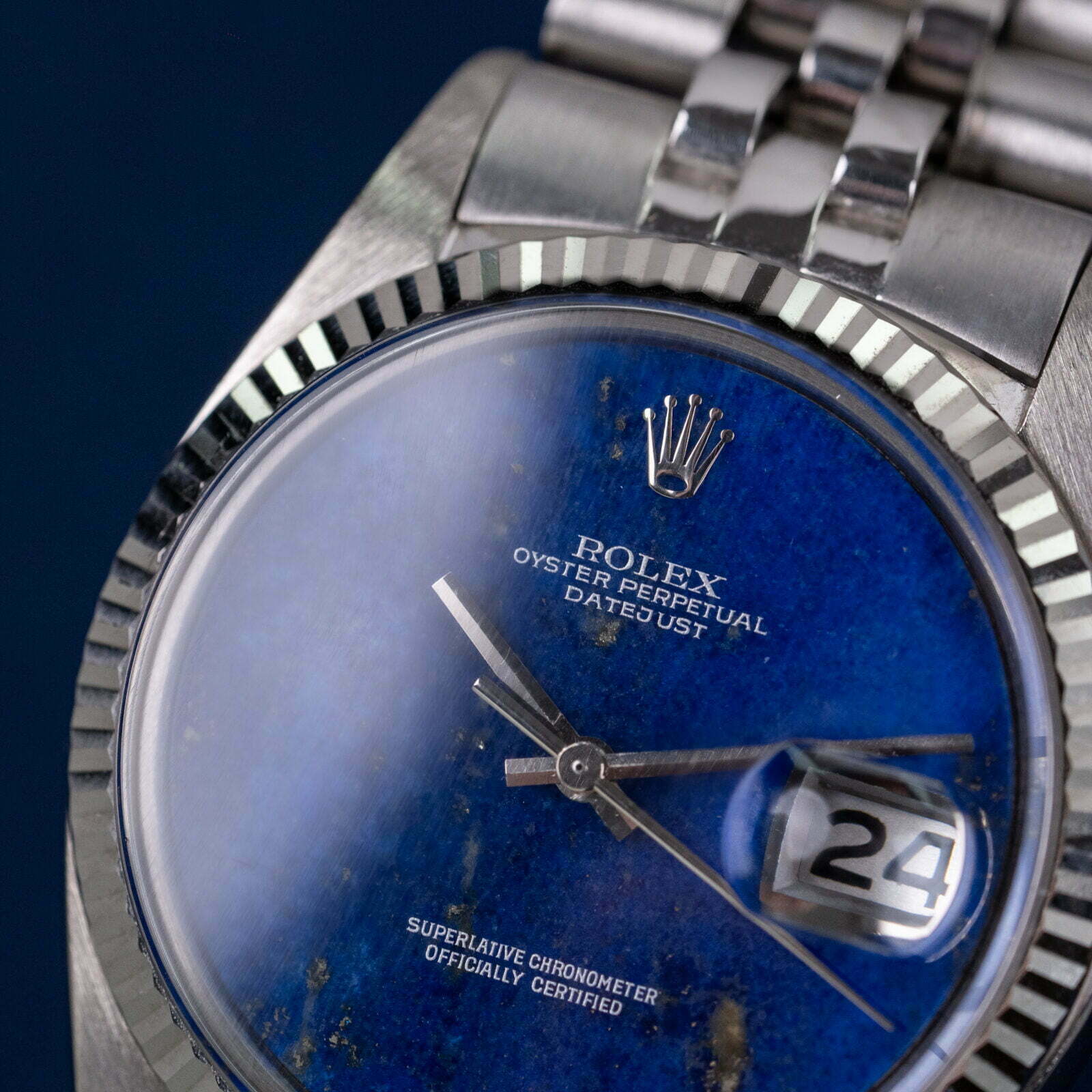 Lapis lazuli dials are among the most sought-after stone dials produced by Rolex. Now combine that with a white gold Datejust and you have a truly rare beast.