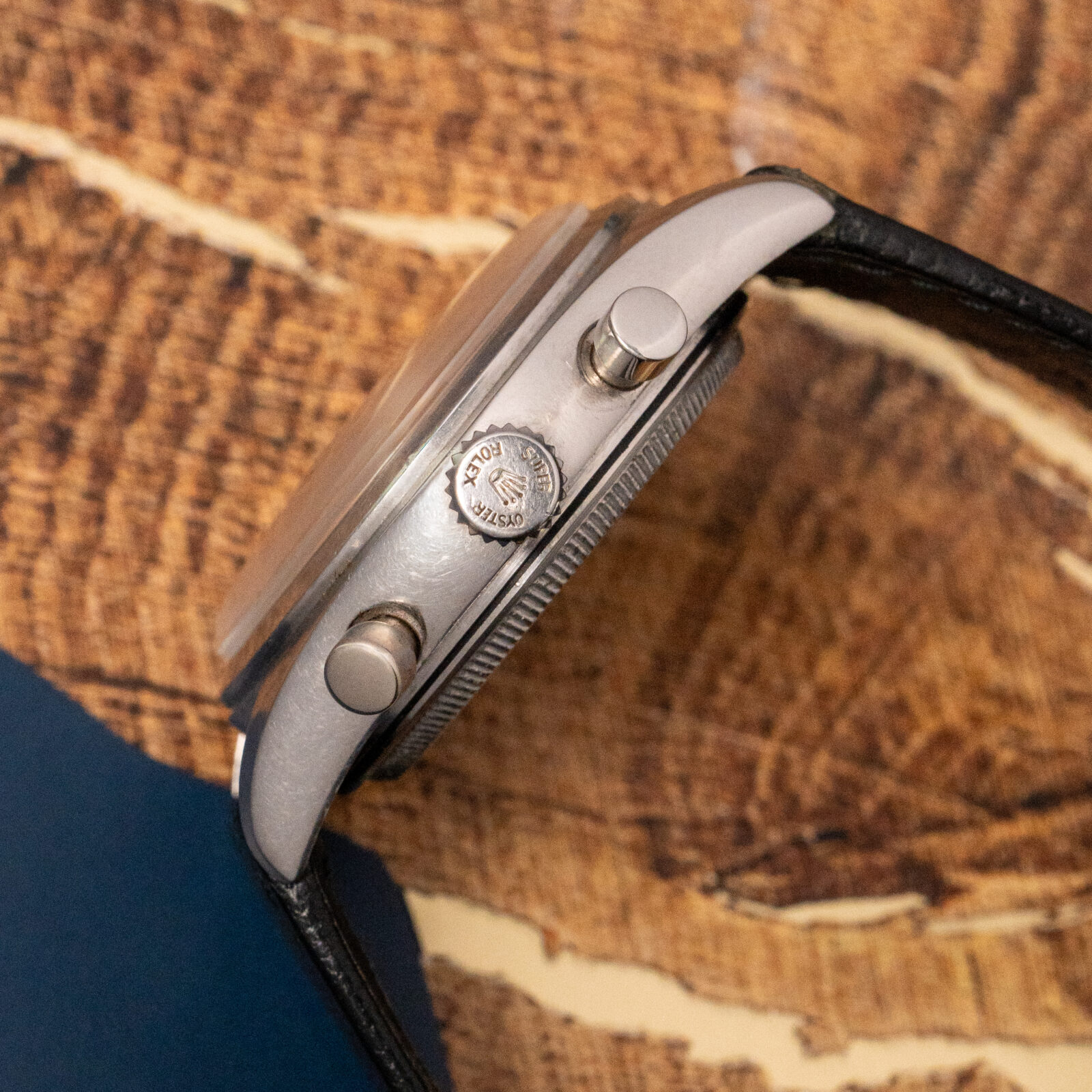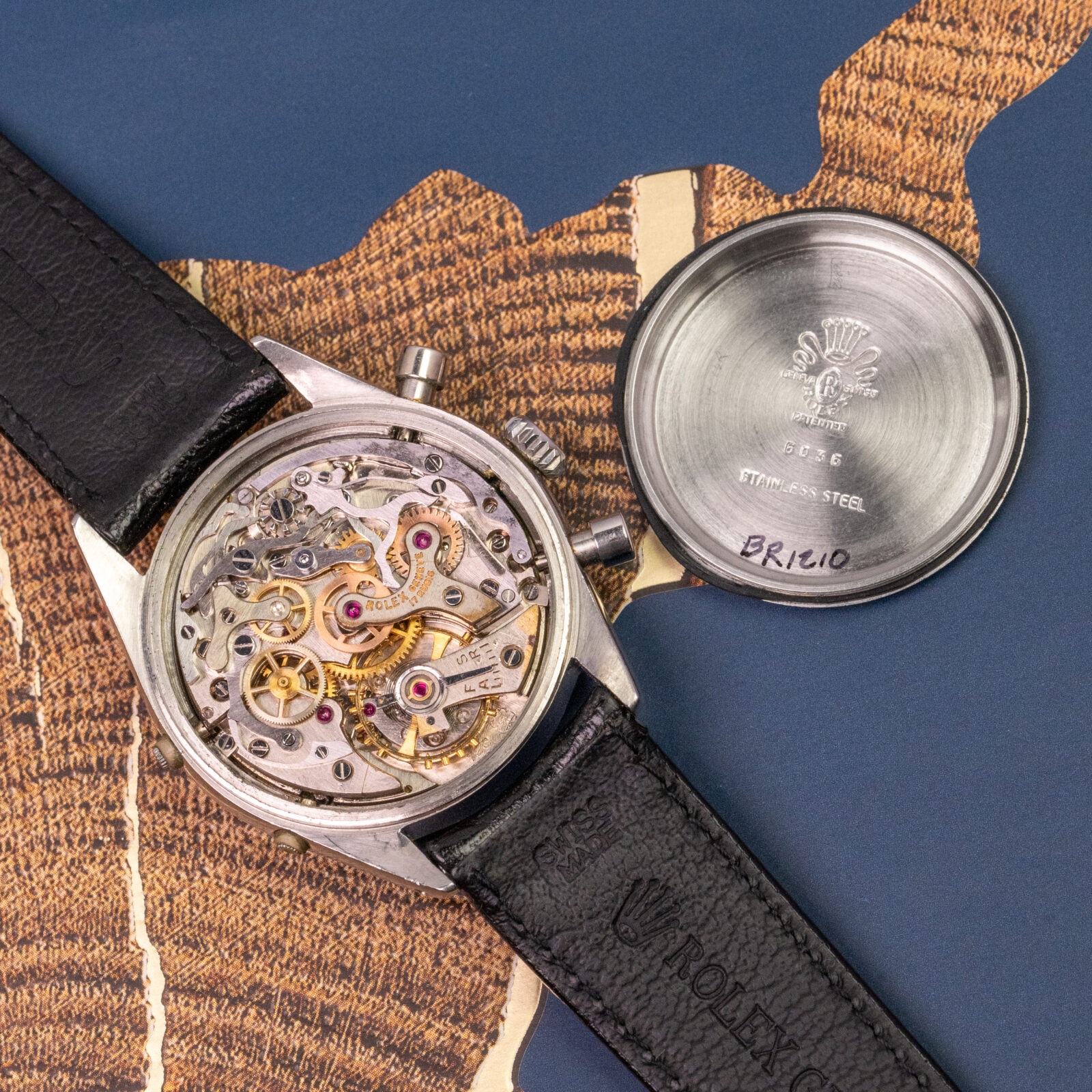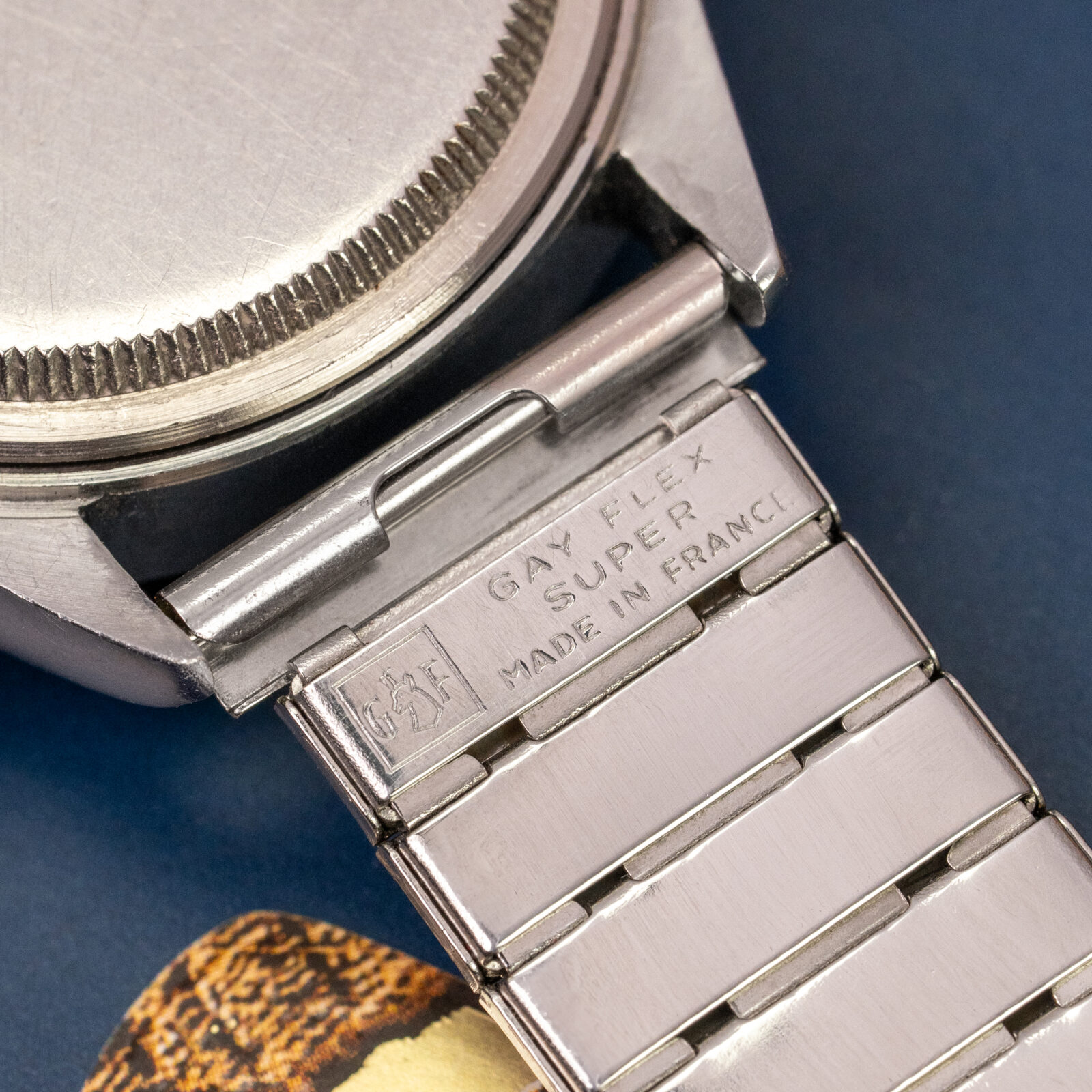 It is provided with a bracelet that also originates from "L'Hexagone". Gay Freres is a significant bracelet maker that worked for Rolex, among other prestigious brands. This "GayFlex Super" further enhances the sporty elegance this complicated toolwatch has to offer. But if preferred on leather, it also is delivered with an original black leather strap with Rolex buckle.