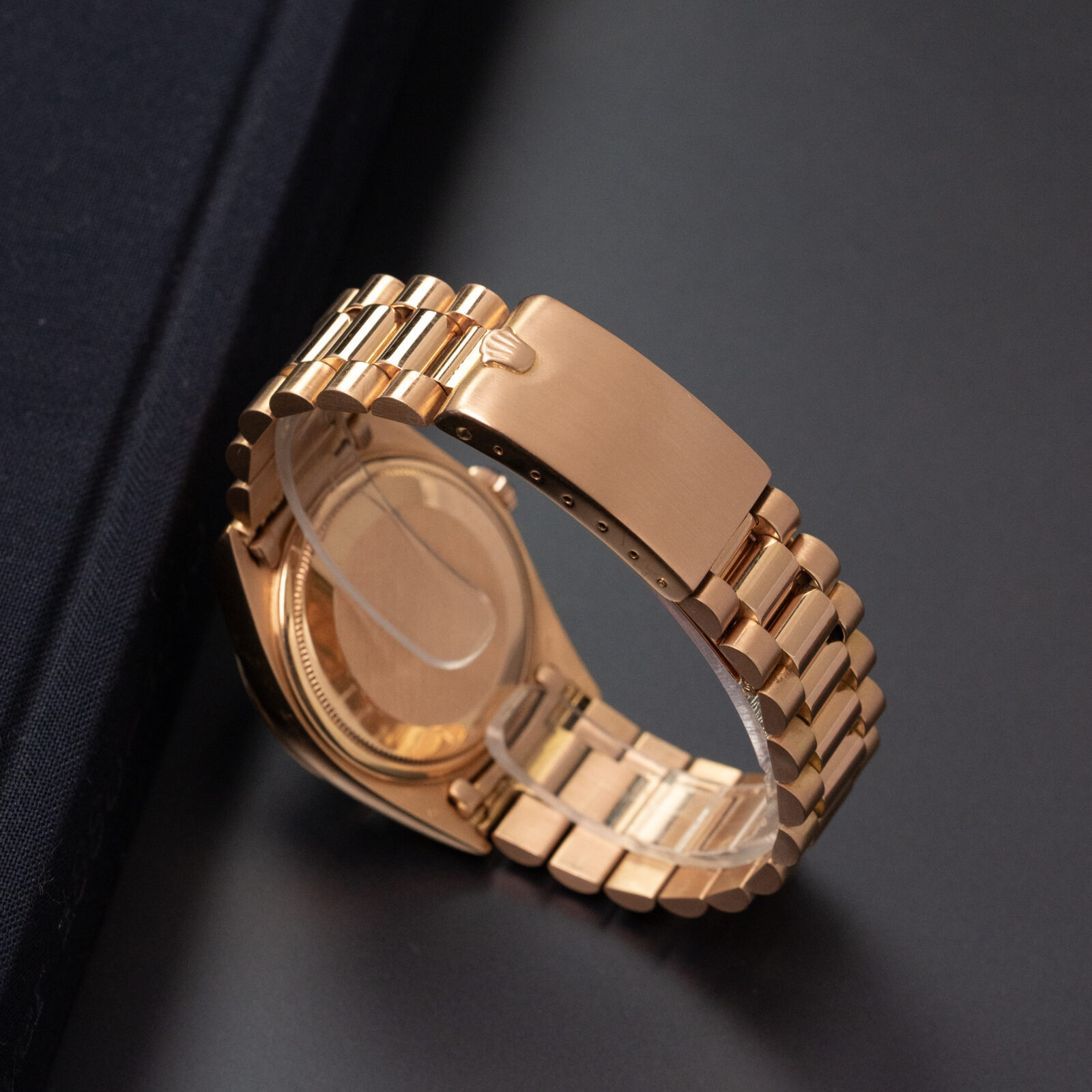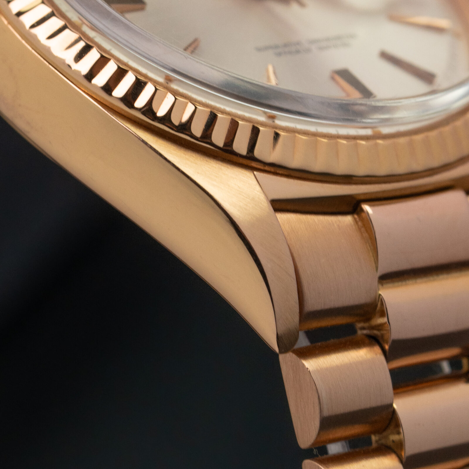It’s very difficult to further improve such a classic recipe, but this beauty from 1970 manages to do so. Trading in the classic 18k yellow gold material for a rose gold alloy. It takes on a much warmer tone than your average Day-Date. Don't forget that rose gold is quite uncommon on a vintage Rolex. For one, it just wasn’t a common material for men to wear until quite recently. Yellow gold and white gold fared much better in yesteryear. Second, perhaps as a result of the first; Rolex stopped the production of rose gold watches in the 1970s and only resumed around the late 1990s when they created their 'Everose' metal. As a result; vintage rose gold Rolexes are very rare.