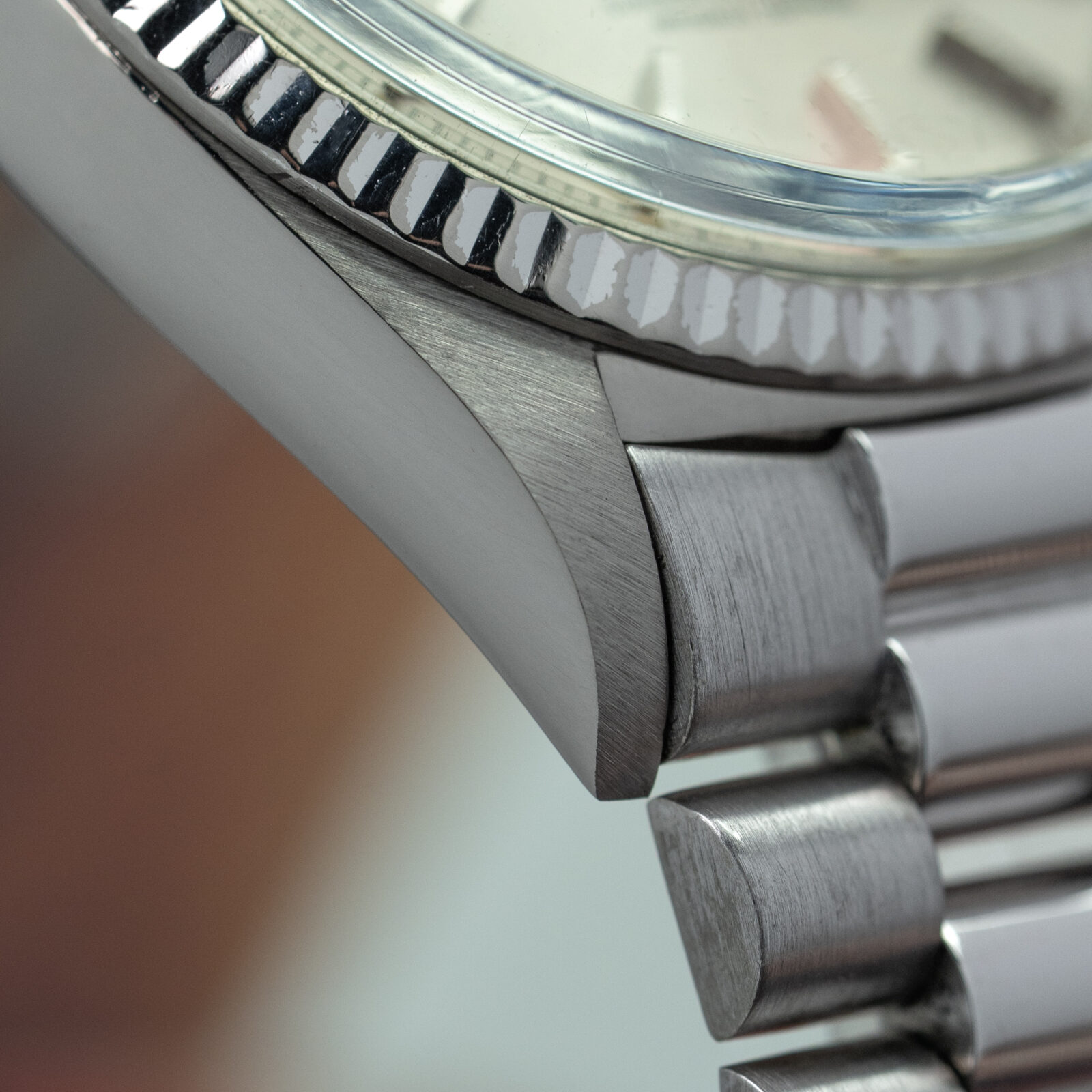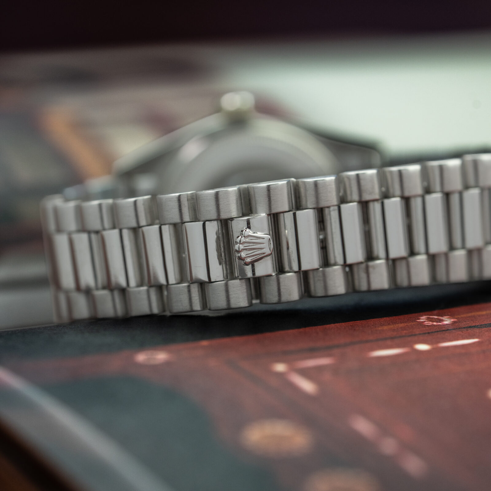 Paired with its President bracelet with concealed clasp, the watch wears exactly as a Day-Date should. Comfortable, elegant, and unmistakably Rolex in its execution. The bracelet integrates seamlessly with the case, giving the watch a coherence that modern generations often complicate.