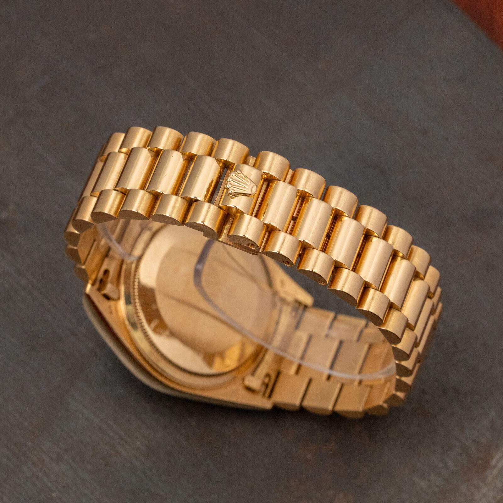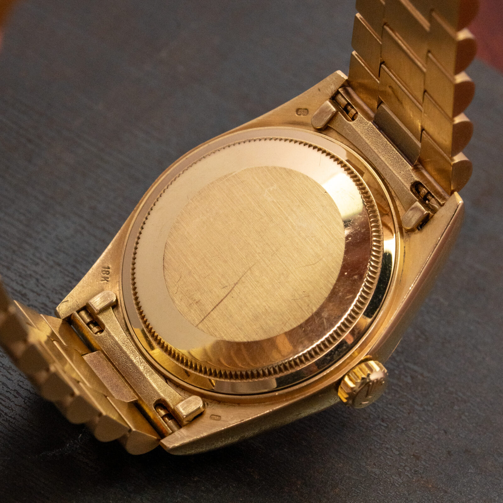 The Rolex Day-Date has long been the benchmark for elegance in precious metal, and this 18038 from 1988 captures the model at its best. Executed entirely in 18k yellow gold, it features the classic 36 mm Oyster case with fluted bezel and President bracelet.
