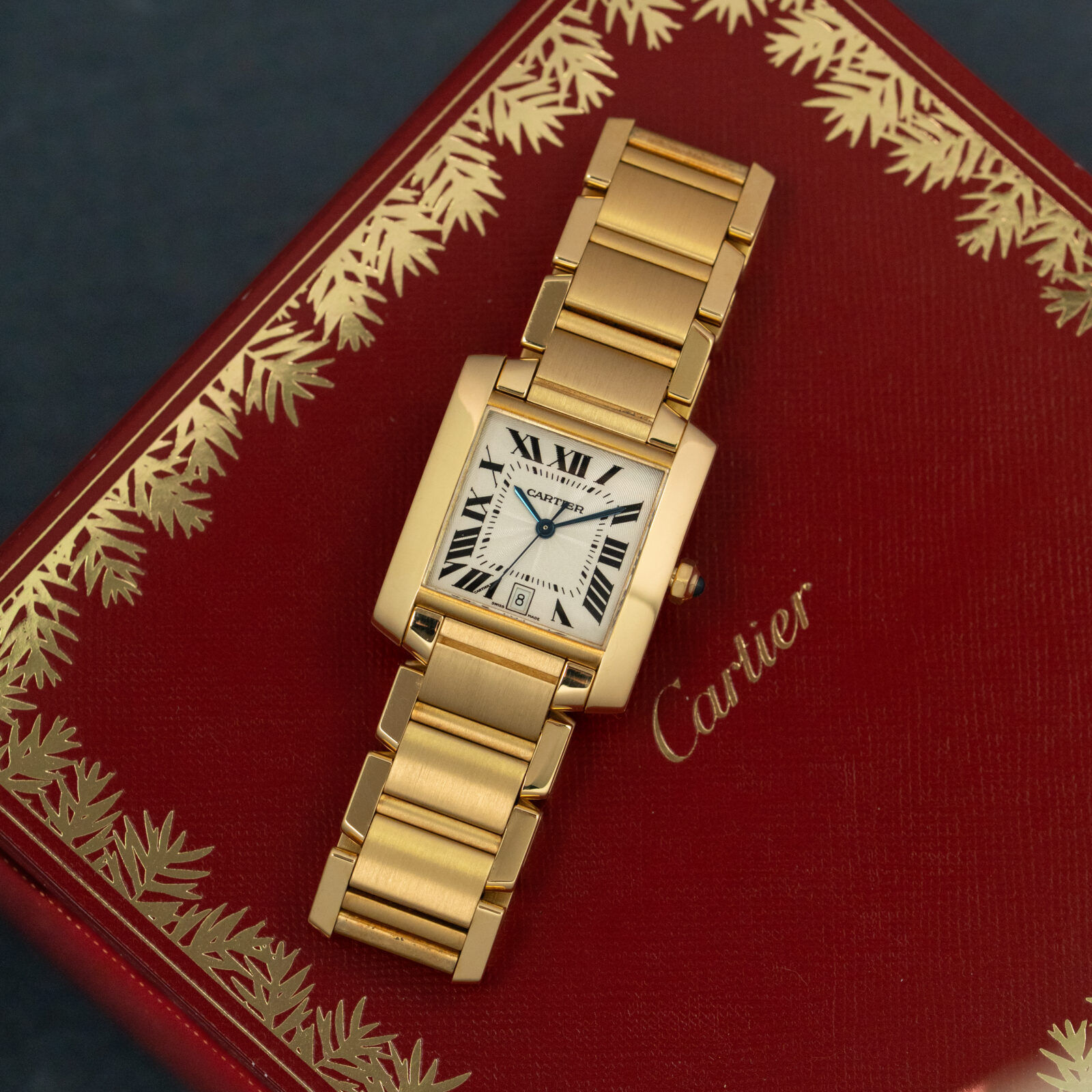 Al Bilad means The Country. The name is often used by state-owned enterprises in Saudi-Arabia, such as the Al Bilad Bank and the Al-Bilad Newspaper. Rolex issued this watch in 1982 to Albilad Fire Fighting Systems Co. Ltd., an organization from Saudi-Arabia specialised in - you won't believe this - fire protection services. Instead of 'Superlative Chronometer Officially Certified' the dial displays the blue company logo of Albilad. There are various dials with crests and company logo's and basically, the two configurations are: a logo that replaces the S.C.O.C.-text (like this one) and a dial in which the logo is displayed together with this text (for example, at the 9-hour position). The first type is more valuable.The blue logo on the dial is a cool feature that pops out and looks so fresh when the sunlight hits the champagne-gold dial. The watch comes with box and papiers but you should know that the papers have not been signed, which is often the case with issued watches. The 18k yellow-gold case, bezel and President bracelet with concealed clasp are in sharp condition. This is the perfect Day-Date for you if you really want something else, something that no one else will have.