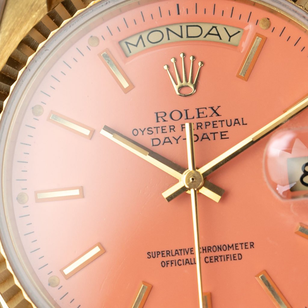 A happy accident or maybe hindsight really is 20/20. What it all boils down to is that the outrageously coloured Rolex dials from the 1970s and 1980s are among the most coveted vintage watches nowadays; and it’s not that hard to understand why. During this period Rolex offered bright lacquered dials, with the paint being provided by a company called Stella SA. This option wasn’t particularly popular. After all, you had to be a gentleman (or lady) of considerable means to be able to afford a Day-Date and it was unlikely that a person of that stature would wear a gold watch with such a loud dial. As a result, Stella dials are very scarce and collectible nowadays.