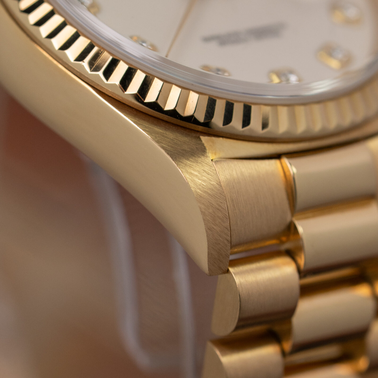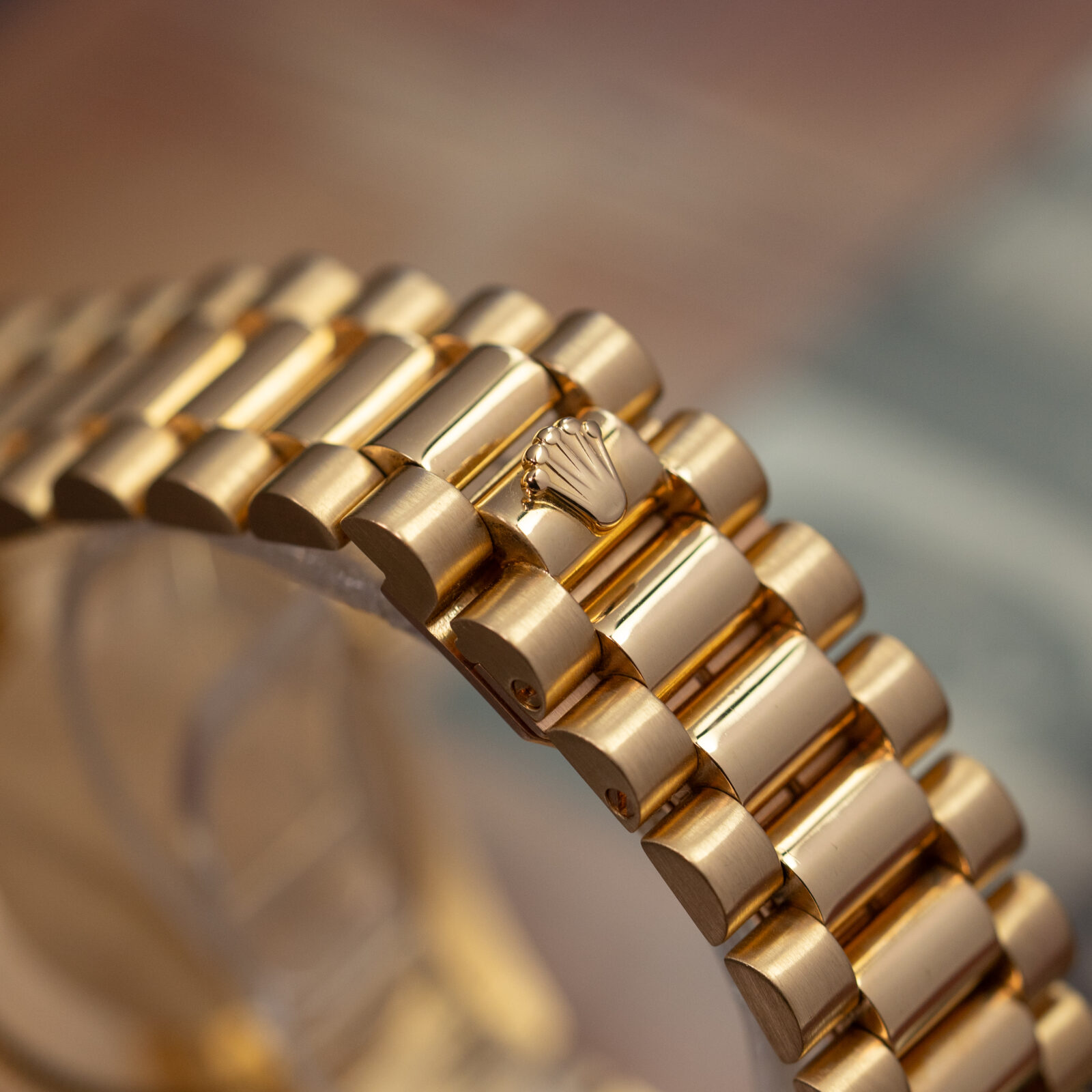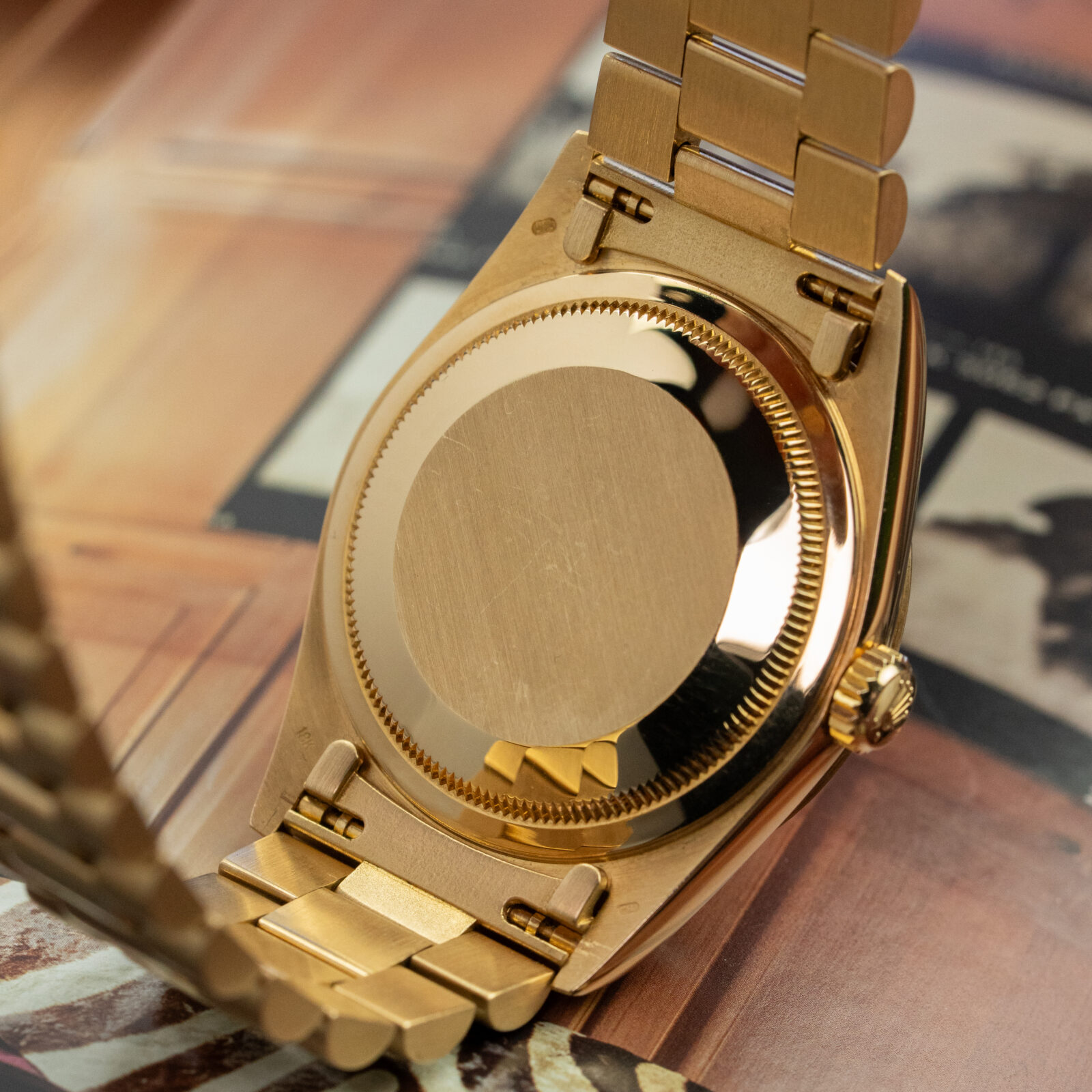 The reference 18238 is known for its upgraded caliber 3155 which gives you the double quickset function, making it extremely easy to set the day and date on your watch. The one we have for you today is from 1993 and sits on the go-to 18k yellow gold President's bracelet with hidden fold clasp. The bracelet is in a very good condition with little to no stretch.