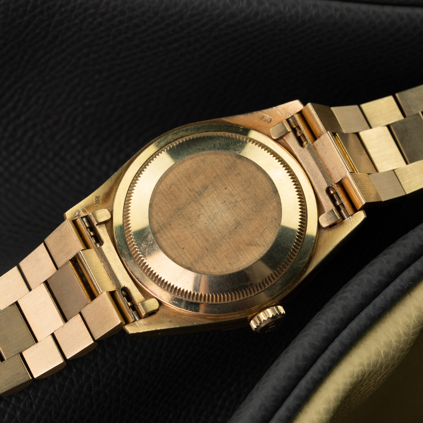 The Rolex Day-Date is a true pioneer: the first automatic, waterproof, chronometer wristwatch that indicated both the date and day of the week. The 182xx series, introduced in 1988, is the fifth generation of Day-Dates. This ref. 18238 dates back to 1992 and features the updated caliber 3155 automatic movement with the convenient double quickset function to separately adjust the day and date discs.