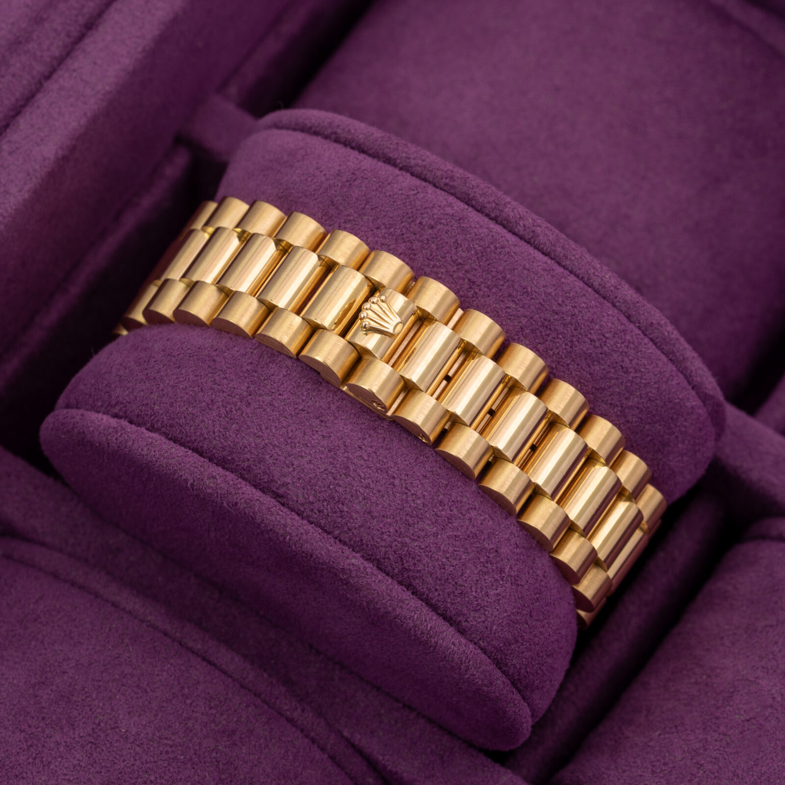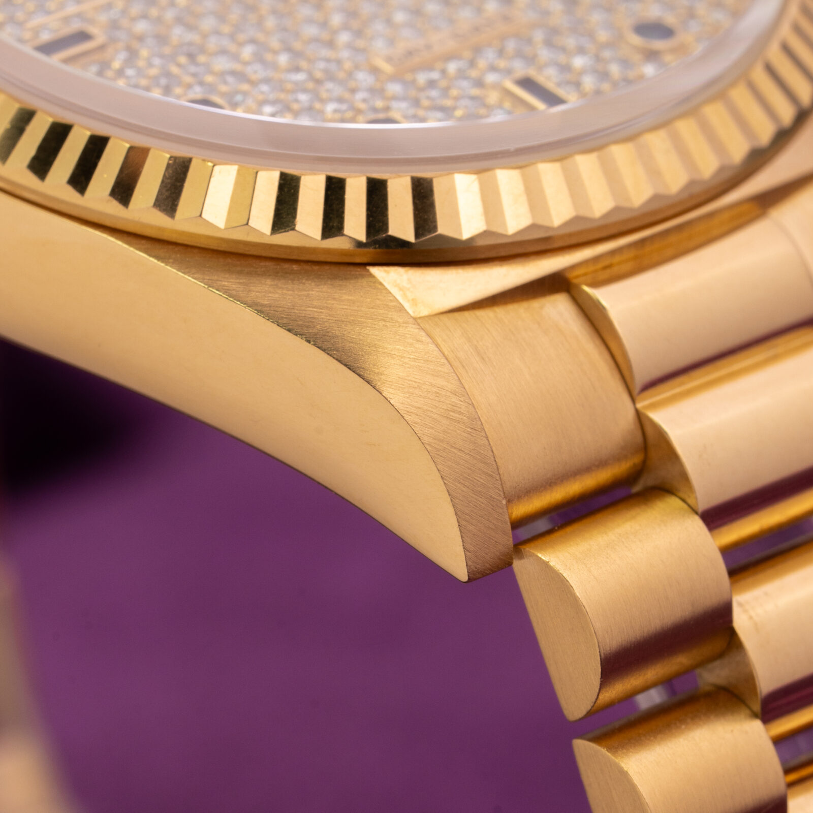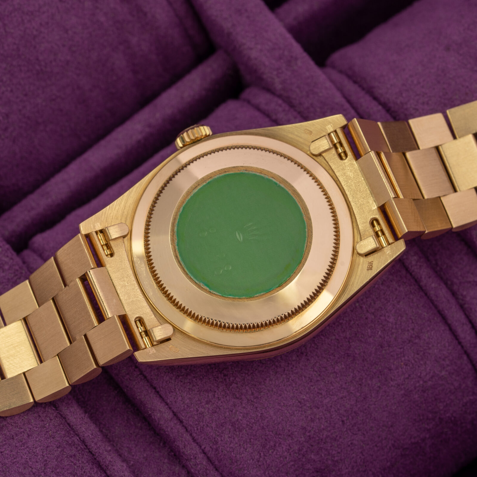 The watch is preserved in impeccable condition, with thick lugs and sharp fluted bezel. The caseback sticker is still present and the hallmarks are clearly visible. To top it all off it comes attached to the no-nonsense, iconic President' bracelet with concealed folding clasp showing little to no stretch.