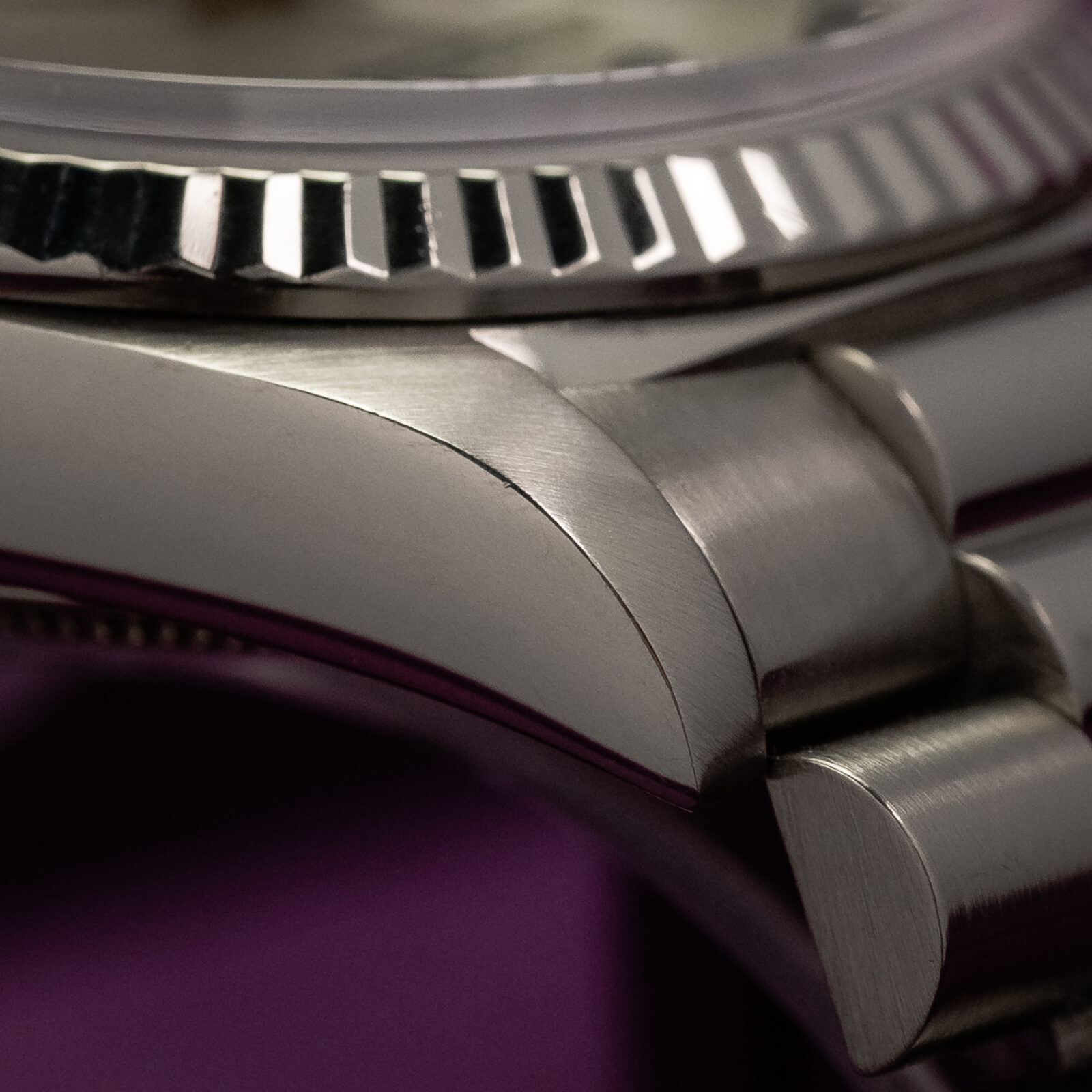 A white gold Day-Date is an under-the-radar take on the flashy man’s watch. At first glance it may pass as stainless steel but you’ll definitely feel the heft and luxurious feel of a gold Rolex on the wrist.
