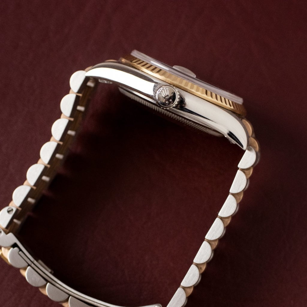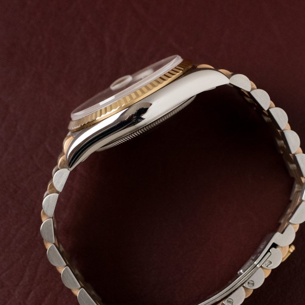 Rolex Day-DateIn 1956, Rolex introduced one the most iconic watches ever made: the Day-Date. The Day-Date was the first waterproof self-winding chronometer certified wristwatch with a day and date function. And to top it off, it was only available in gold or platinum! Rolex also designed a new three-link bracelet, known as the ‘President,’ to pair with this special watch. With exception of the most modern executions, the Day-Date comes exclusively in a 36mm case.
