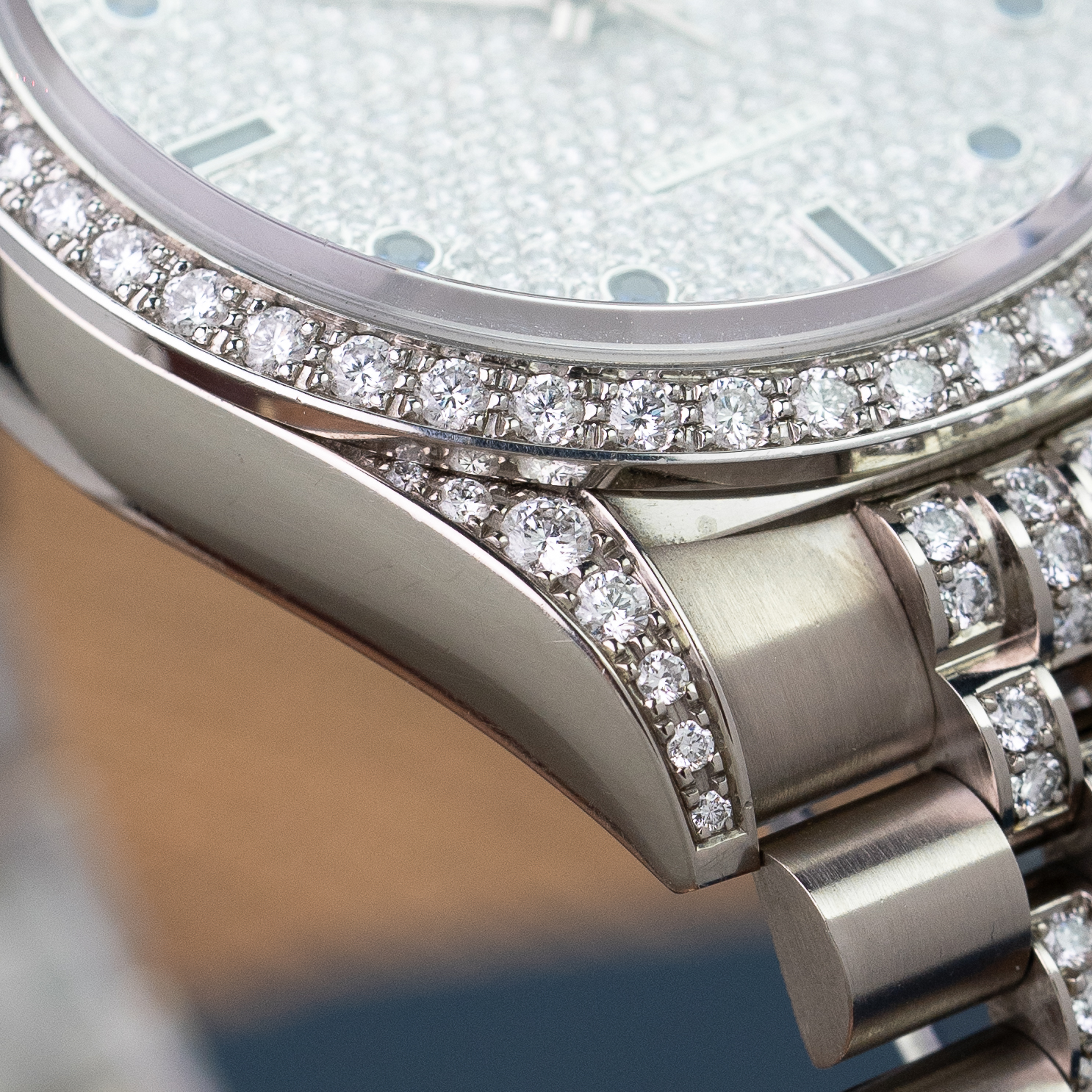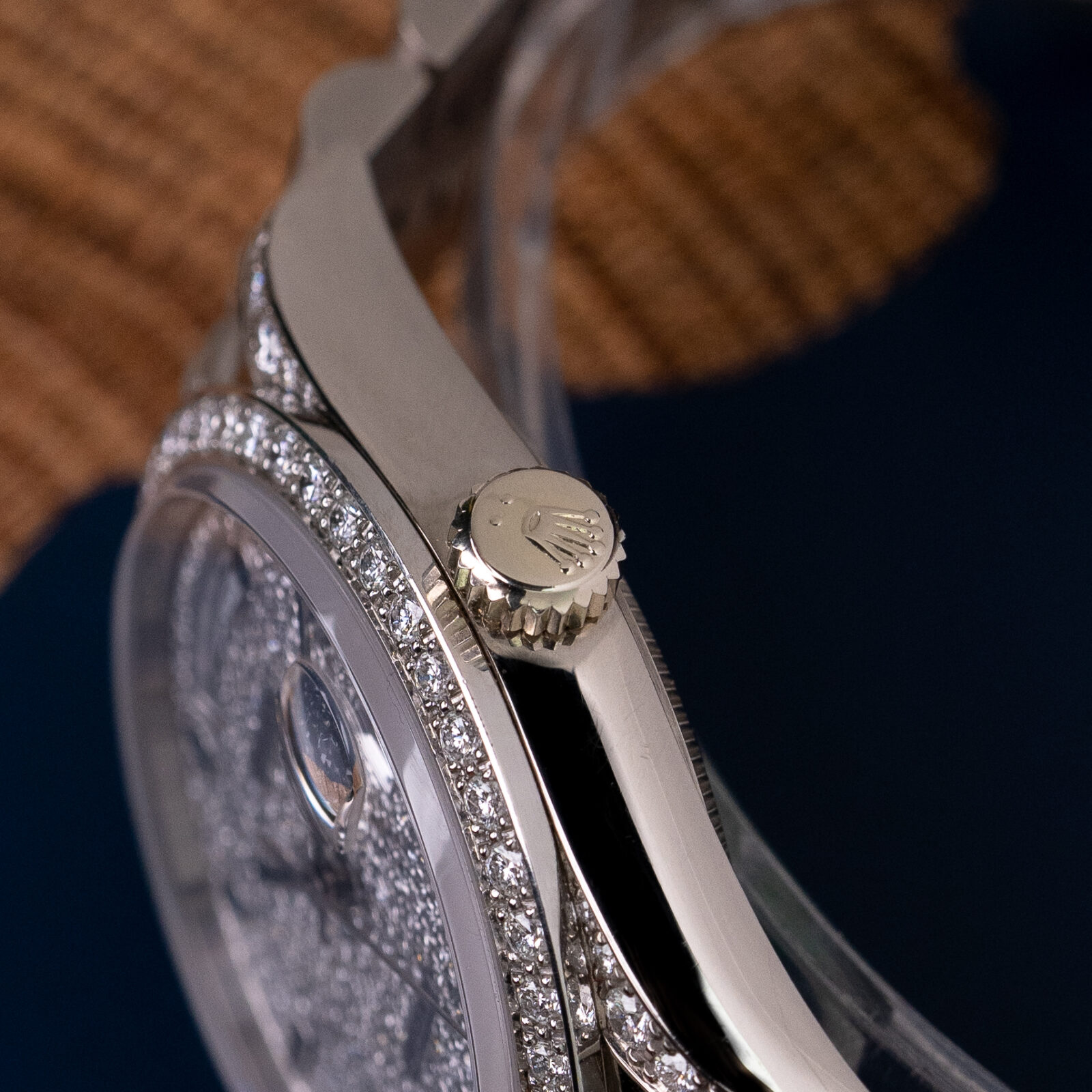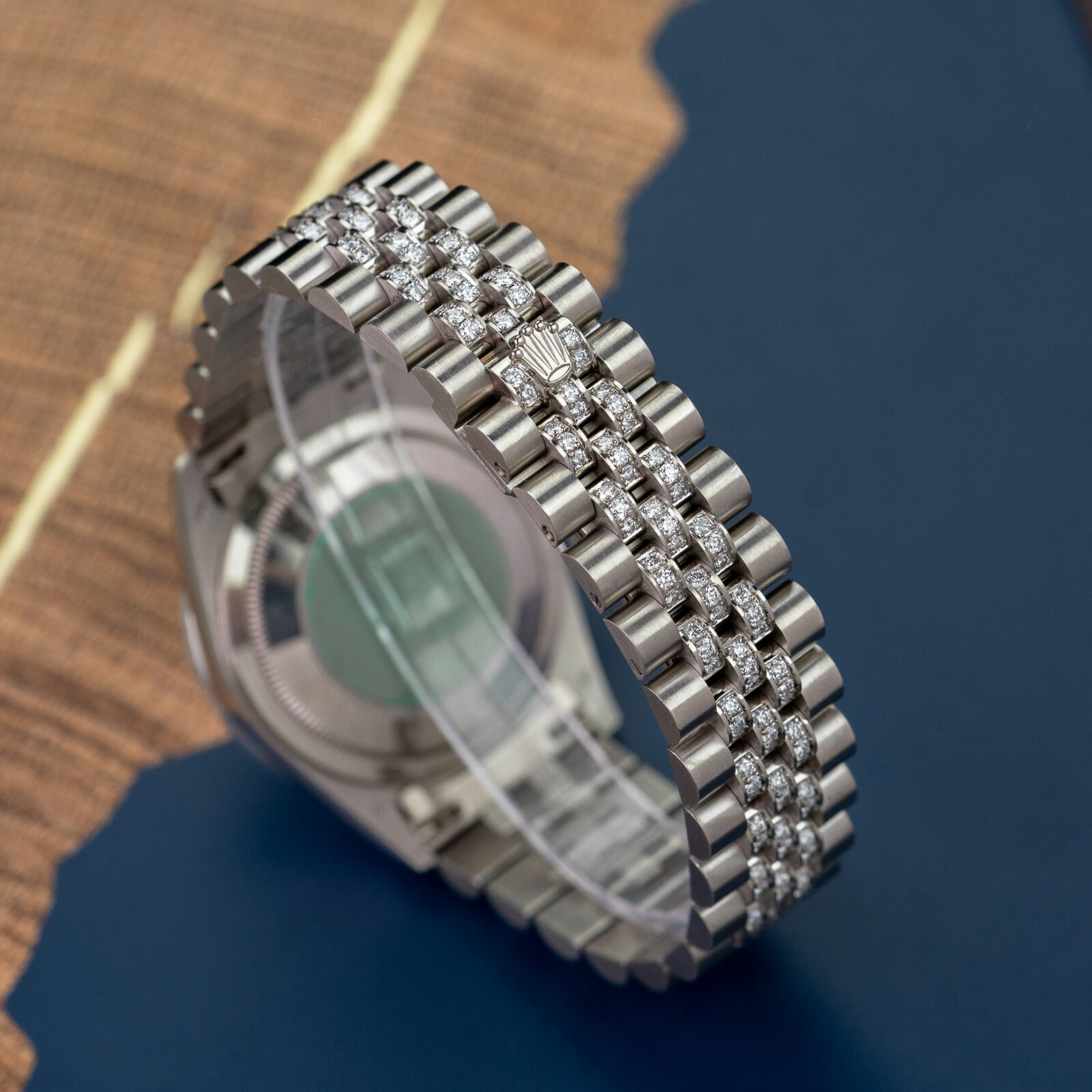 18k white-gold bezel with factory-set diamonds, original Rolex