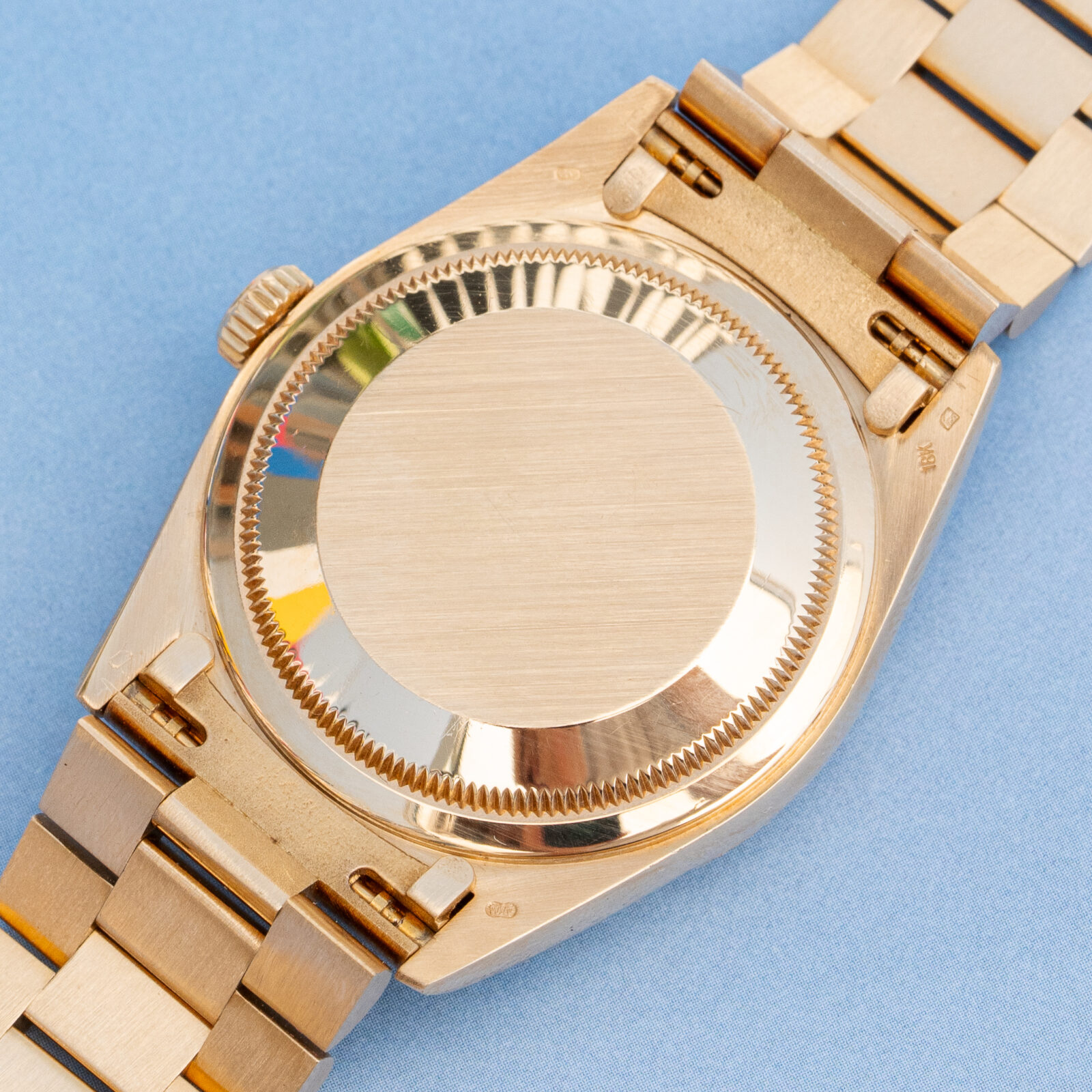 Rolex Day-DateIn 1956, Rolex introduced one the most iconic watches ever made: the Day-Date. The Day-Date was the first waterproof self-winding chronometer certified wristwatch with a day and date function. And to top it off, it was only available in gold or platinum! Rolex also designed a new three-link bracelet, known as the ‘President,’ to pair with this special watch. With exception of the most modern executions, the Day-Date comes exclusively in a 36mm case.Reference 182xxThe 182xxx series Day-Dates were introduced in 1989 and shepherded the line in the modern-era. While the previous 18xxx series Day-Date from 1978 had already introduced a single quickset function for the quick adjustment of the date as well as a sturdy sapphire crystal, the 182xx series saw the unveiling of the new caliber 3155 movement with a double quickset function. This new movement finally allowed all the functions of the watch (time, date, and day) to be adjusted quickly and conveniently through different positions of the crown.