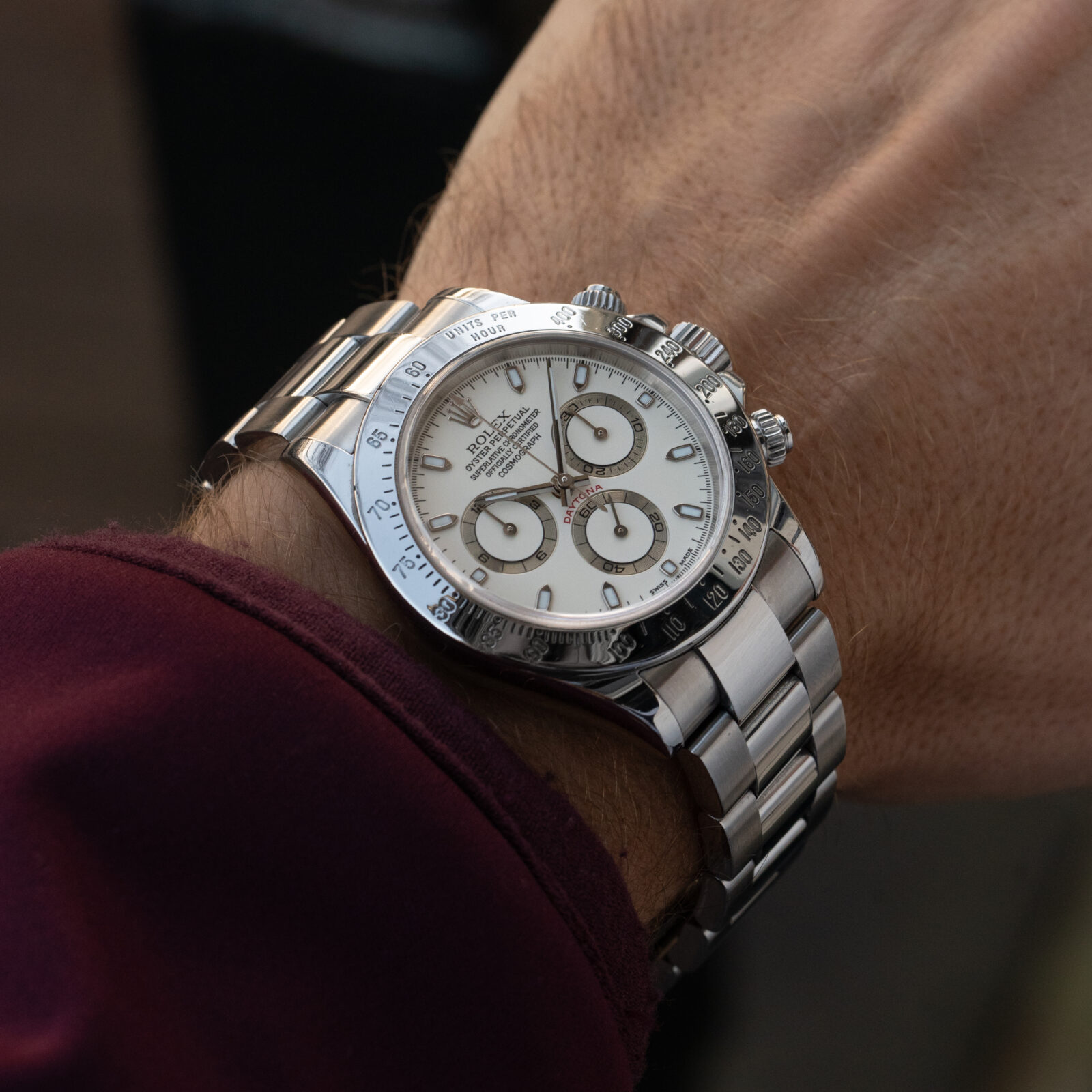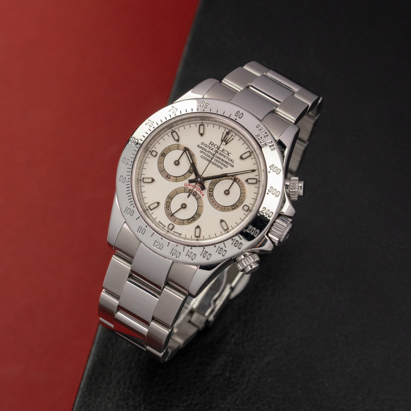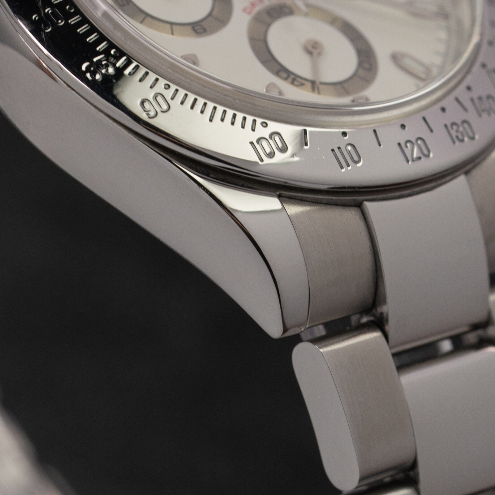 Tropicalized timepieces, watches of which the dials have discolored in an aesthetically pleasing way due to natural processes, are highly favored by collectors. It is highly unlikely that any modern luxury watch will become tropical as production processes and material sciences have improved. But there are exceptions to any rule. Due to the varnish used on the 116520 Daytonas from the period 2000-2004, some of the white dial turns into a pleasant creamy color similar to the highly desirable early ref. 16550 Explorer II's. These beauties are referred to as ‘Panna’ dials, after the Italian word for cream (think of a delicious panna cotta!).