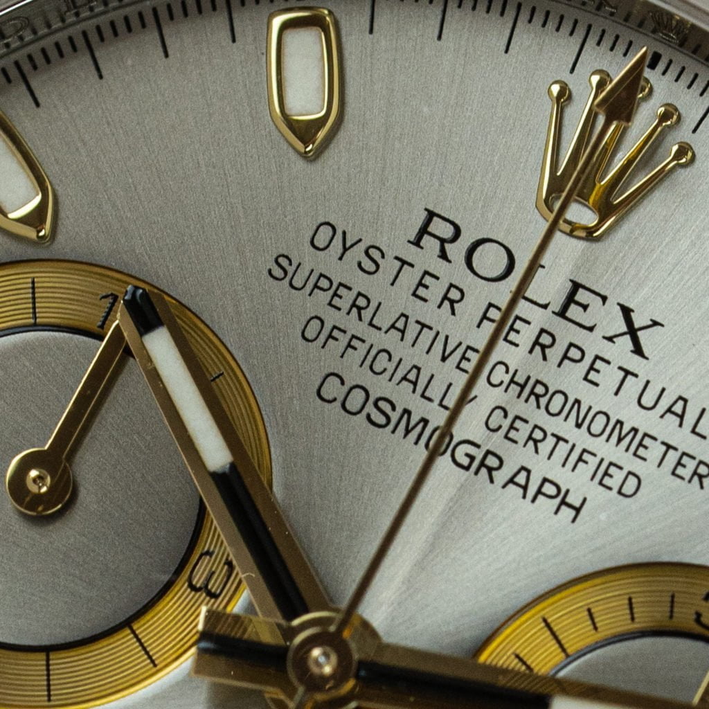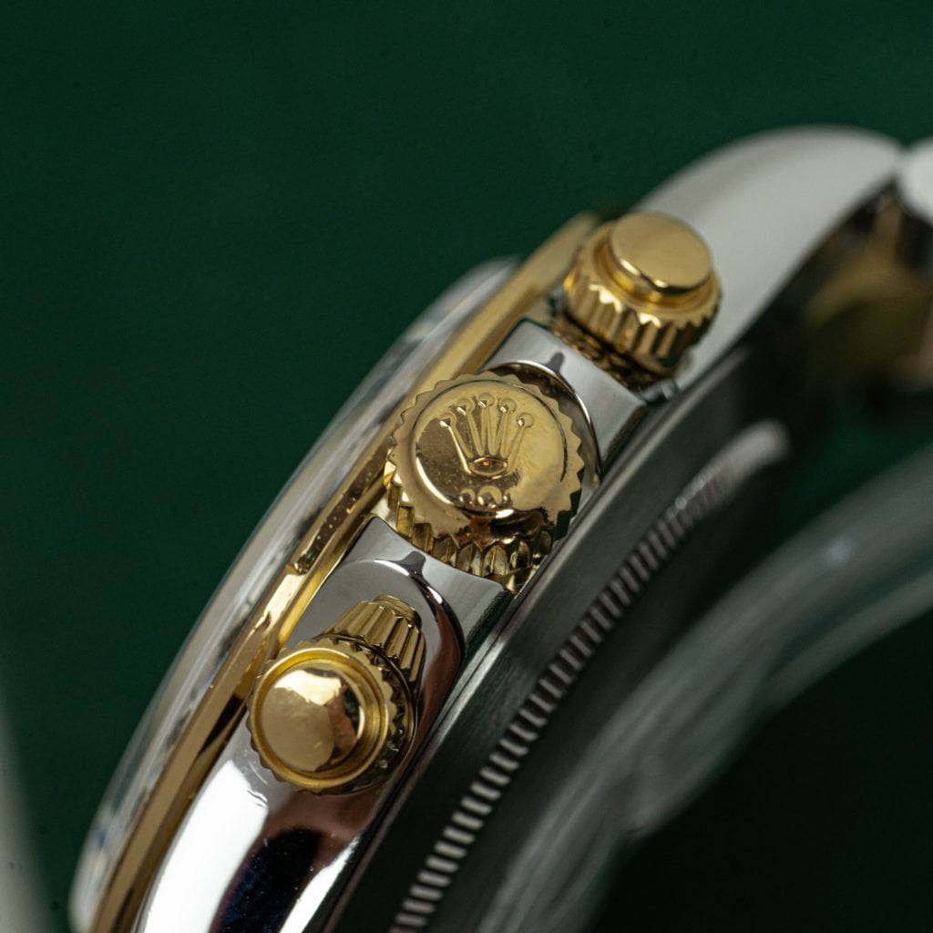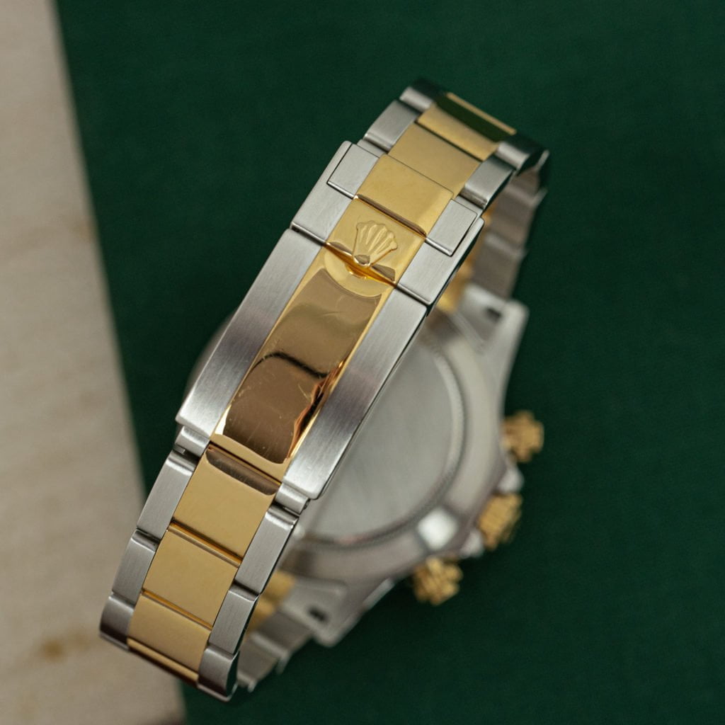 They say there are no great deals to be had with vintage Rolex anymore. We disagree: two-tone Daytonas are criminally underrated and one of the best deals in town.While the prices of stainless steel Daytonas, particularly those with a Zenith movement, have sky-rocketed, the two-tone versions have long lacked popularity and prices have lagged behind on the more popular steel variants. Of course, this wasn’t going to last very long and watch collectors are finally beginning to appreciate the luxury sporty looks of two-tone Daytonas as well.This 116523 dates back to 2010 and is powered by Rolex’ very first in-house chronograph movement. The watch features a 40 mm stainless steel case with an 18k yellow gold engraved bezel and gold crown. The color scheme of the watch is complemented by an uncommon silvered dial with gold register rings and applied 18k yellow gold indices with Super Luminova filling.The watch is in great condition with a thick case and equally sharp stainless steel and 18k yellow gold Oyster bracelet.