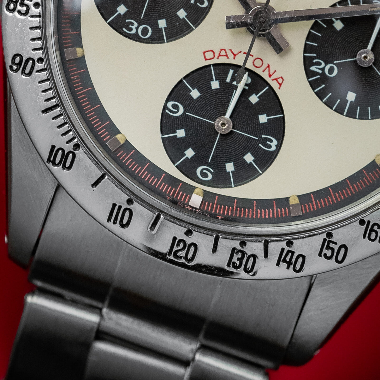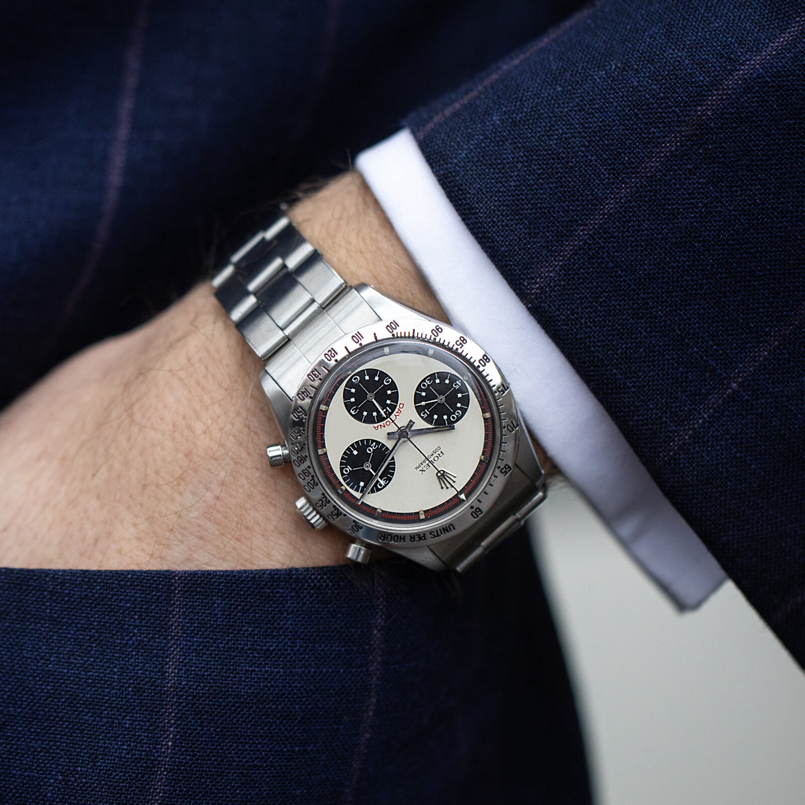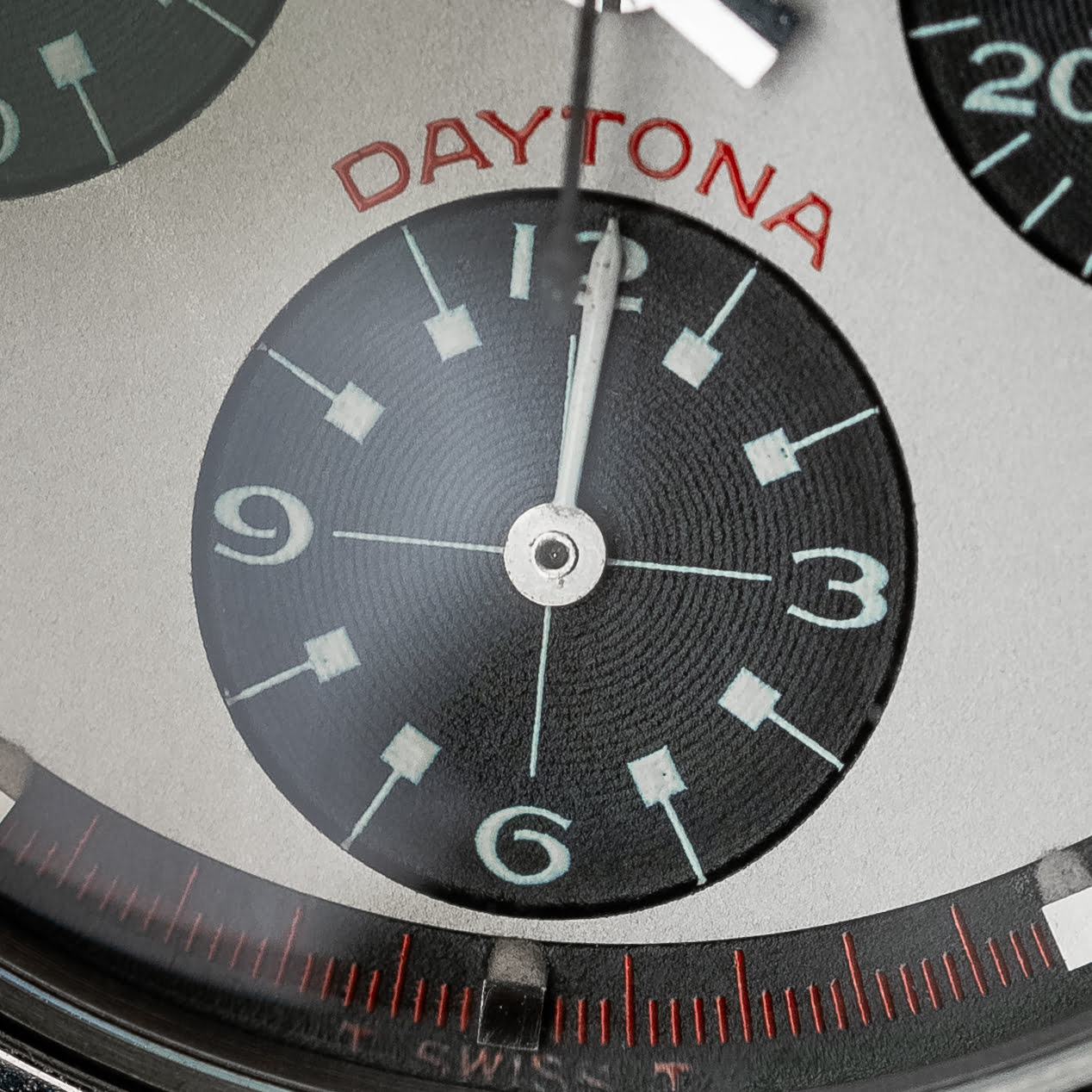 The Daytona line was launched in 1963 but they were not exactly flying off the shelves. 2 Years later Rolex introduced an extra dial option with some art-deco design features and an overall different look, dubbed by Rolex 'Exotic dial'; but obviously better known for its unofficial nickname: "Paul Newman". Right at the introduction someone decided to go for it, resulting in this "Panda 6239" with 1.62m serial.