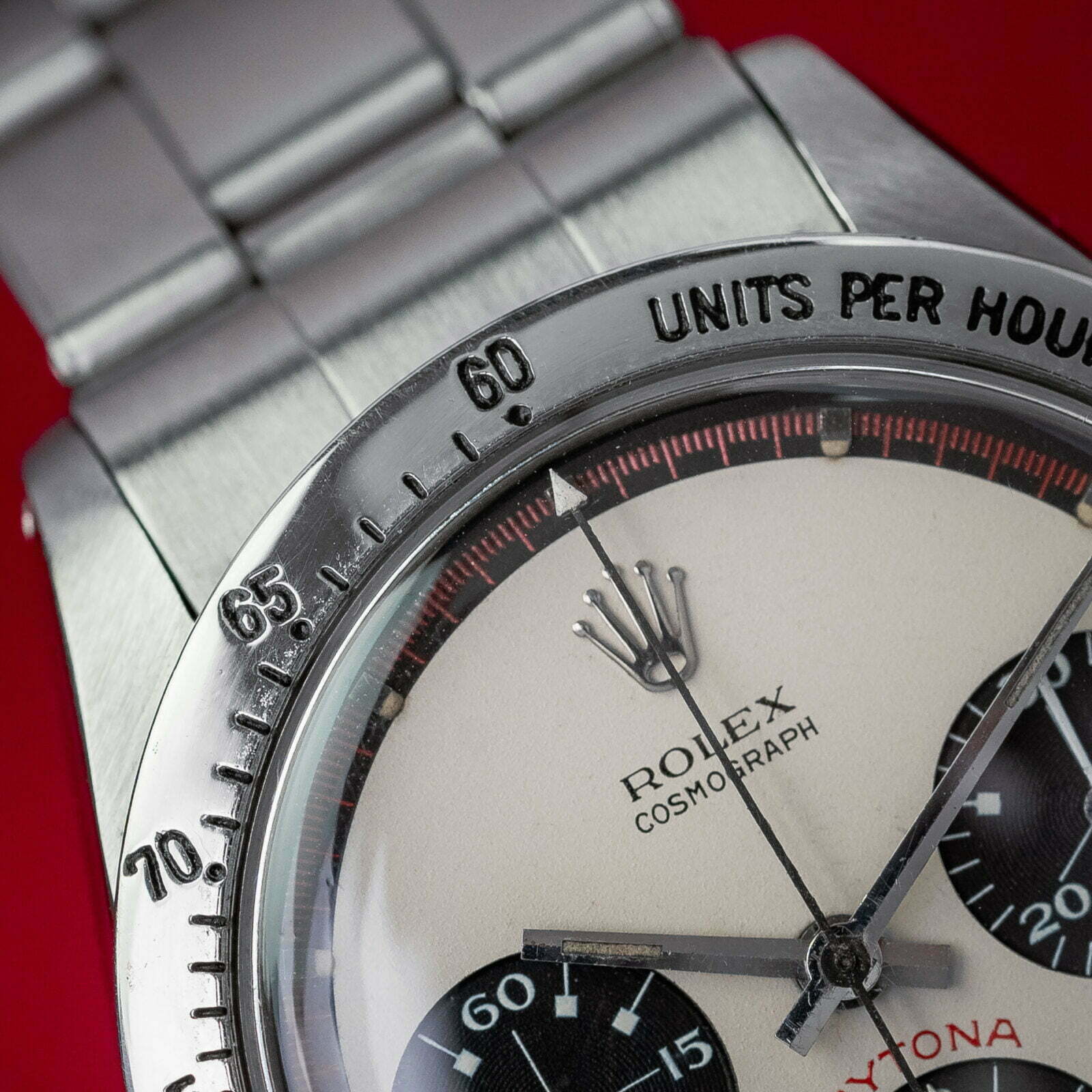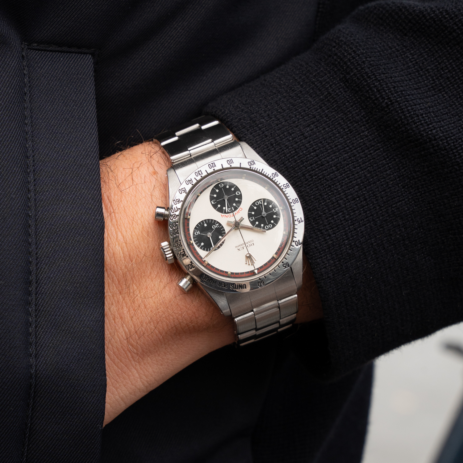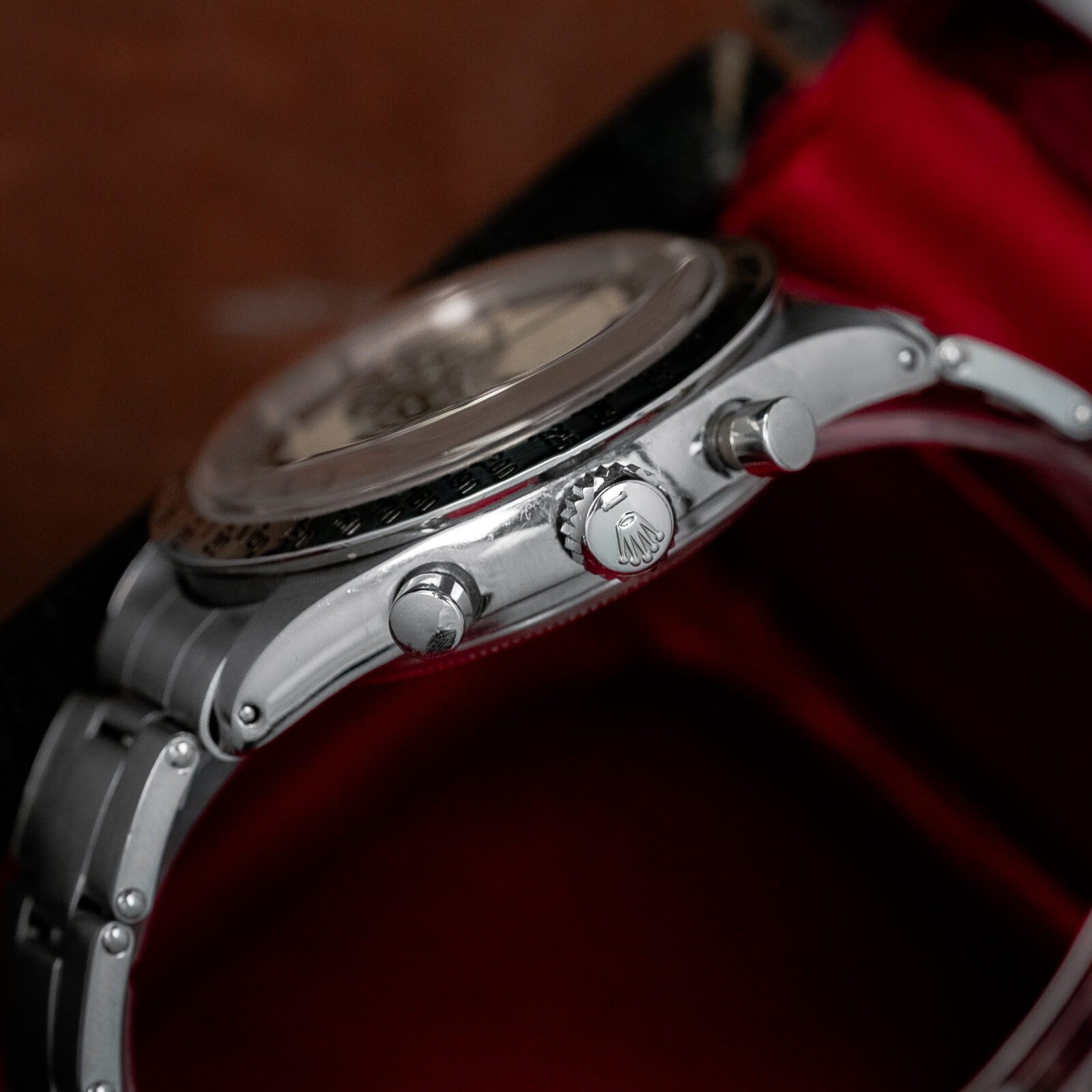 The Daytona line was launched in 1963 but they were not exactly flying off the shelves. 2 Years later Rolex introduced an extra dial option with some art-deco design features and an overall different look, dubbed by Rolex 'Exotic dial'; but obviously better known for its unofficial nickname: "Paul Newman". Right at the introduction someone decided to go for it, resulting in this "Panda 6239" with 1.62m serial.