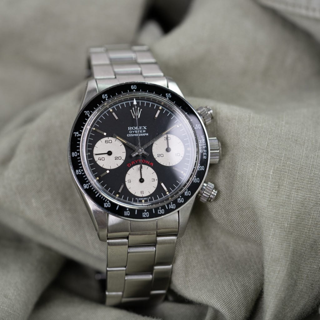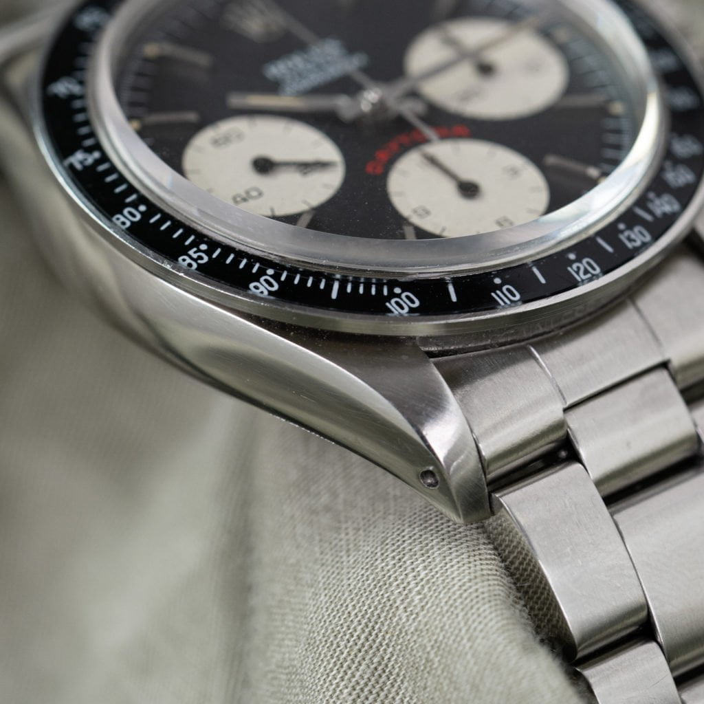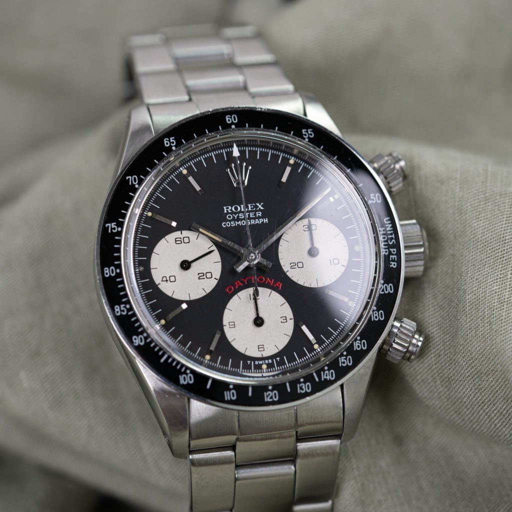 Rolex Cosmograph DaytonaRolex started making chronographs in the 1930s, but it was only in 1963 that a named product line was introduced: the Cosmograph. In some early advertisements, Rolex referred to the watch as the ‘Le Mans’ after the famous race track in France, although the name never appeared on the dial. After a few years, the line was officially renamed Cosmograph Daytona, after the racetrack in Florida.The most noticeable difference between these Cosmograph (Daytona) models and earlier Rolex chronographs was the tachymeter scale (used for measuring distance and speed) that was moved from its traditional placement on the dial to the bezel. Furthermore, the dial was updated with the introduction of contrasting sub-dials.It's hard to imagine now, but Daytonas received little love after their release. Most Daytonas languished in dealer displays for years and only started to get noticed by Italian collectors and dealers in the late 1980s. Nowadays, Daytonas are among the most sought after Rolex models, fetching prices from $20,000 for modern ones to many millions for rare vintage references. A big contrast with the $210 list price when it was first released!Waterproof 62xx DaytonasRolex has touted the water resistant qualities of its watches ever since the invention of the ‘Oyster case’ in the 1930s. Nevertheless, the first truly waterproof Daytona only came into existence in 1965 thanks to the introduction of the ref. 6240 and its screw down chronograph buttons (instead of the round pump pushers with internal gaskets on earlier Daytonas). The 6240 was also the first Daytona to feature a black acrylic bezel inlay with contrasting white graduation scale. The 6240 was discontinued after just a few years and was replaced by the 6263. The 6263 (and its brother, the 6265, with a metal bezel) enjoyed the longest production run of all vintage Daytonas, from 1971 until 1987.