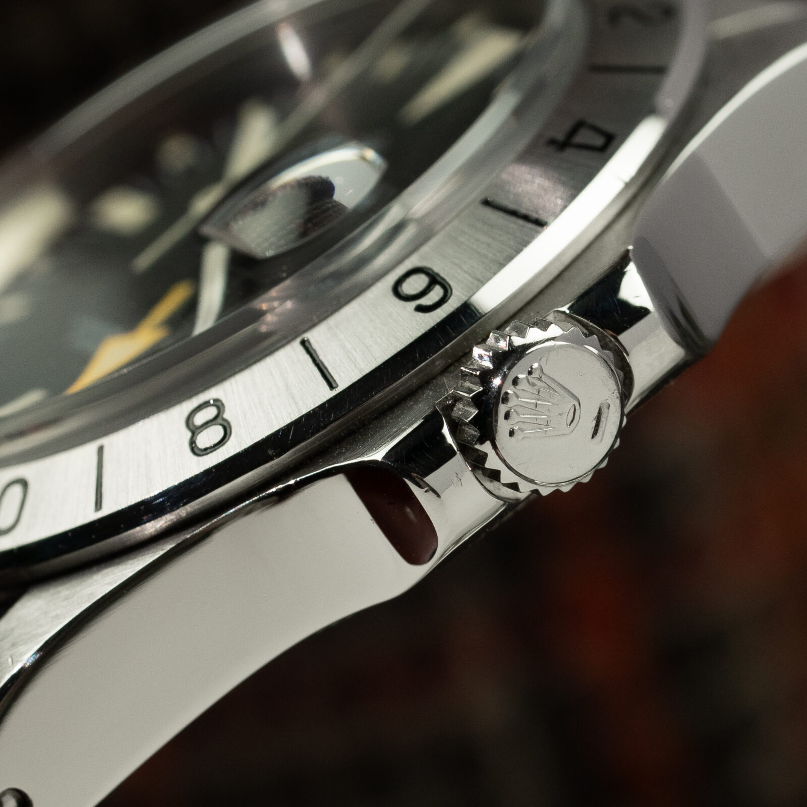 The 39mm Oyster case that houses the automatic caliber 1570 is, just like all other parts of this watch, in a wonderful condition and sits on a time period correct riveted USA Oyster bracelet. Impeccable piece looking for the next explorer to take her on her next voyage.